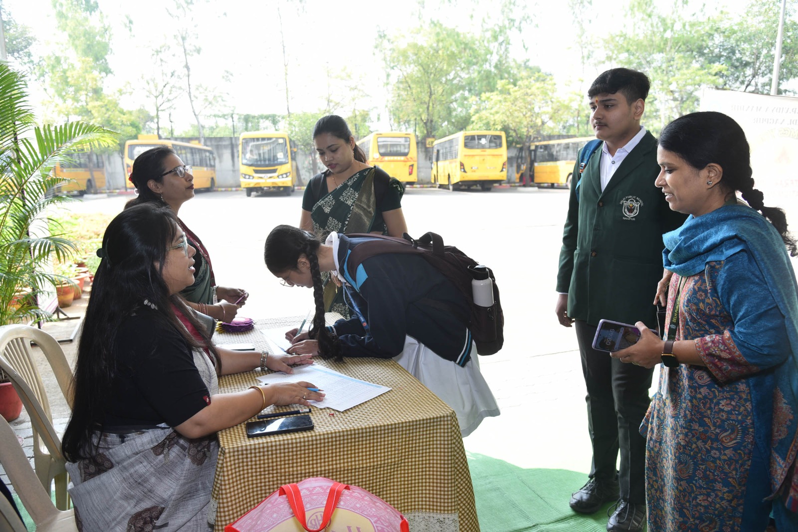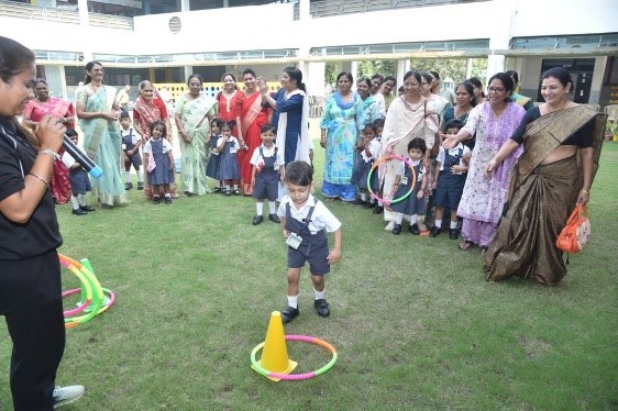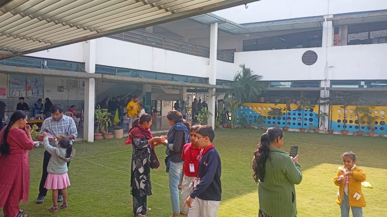 A highly successful and well-attended Parent-Teacher Meeting (PTM) was conducted for the parents of Grade 1 students on Saturday, October 11, 2025. The event was organized with the primary objective of fostering strong collaboration between parents and teachers to ensure the holistic development and academic progress of the young learners. Students presented their learning with notable confidence and clarity across core subjects: Maths, EVS, English, and Hindi, through an engaging activity-based format. Children confidently demonstrated concepts like 'Tens and Ones' (Maths), conducted a 'Picture Talk' (EVS) showcasing their observation skills, and fluently recited poems and categorized 'Naming Words' (English and Hindi). A key feature was the activity-based learning session where student-parent pairs collaborated on activities, reinforcing the concepts taught in class. This interactive approach helped parents understand their child's learning style and progress, allowing teachers and parents to jointly set actionable academic goals. It also featured a heartwarming 'Read-a-Thon' session. In this special session, parents stepped into the role of storytellers, captivating the young students by sharing diverse and engaging stories. The activity fostered a deep appreciation for reading and demonstrated the joy of literacy, reinforcing the idea that reading is a fun, shared family experience.
