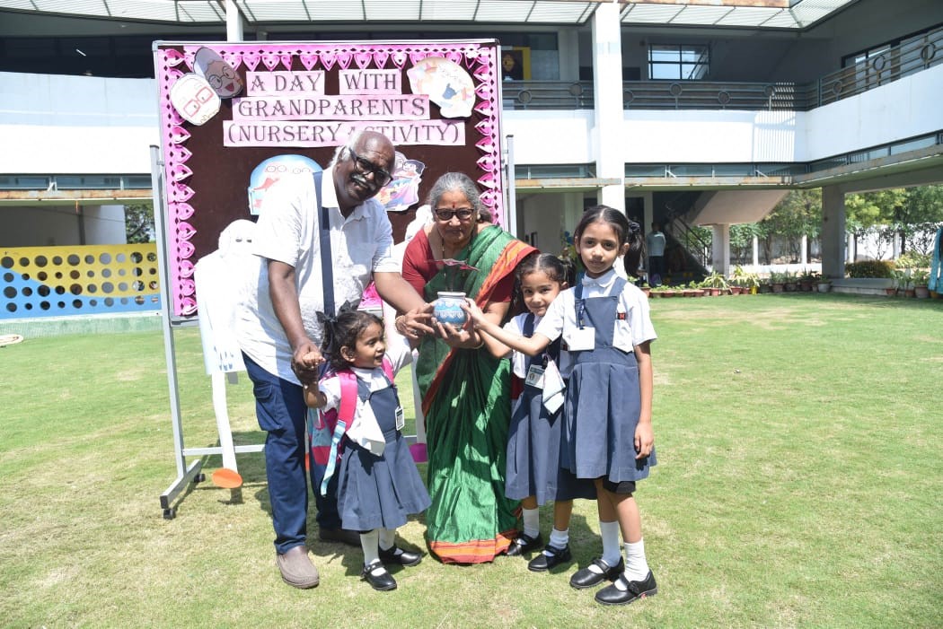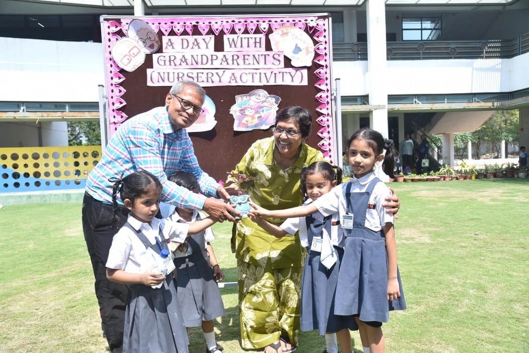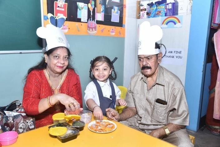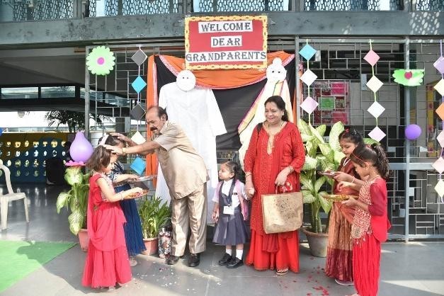 Children extended a warm traditional welcome to the grandparents, greeting them with flower petals and auspicious tilak, which was a gesture of love and respect. The entire day was filled with engaging activities for the grandparents wherein they spent a day with their grandchildren by getting involved in their daily school routine. They were also a part of their morning prayer and rhyme session. They also enjoyed doing various activities with them.