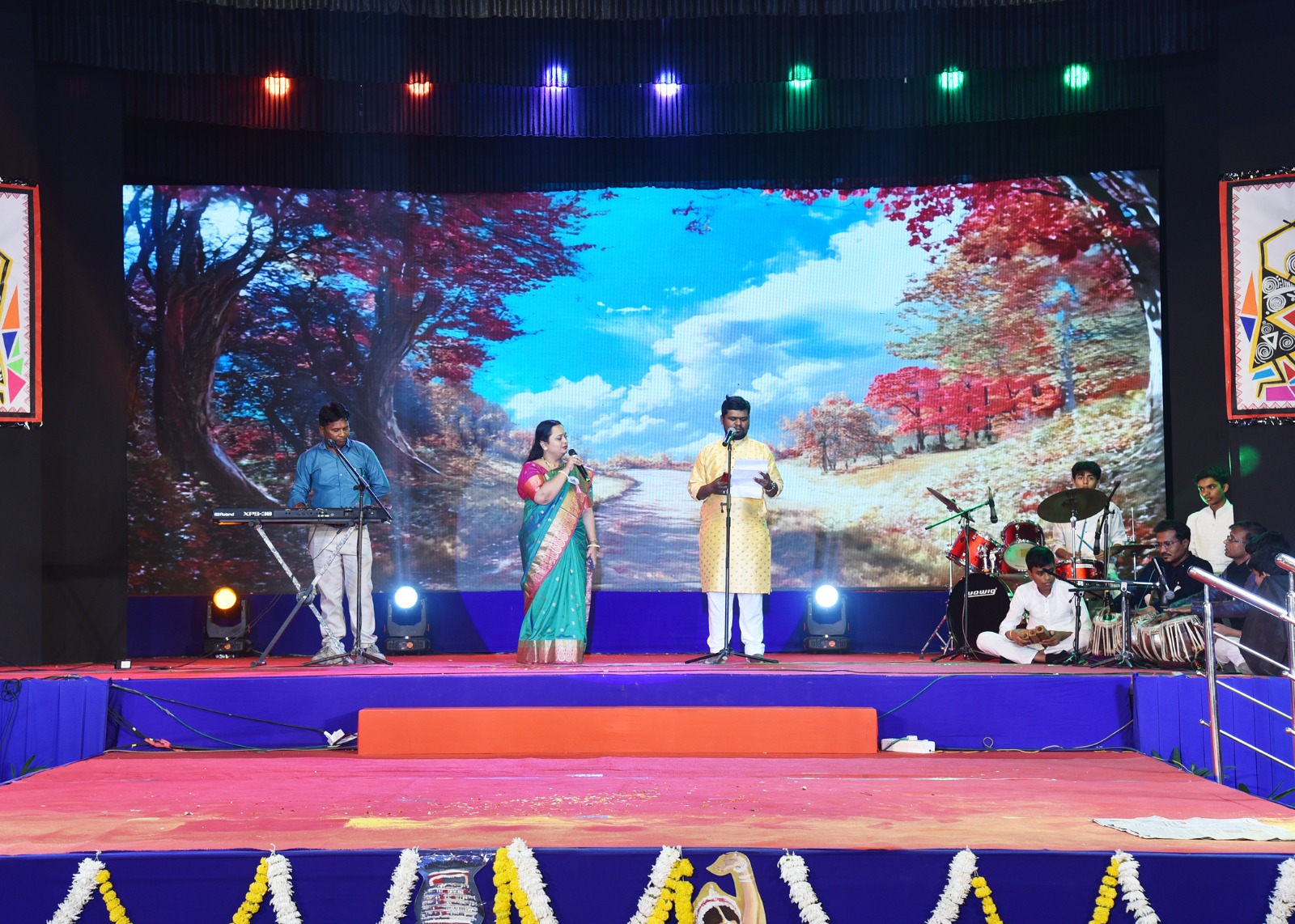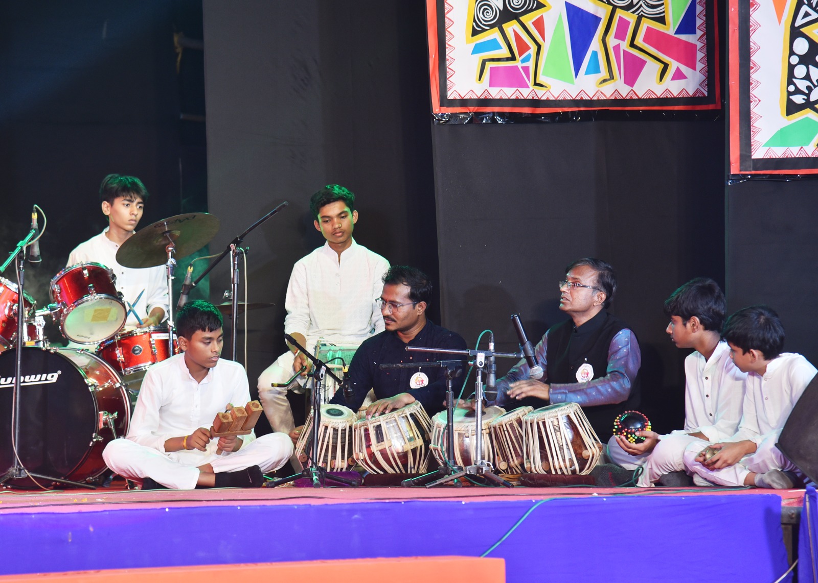 The celebration featured spectacular music and dance performances, some presented solely by students and others in collaboration with their gurus. Cultural Performances Included “Taal-Tritaal”,”Taal-Chakra”,”Yaman Rang”,”Shiv Stuti”,”Tarana”,”Chaturang”,”Devi Raag Mala – Bhairavi Raag” (vocal performance by all music gurus).The performances were enhanced by the guidance of music and dance teachers: Shri Pankaj Ware, Shri Shubham Pohane, Shri Ashish Khade, Smt. Amruta Pendke, Smt. Jayshree Ghaiwat, and Ms. Ketaki Tamhankar. The event concluded by the students taking blessings of the dignitaries and their Gurus.