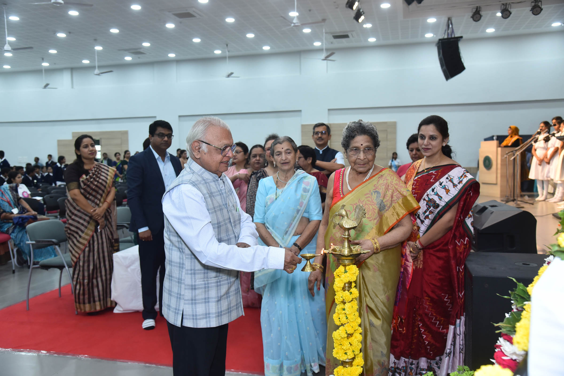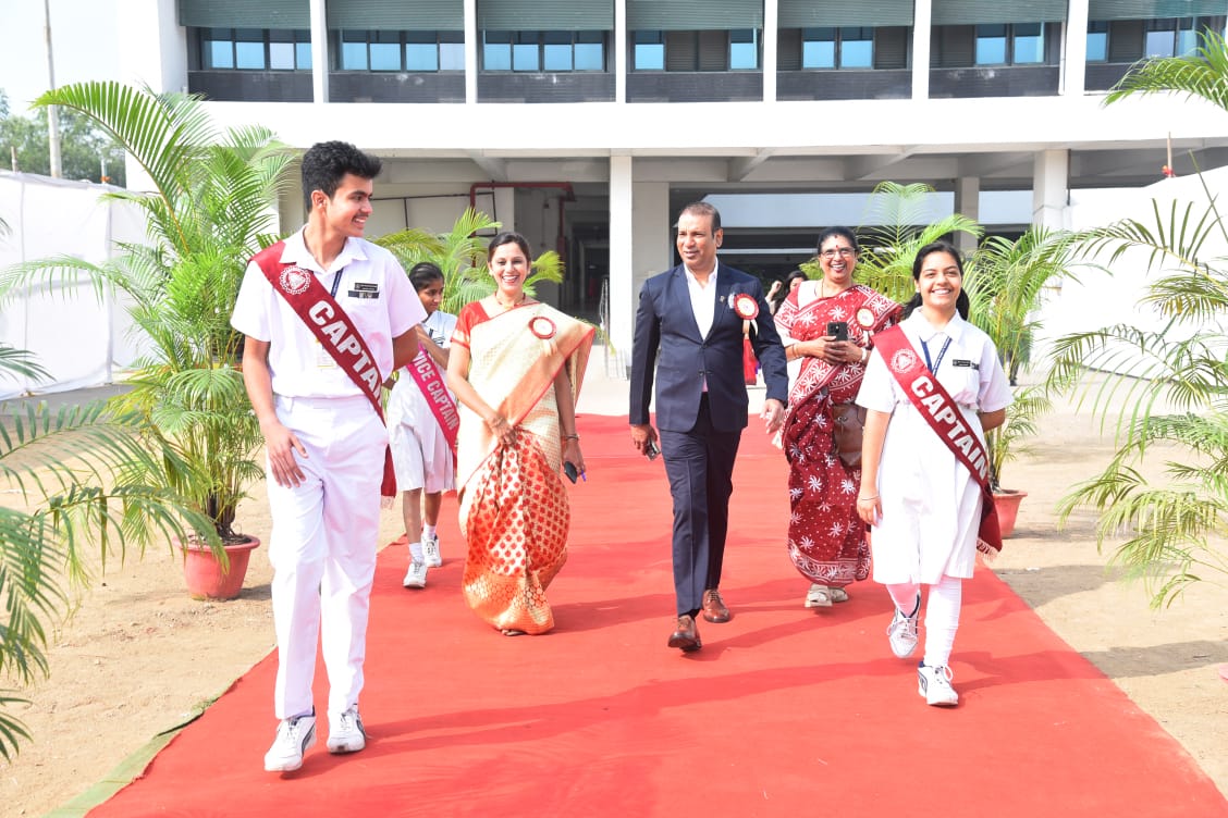 The ceremony commenced with the dignified lighting of the ceremonial lamp and a Sarvadharma Prayer, setting the tone for the day. Adding to the spirit of the occasion, the school toppers themselves stepped forward, offering candid advice to their juniors. Speaking on themes of time management, consistency, and determination, they encouraged peers to dream big and pursue their goals with confidence.