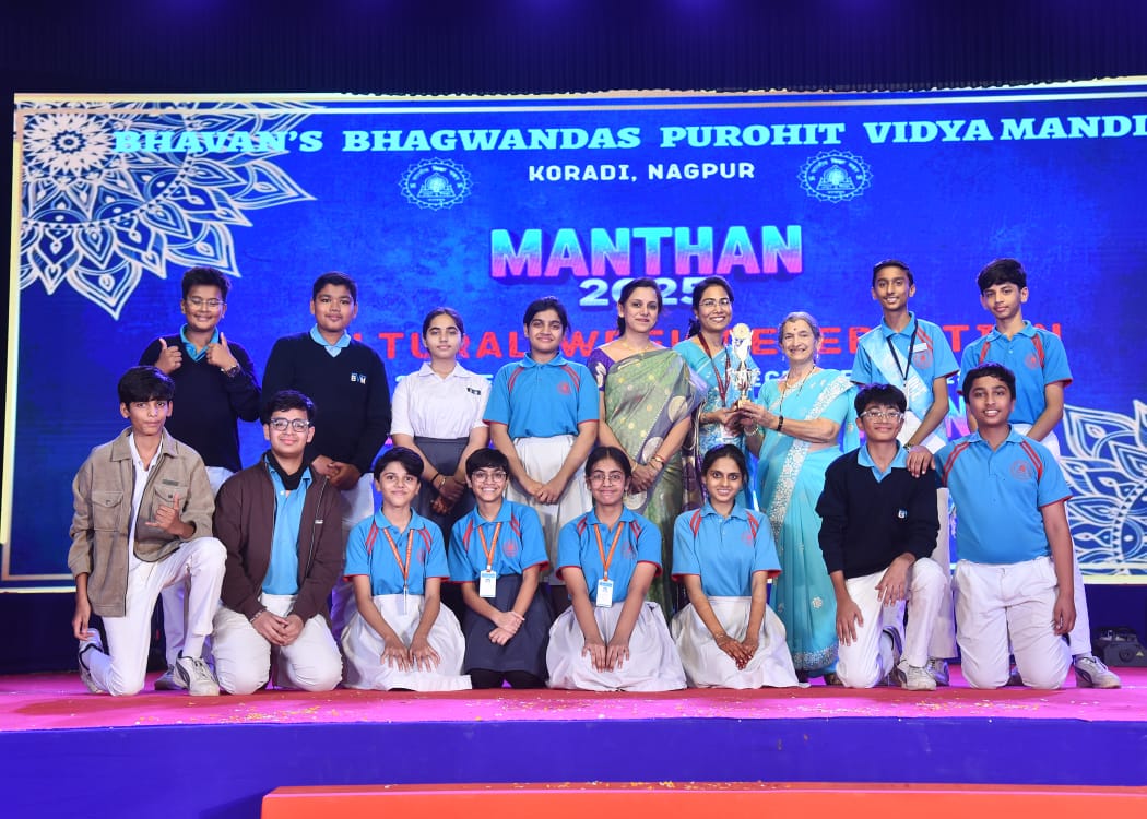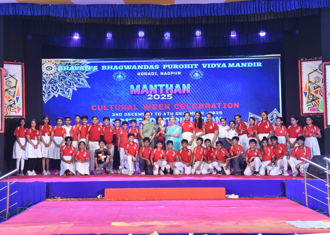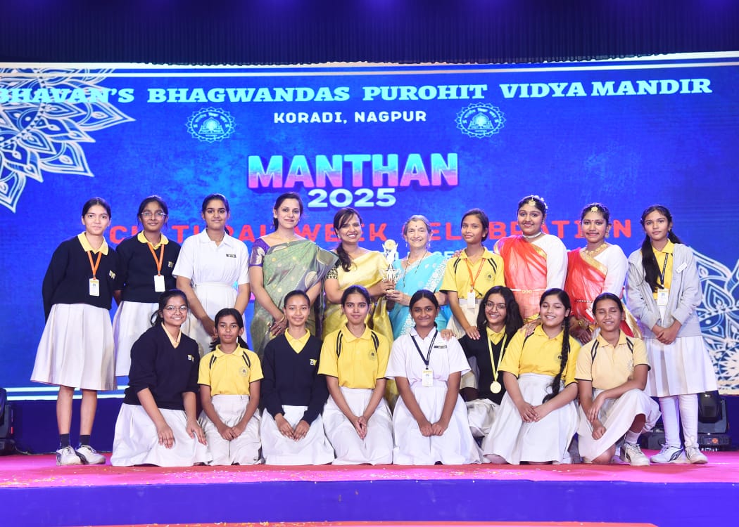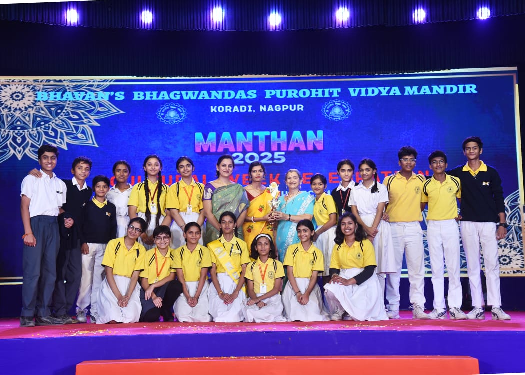 Bhavan’s B.P. Vidya Mandir, Koradi, came alive with colours, rhythm and creativity as it celebrated its grand cultural festival Manthan 2025. The five-day extravaganza witnessed the enthusiastic participation of students from Pre - Primary to Std. X, each adding vibrance, talent and youthful energy to the event.
