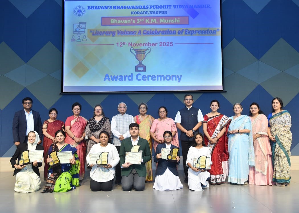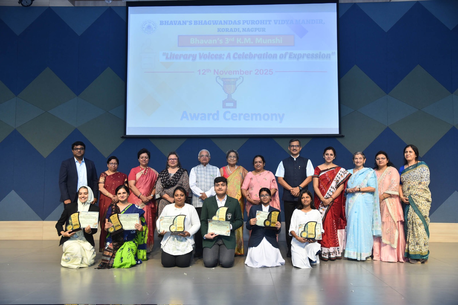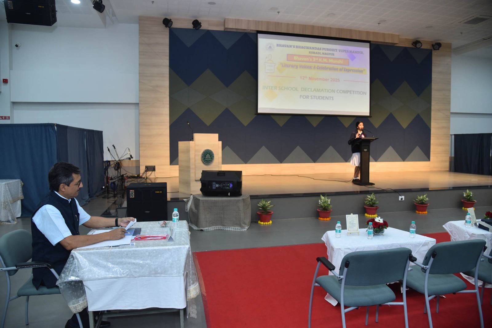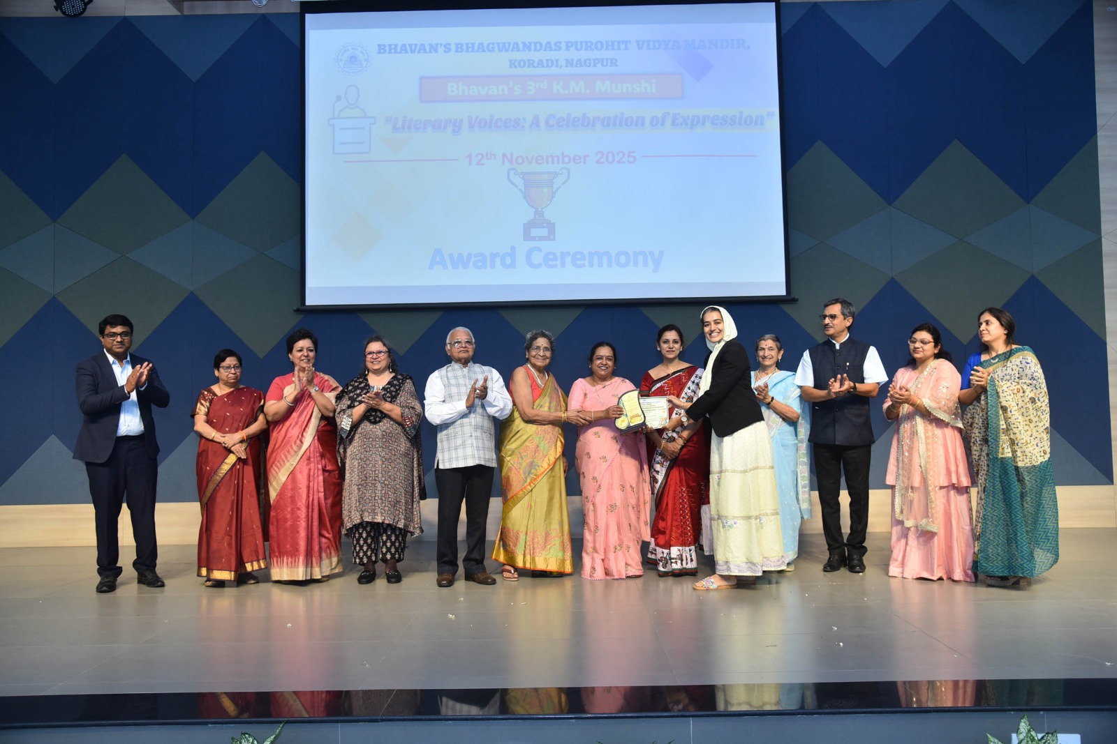 Bhavan’s Bhagwandas Purohit Vidya Mandir, Koradi, hosted the 3rd K. M. Munshi Interschool Competition, “Literary Voices: A Celebration of Expression”. Organized to nurture eloquence and critical thinking, the event featured two categories — The Interschool Declamation Competition for students and Power Point Presentation Competition for teachers.