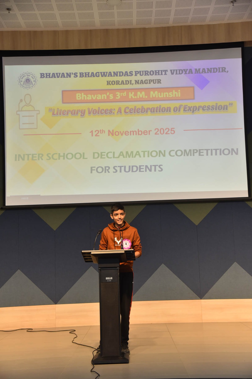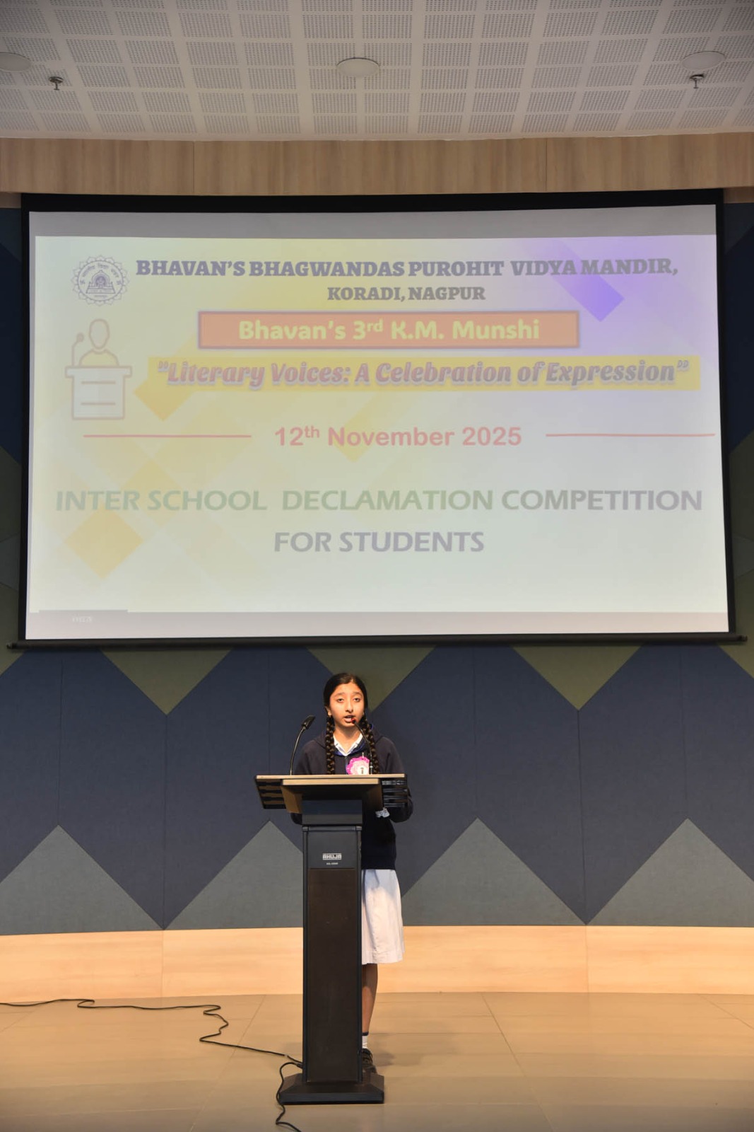 Bhavan’s B. P. Vidya Mandir, Koradi organised a programme named “Literary Voices: A Celebration of Expression”, under which the First ever INTER- SCHOOL DECLAMATION COMPETITON for students was organised.