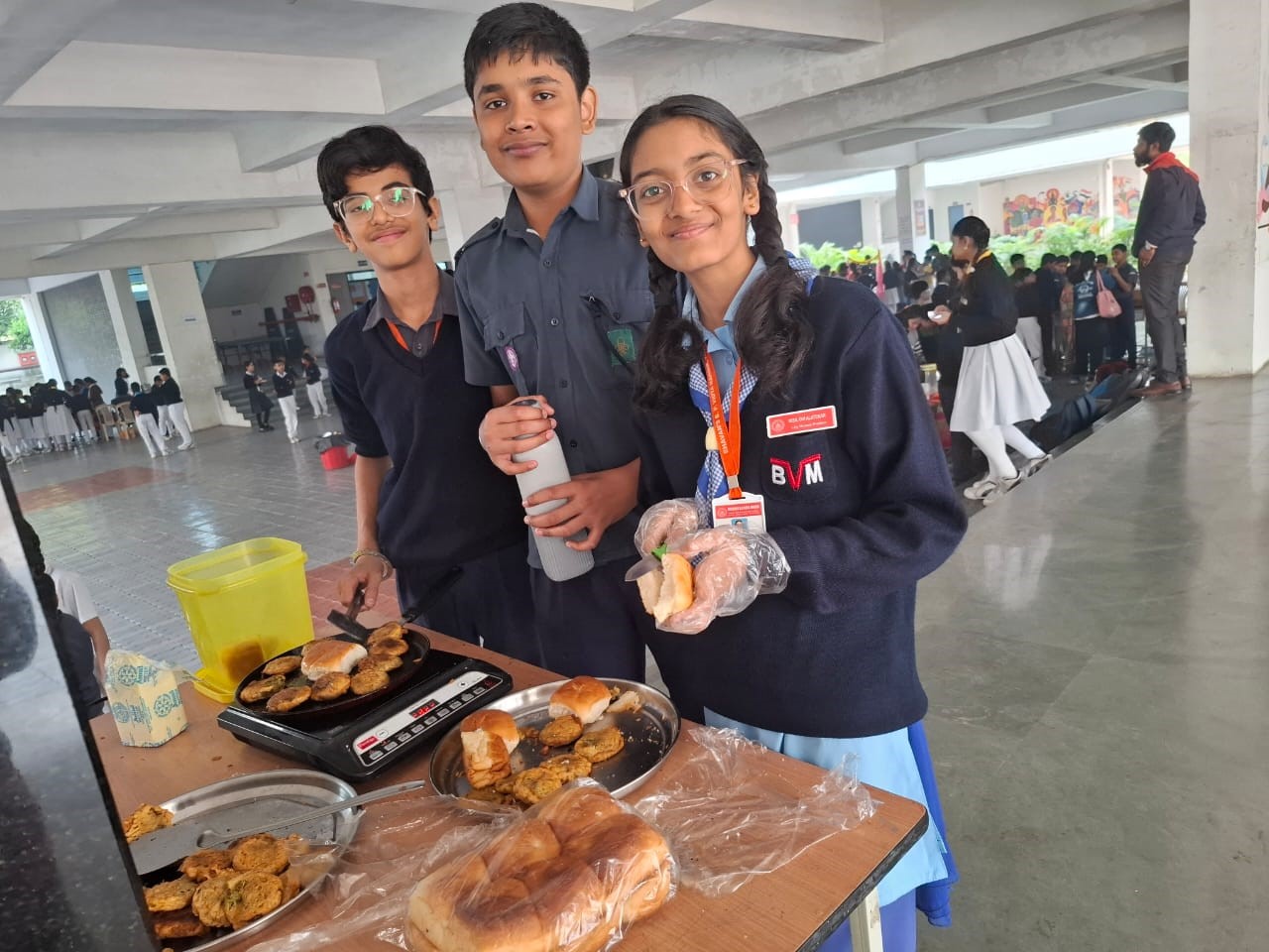The stalls offered a diverse selection of food items, including Pani Puri, Katori Chat, Vada Pav, Bhel, Sandwiches, Momos, Pav Bhaji, Corn and Chana Chor, Dahi Samosa, Pastries, Cupcakes, Coffee, Tea, and Milkshakes. All items were presented in an orderly and hygienic manner, reflecting the students’ dedication and meticulous preparation.