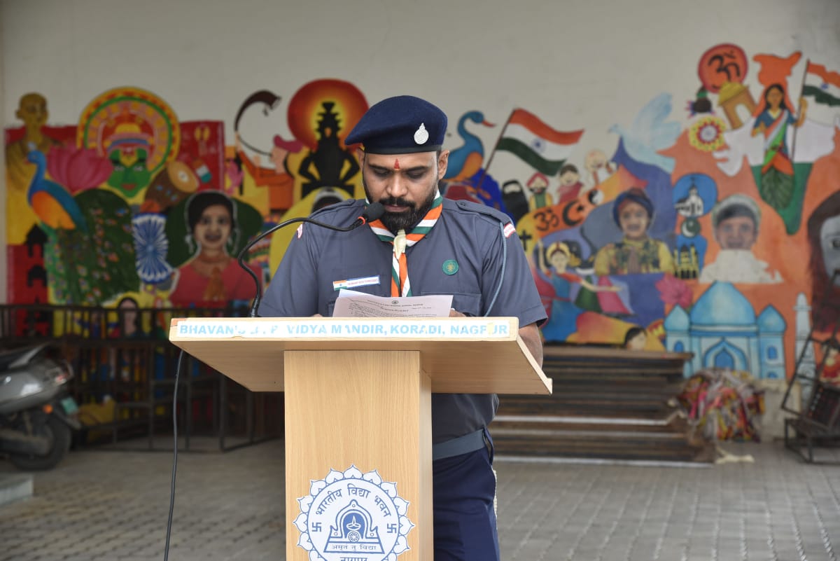 The program was conducted under the guidance of Miss Sarbani Bose, Principal, Bhavan's B. P. Vidya Mandir, Koradi. The overall incharge were Shri Shubham Pohane and Smt. Kavita Supare, supported by all the scouts and guides teachers. The program was compered by Shri Bhushan Gupta.