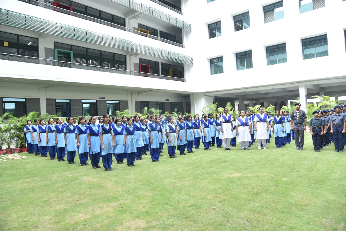 On the radiant morning of 15th August 2025, the campus of Bhavan’s B P Vidya Mandir, Koradi, Nagpur became a vibrant canvas of patriotism, celebrating the 79th Independence Day of India. The air was crisp with anticipation, and every corner of the school seemed to hum with the spirit of freedom. Flags fluttered gently in the monsoon breeze, floral rangolis bloomed in the colours of the nation, and sot strains of patriotic melodies stirred the hearts of all who gathered.