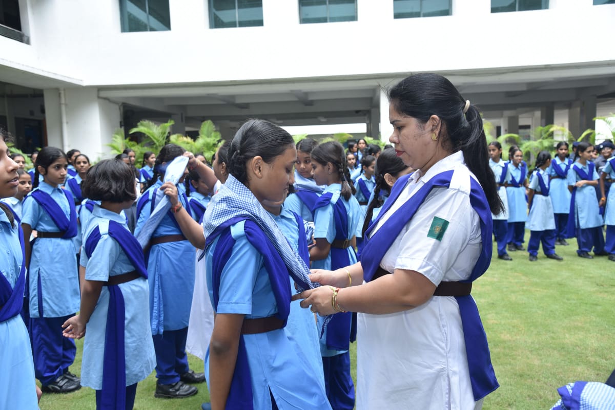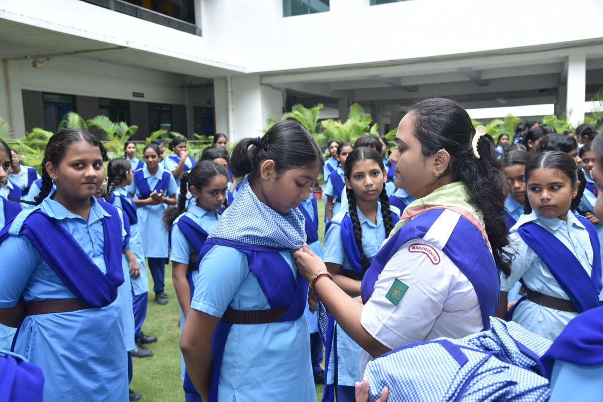 Bhavan's B. P. Vidya Mandir, Koradi, organized the “Shapat Vidhi” and distribution of scarfs and woggles to its scouts and guides students in its school premises on 12th August 2025. Scouts and Guides is an international movement which intends to inculcate in the young minds a spirit of loyalty, patriotism and thoughtfulness for others.