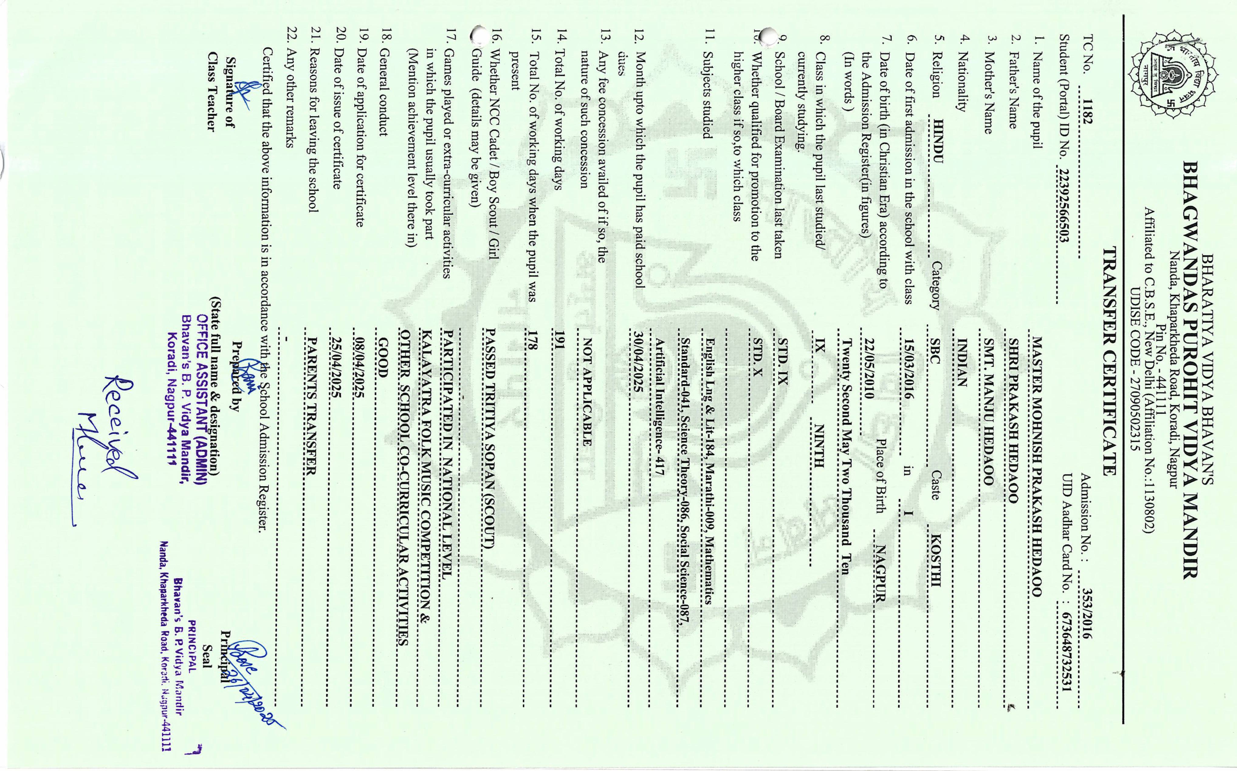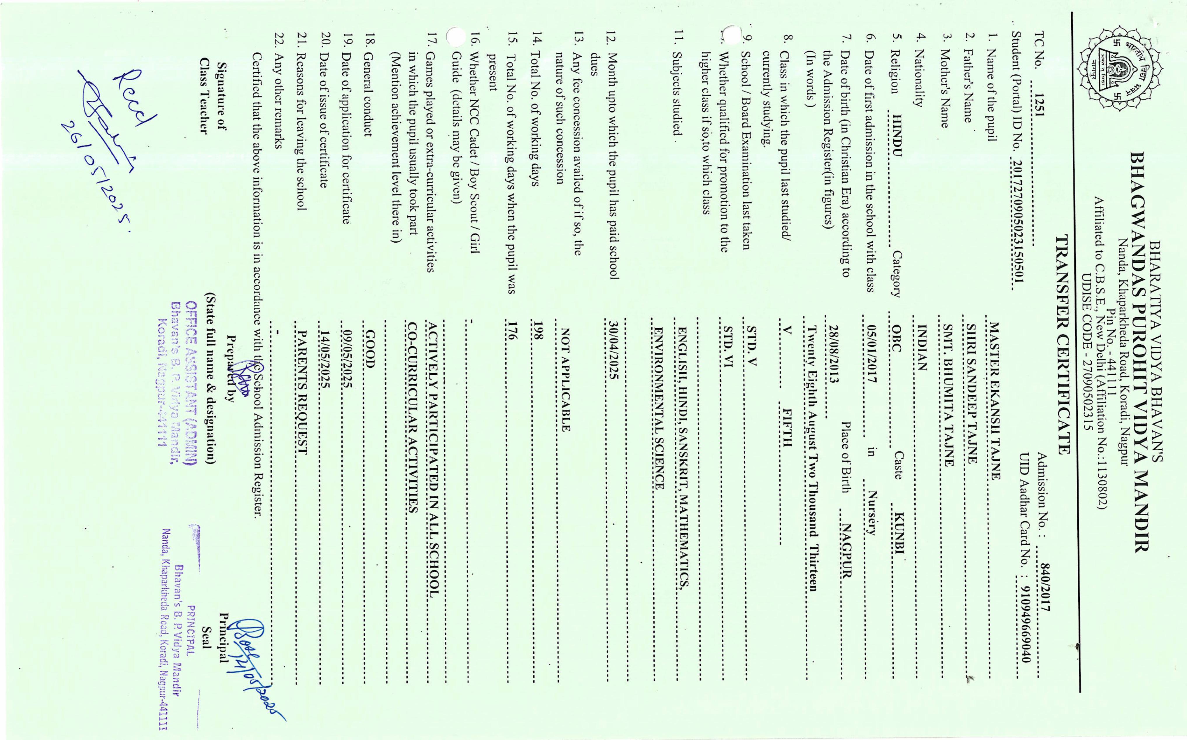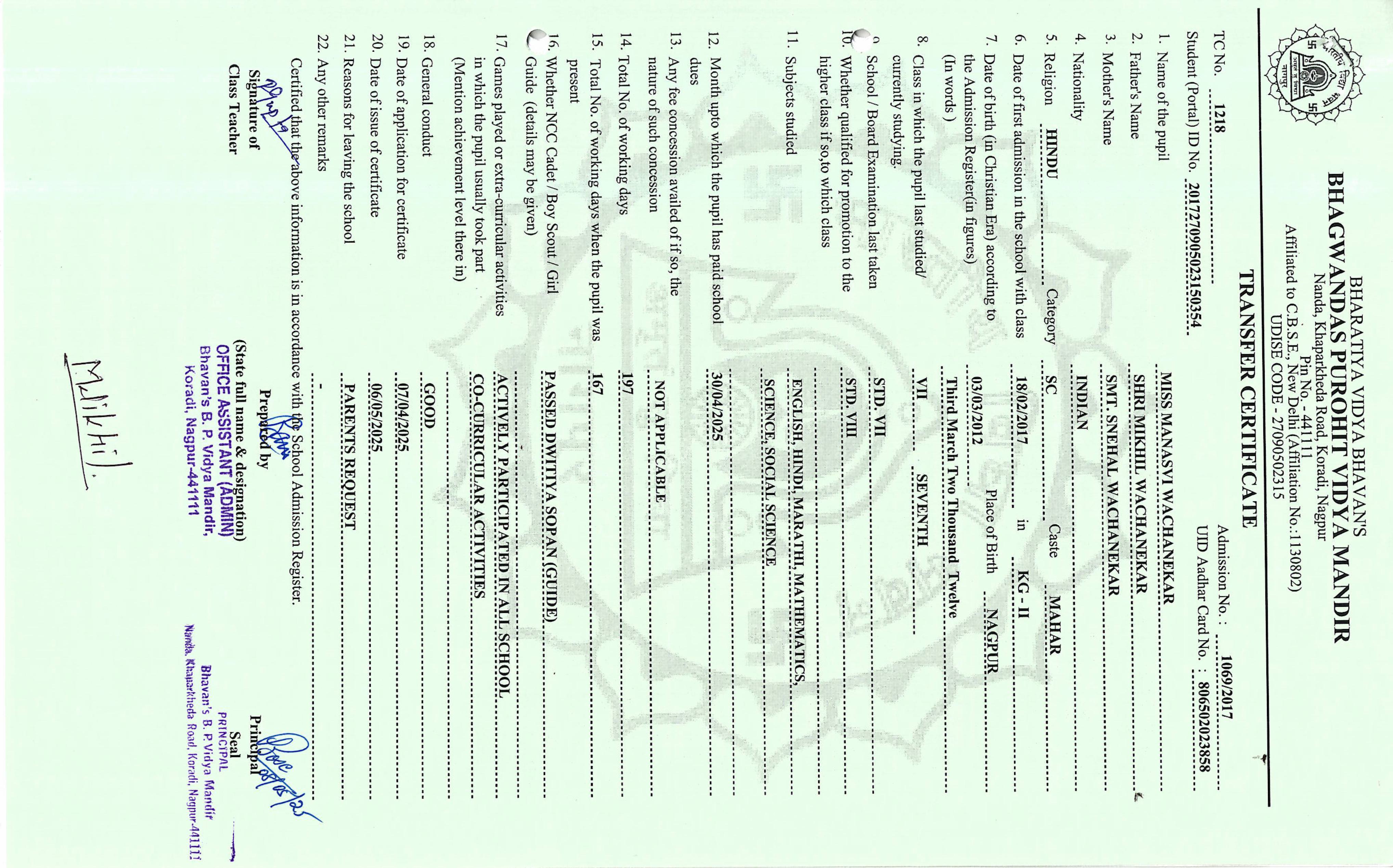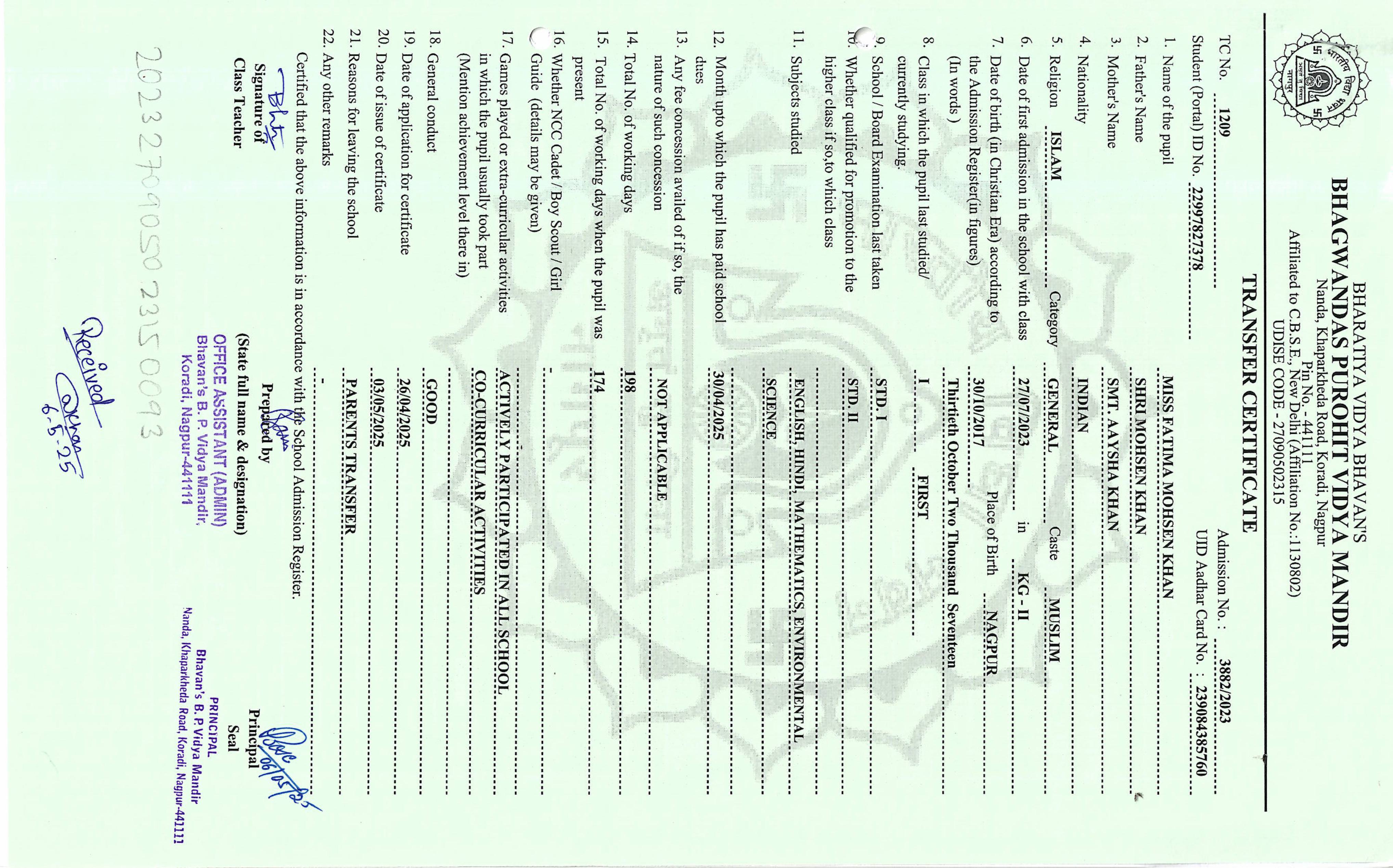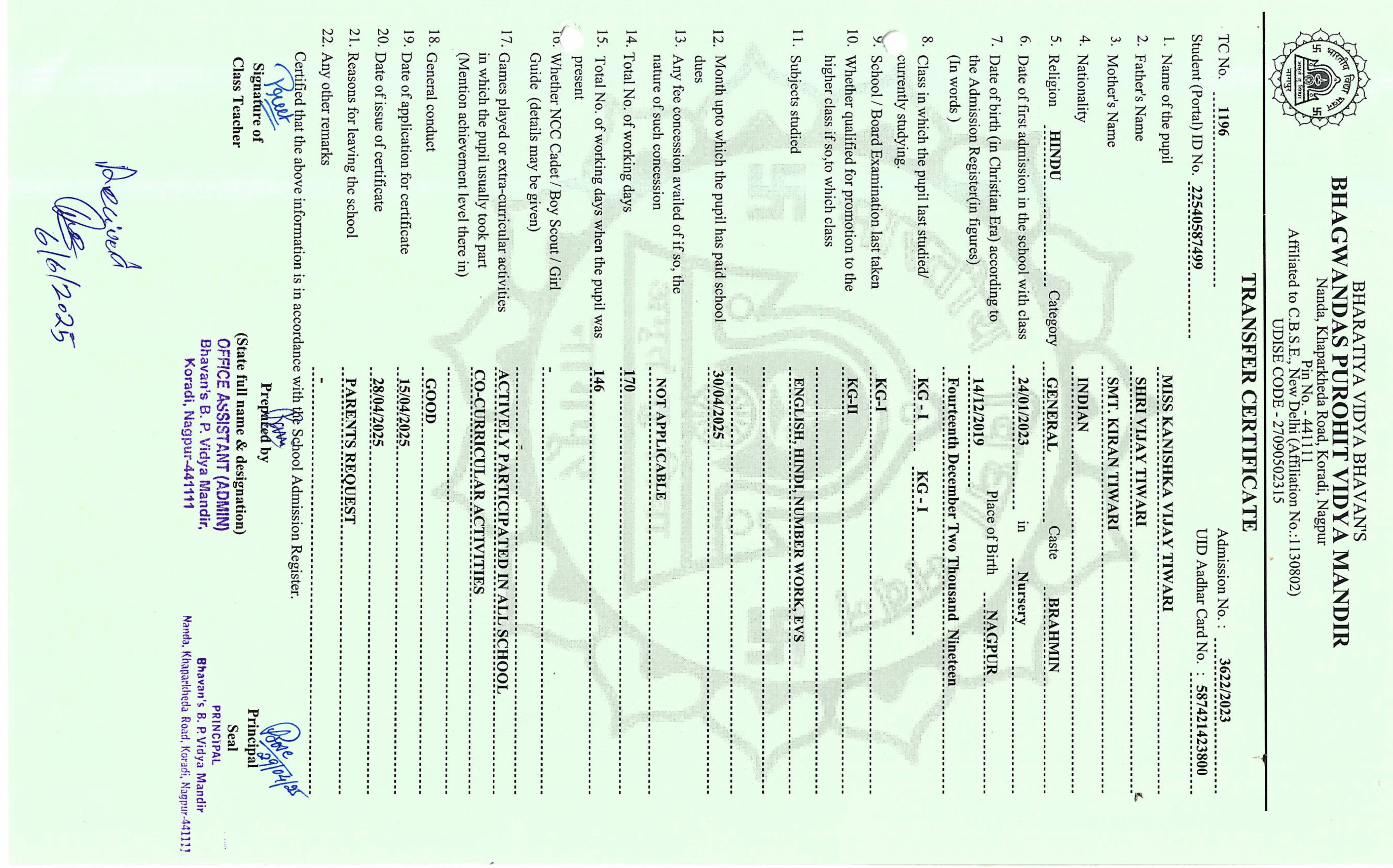 TC of students issued in the 2025