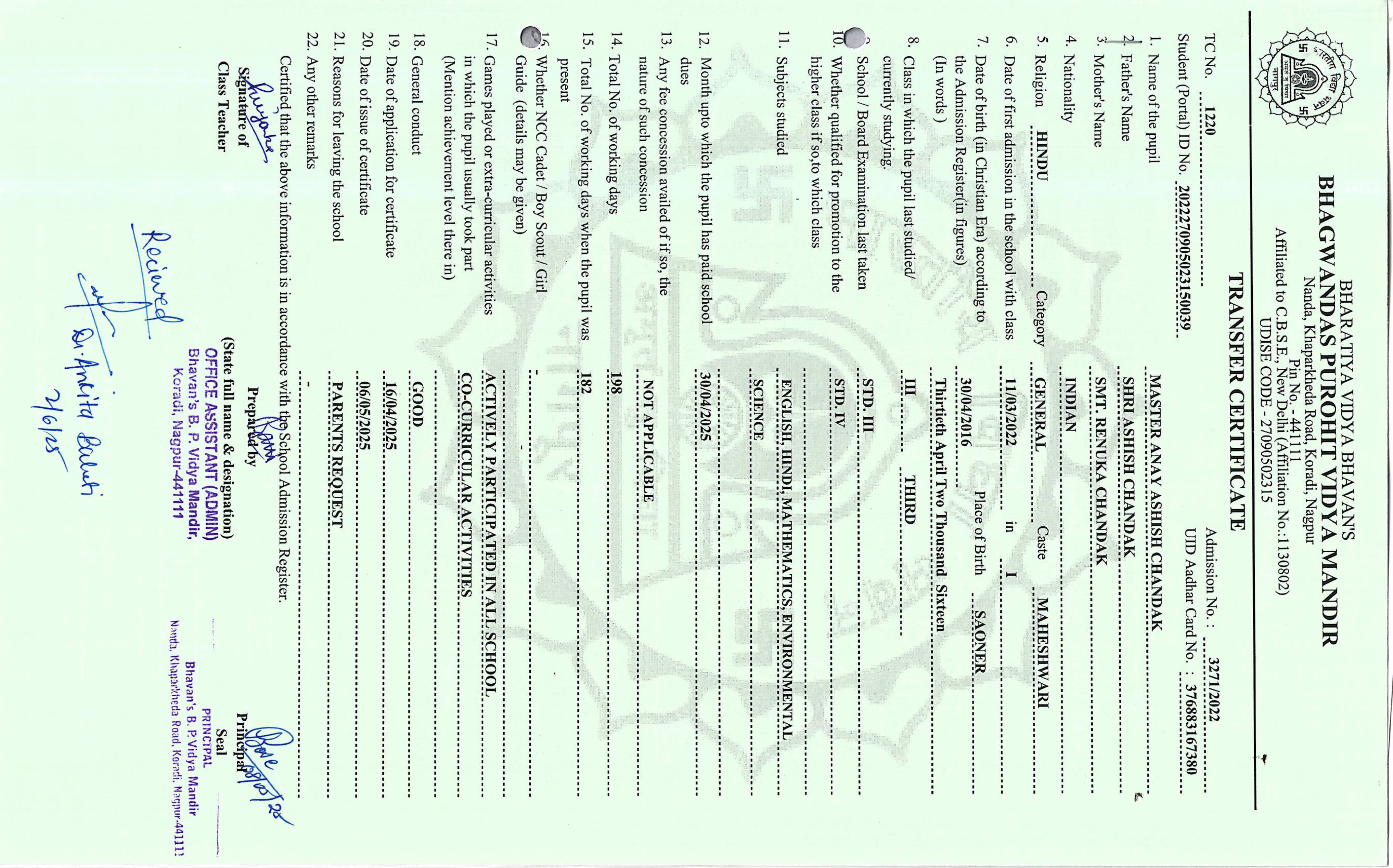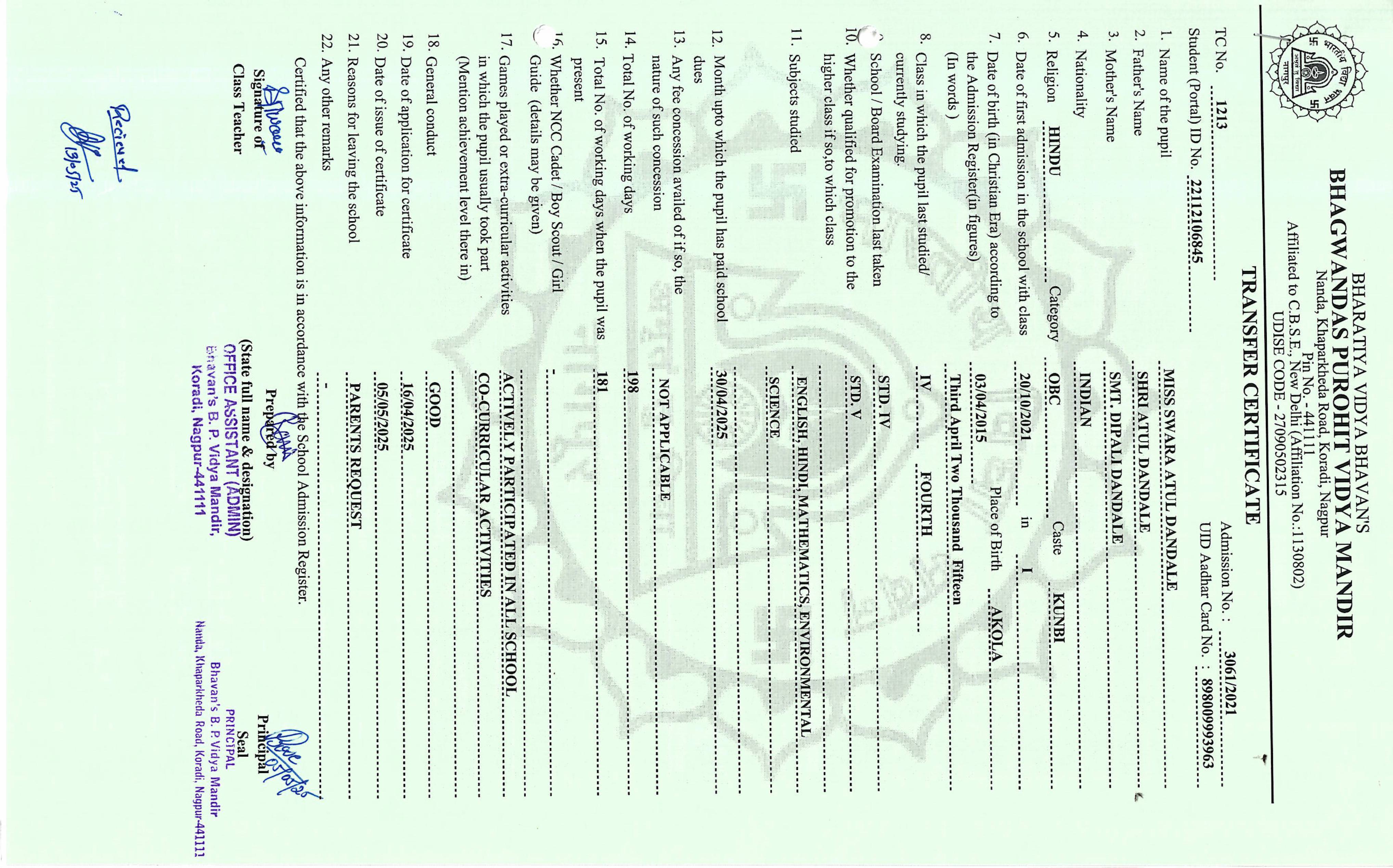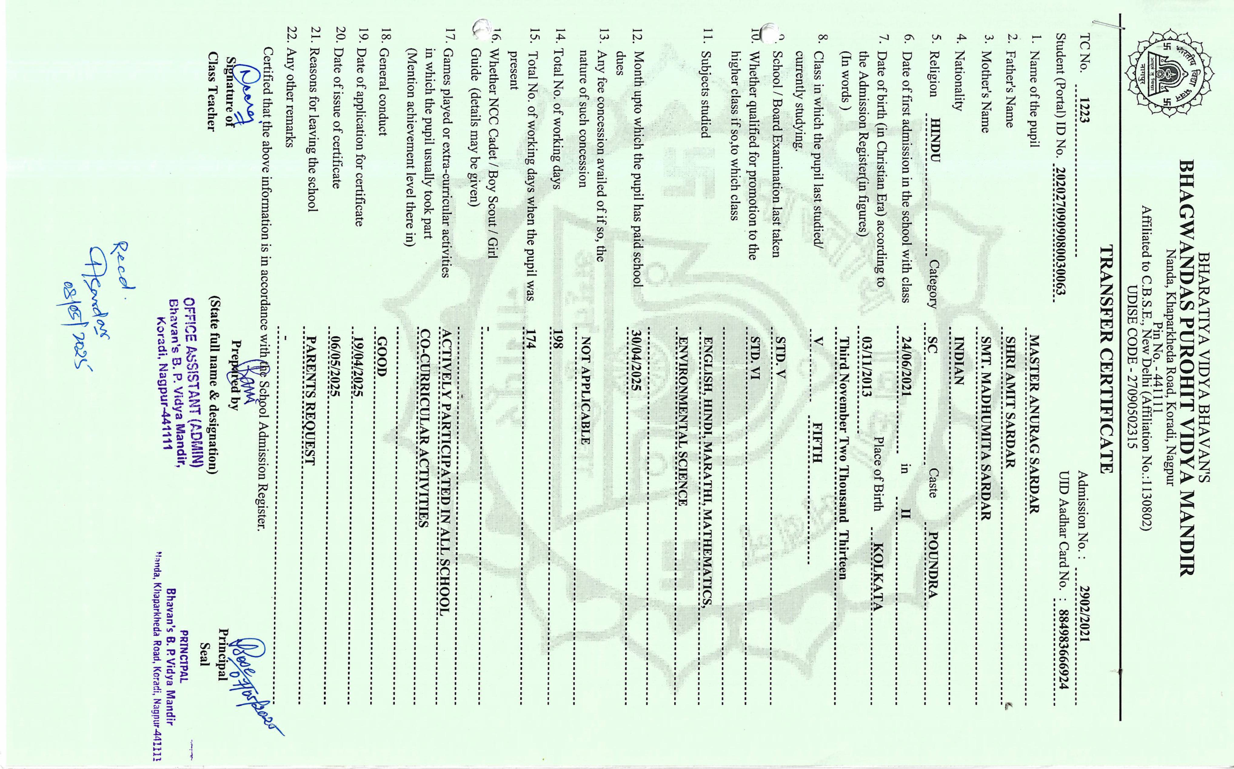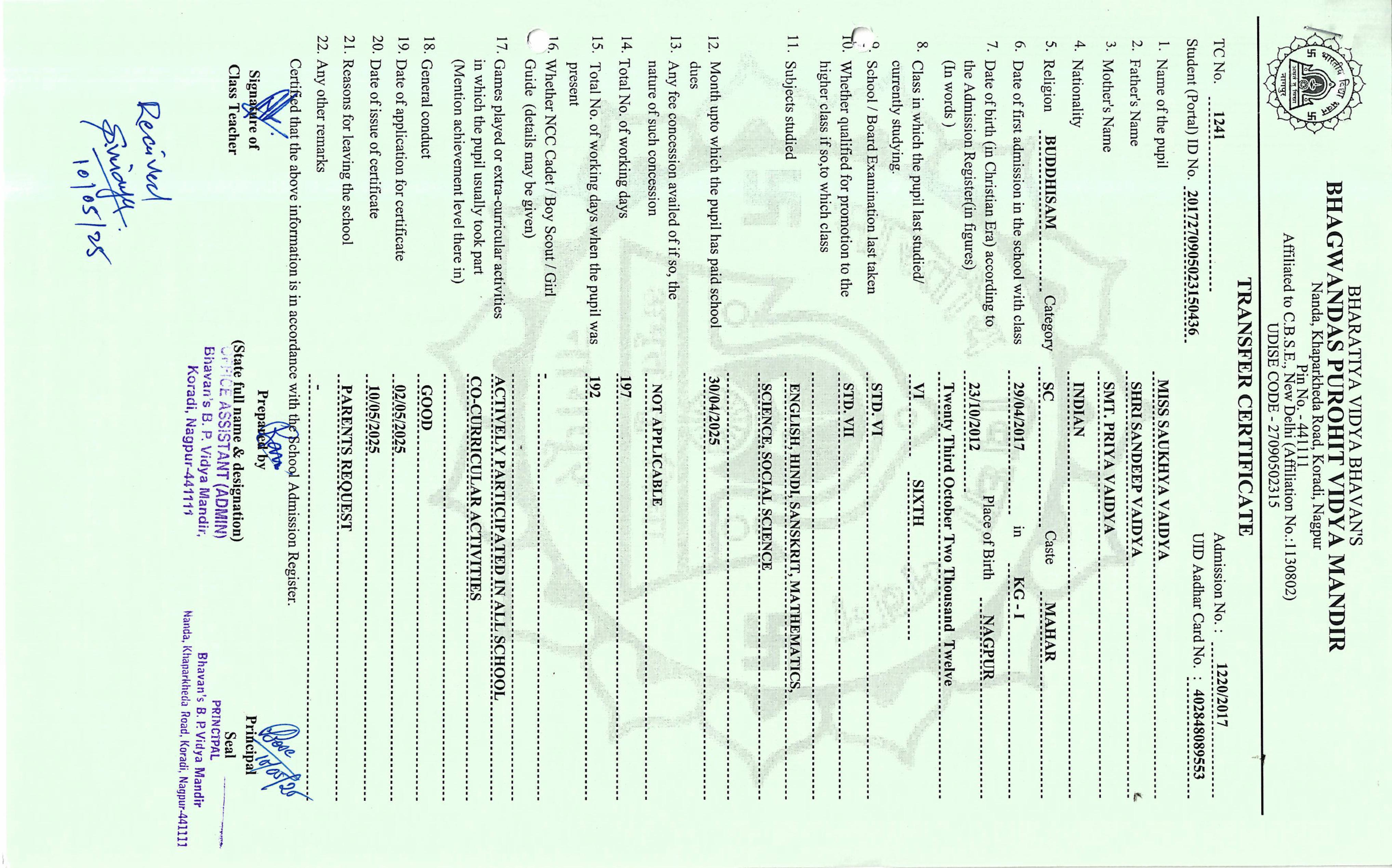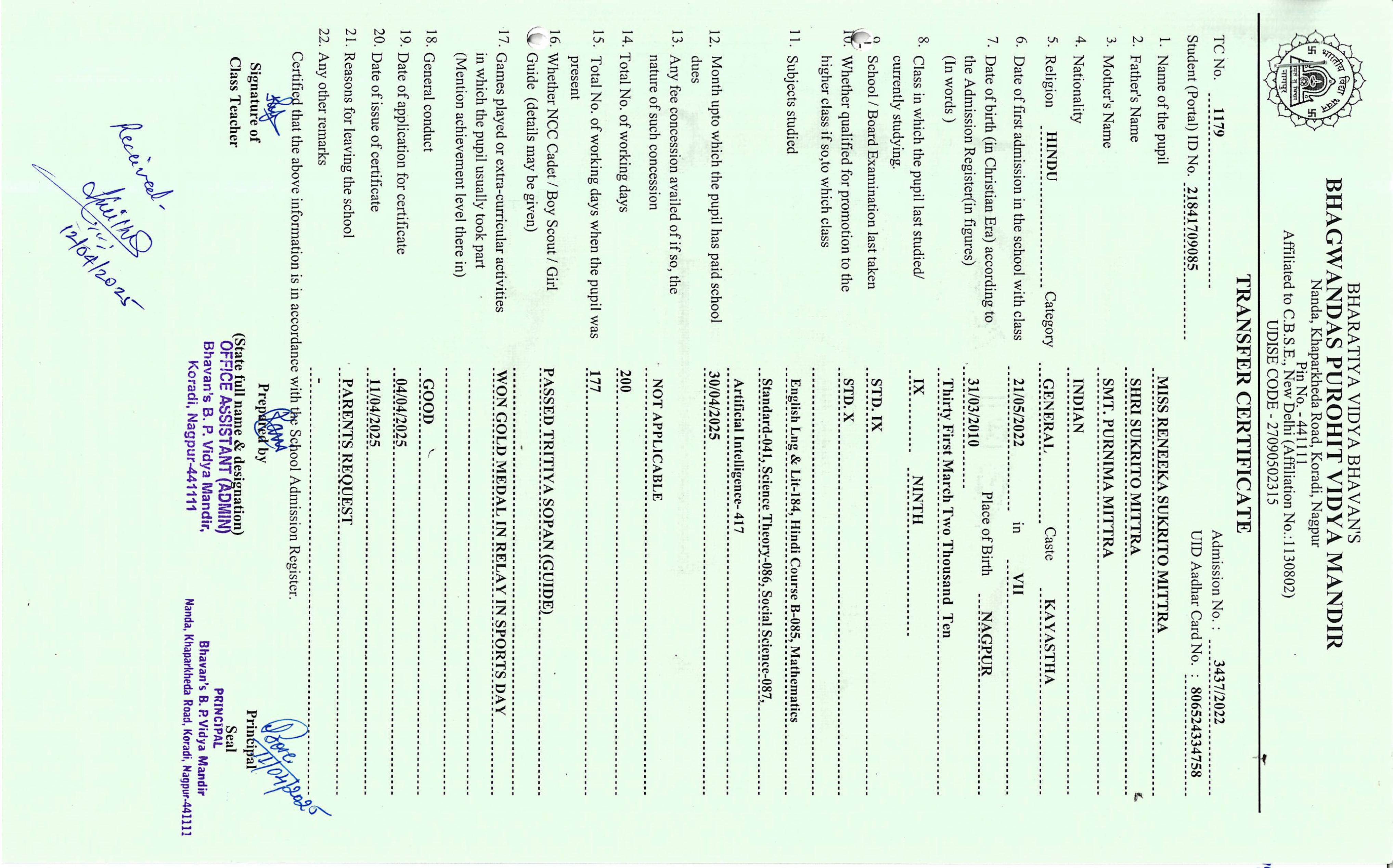 TC of students issued in the 2025