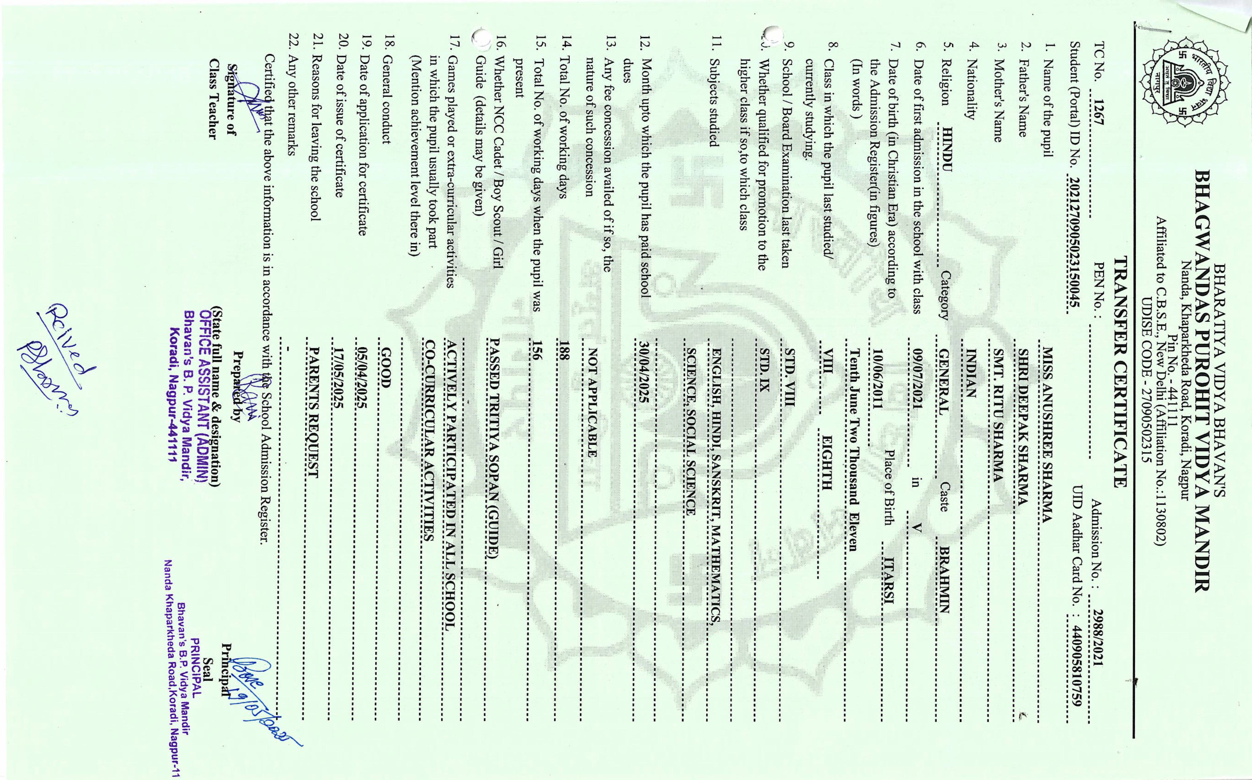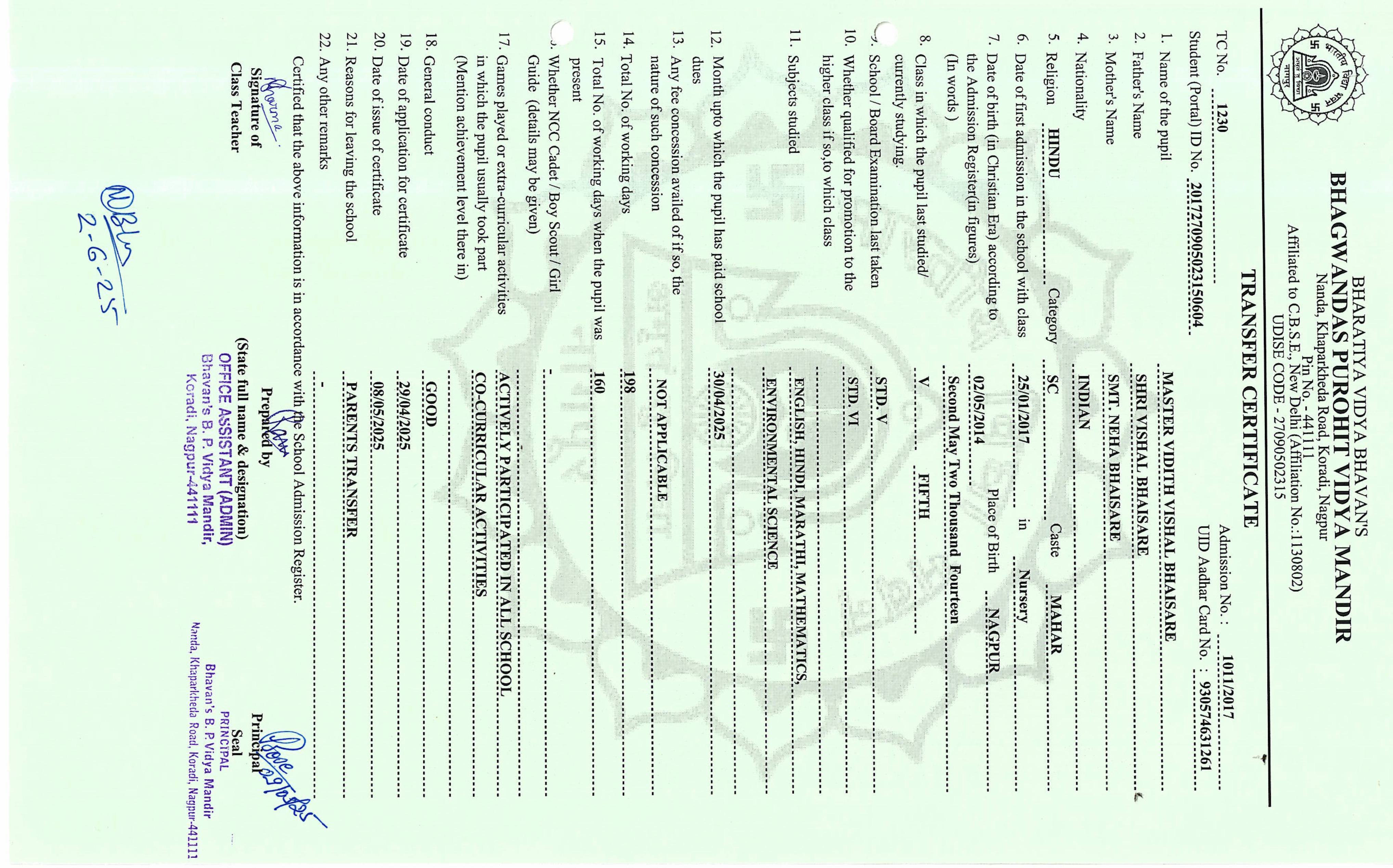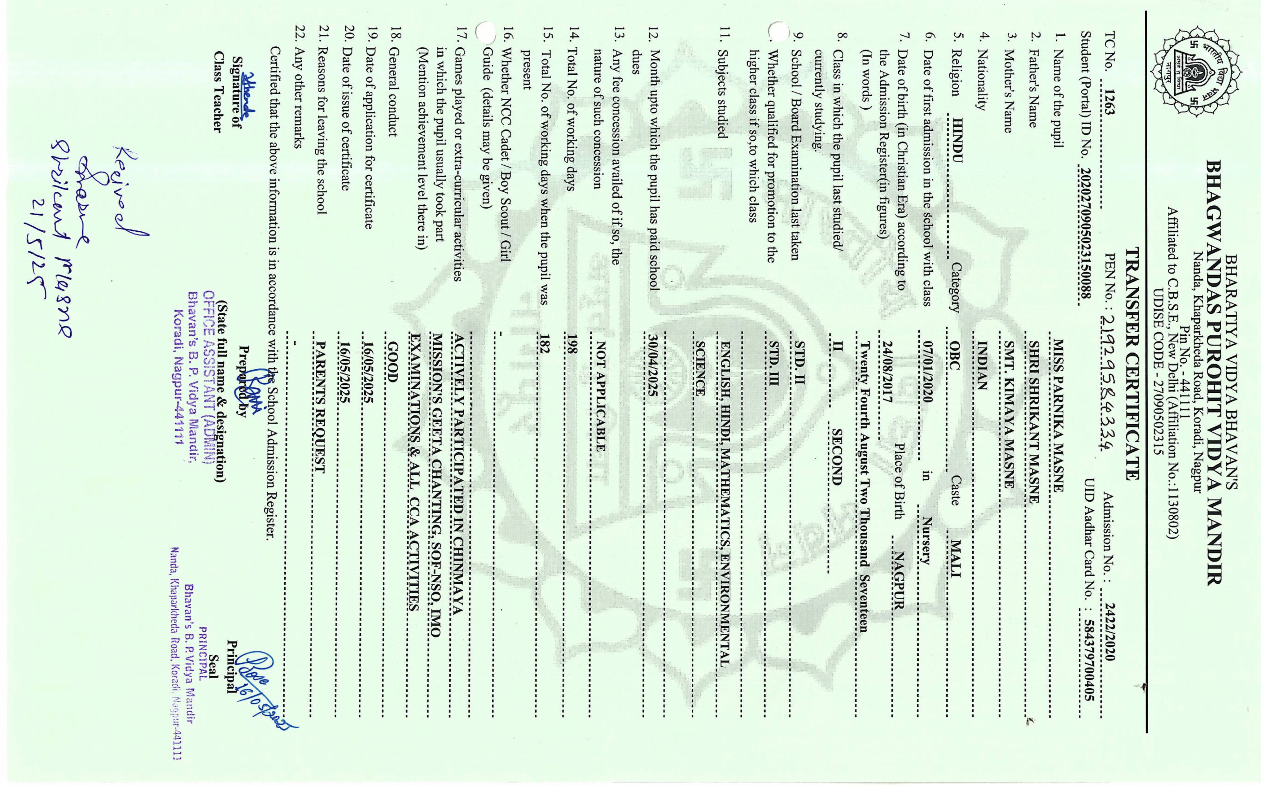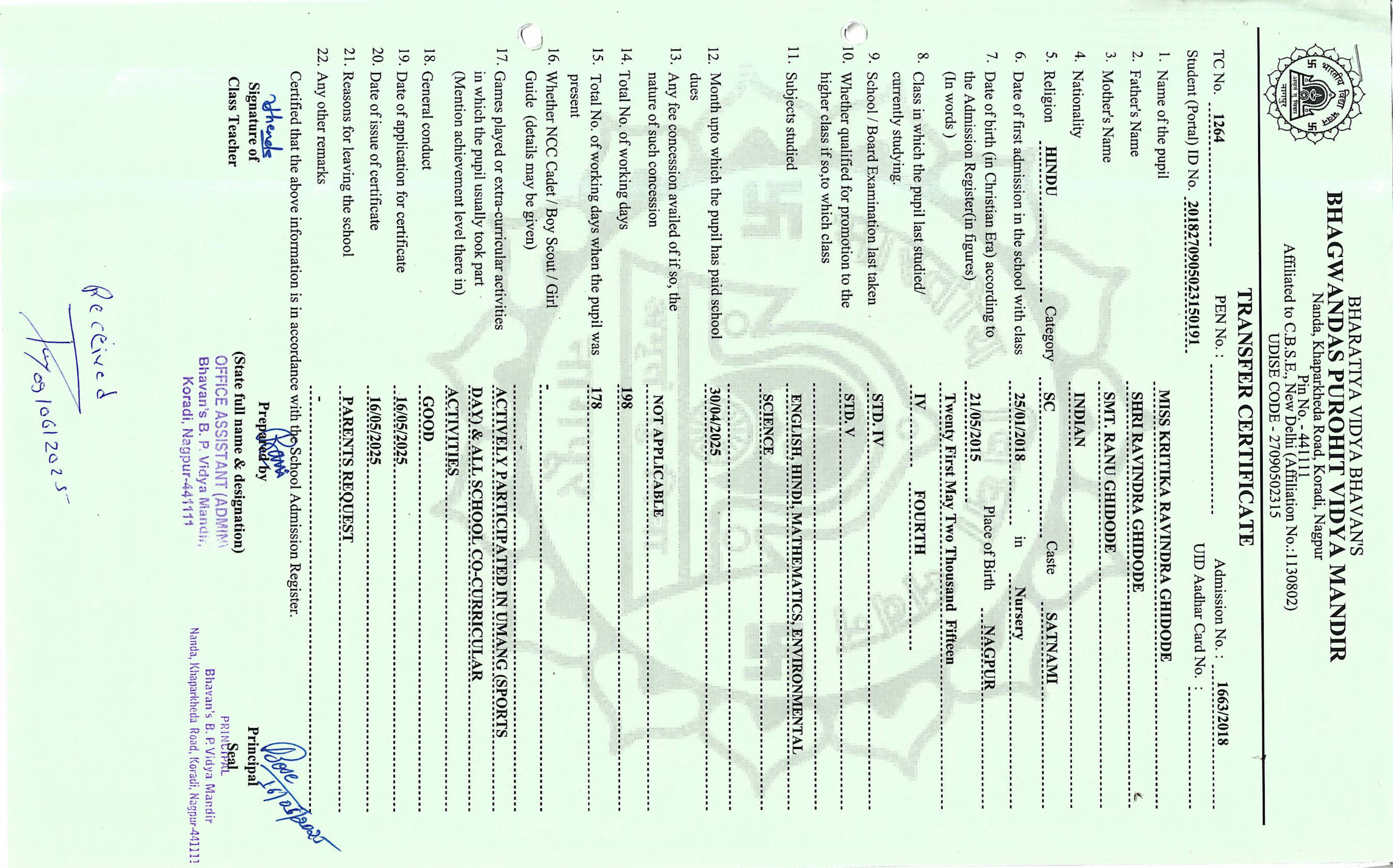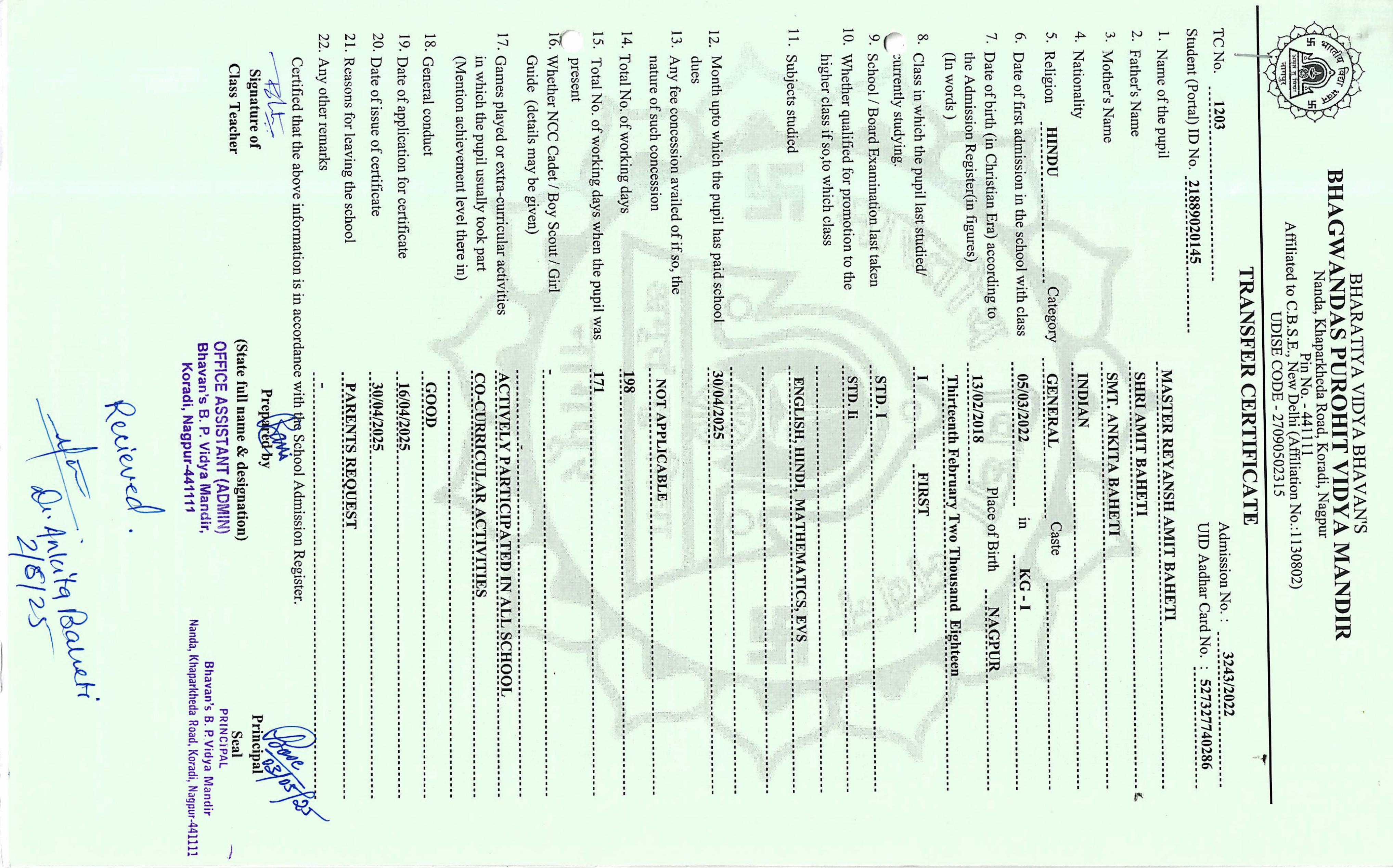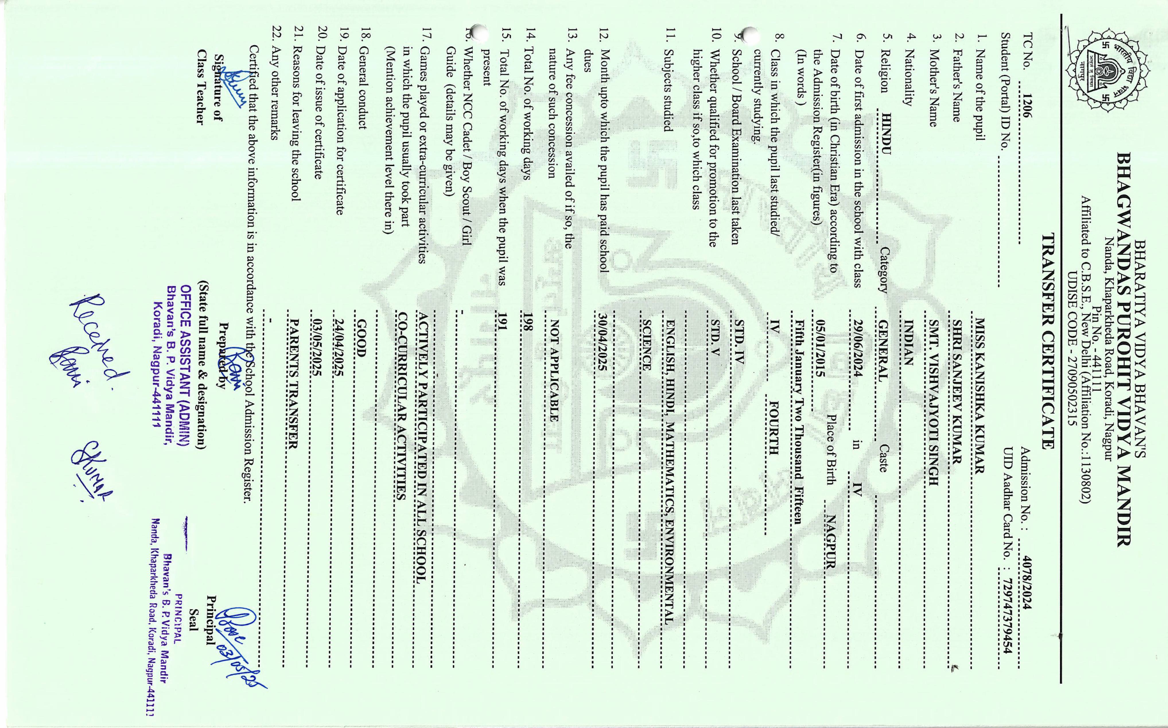 TC of students issued in the 2025