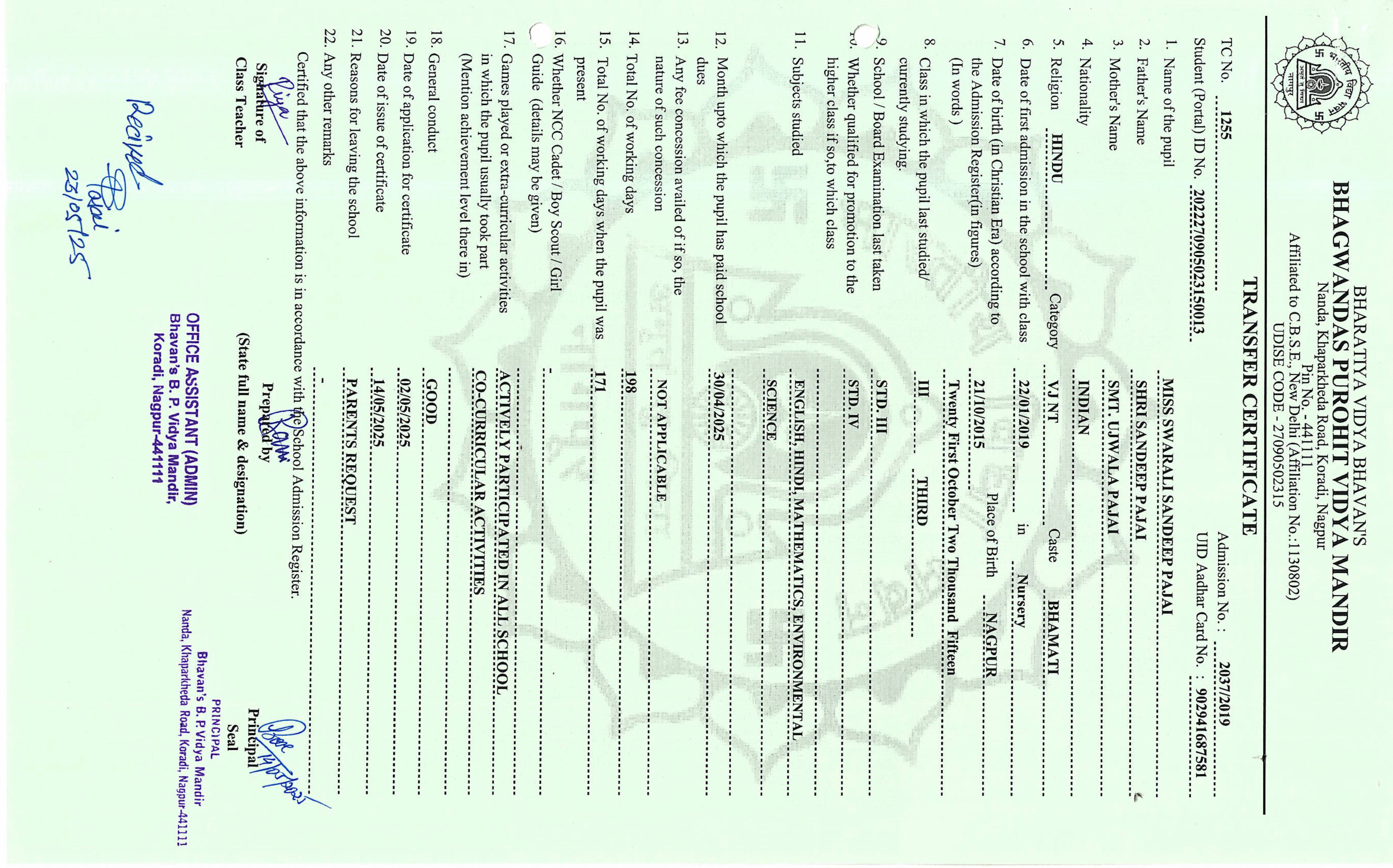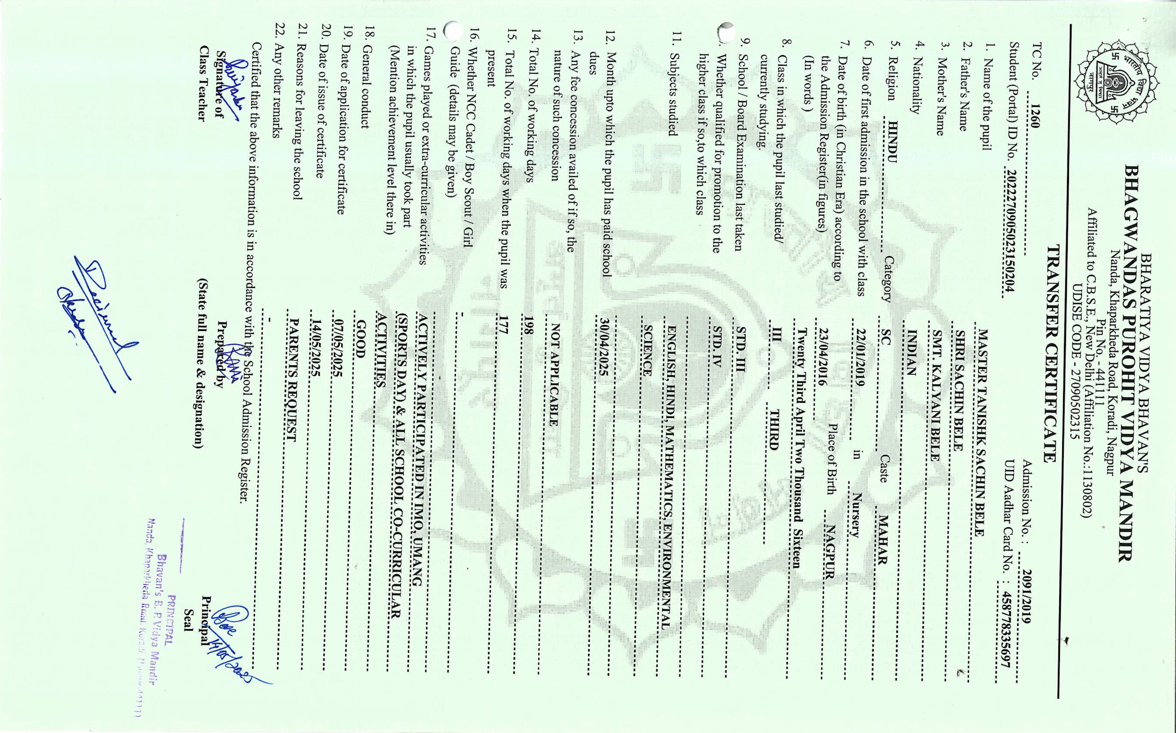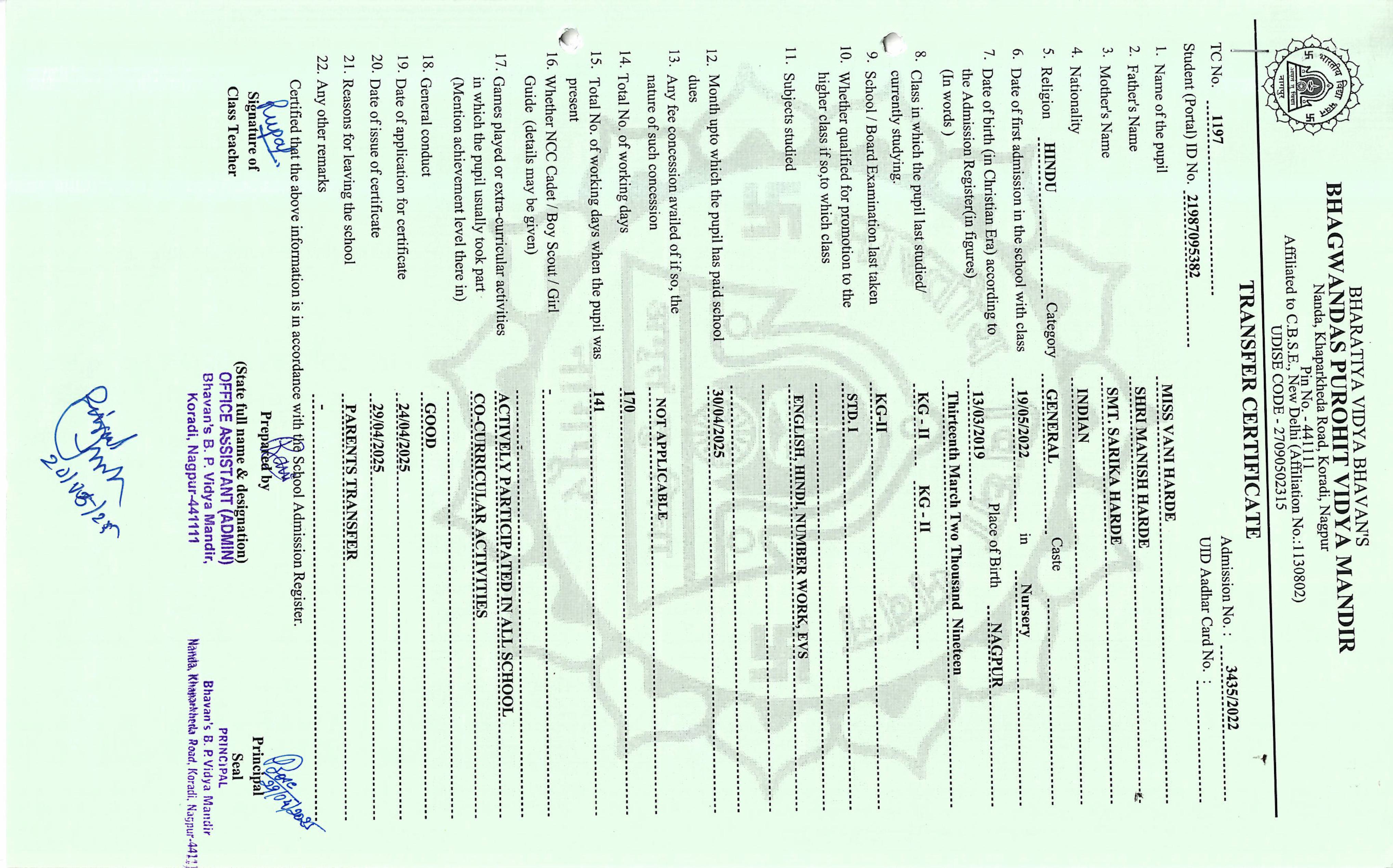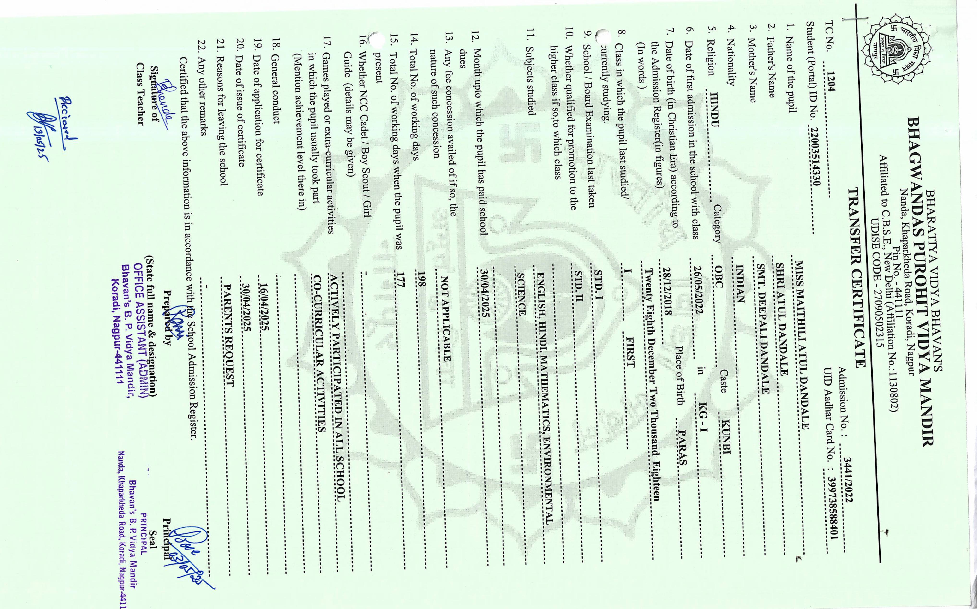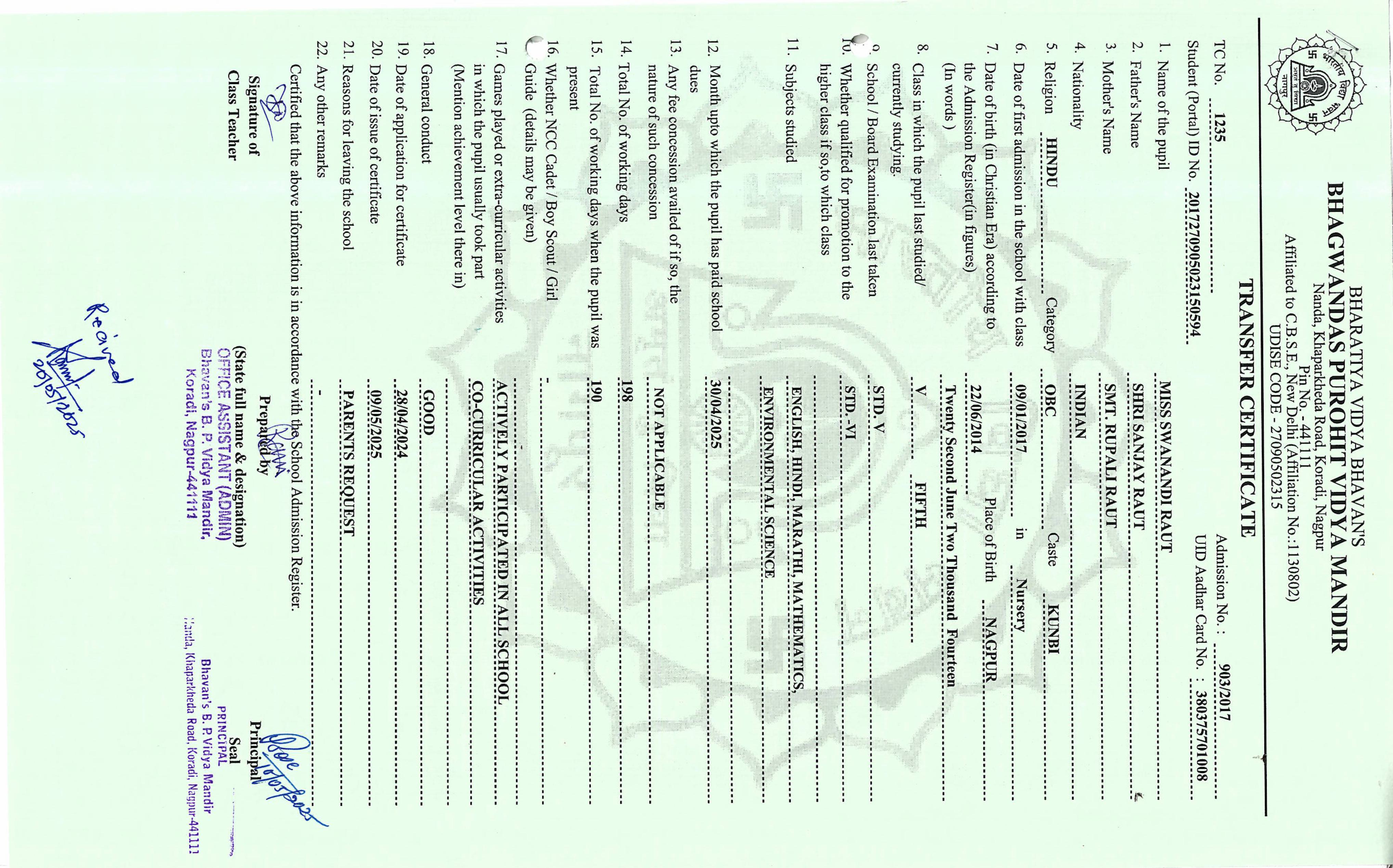 TC of students issued in the 2025