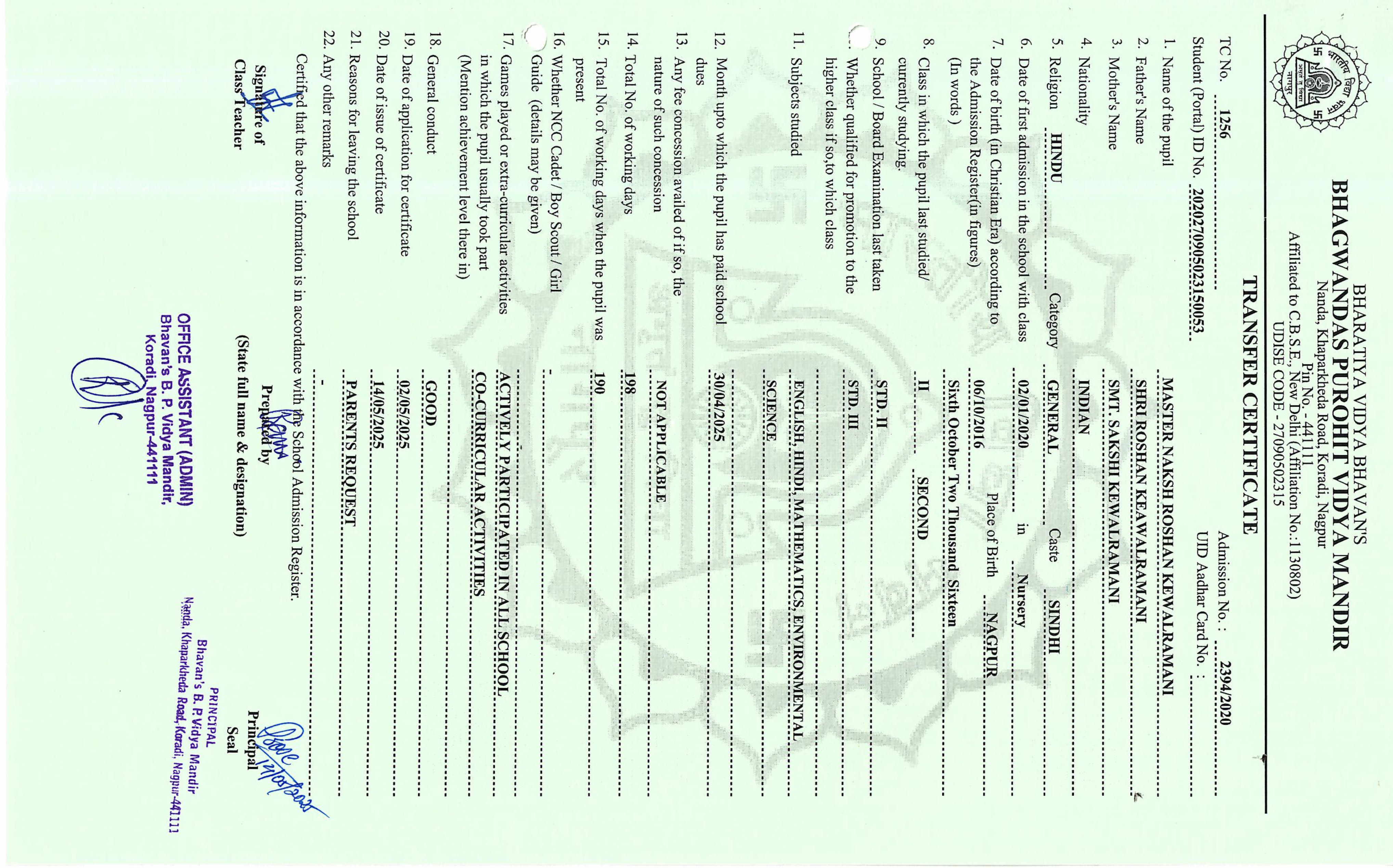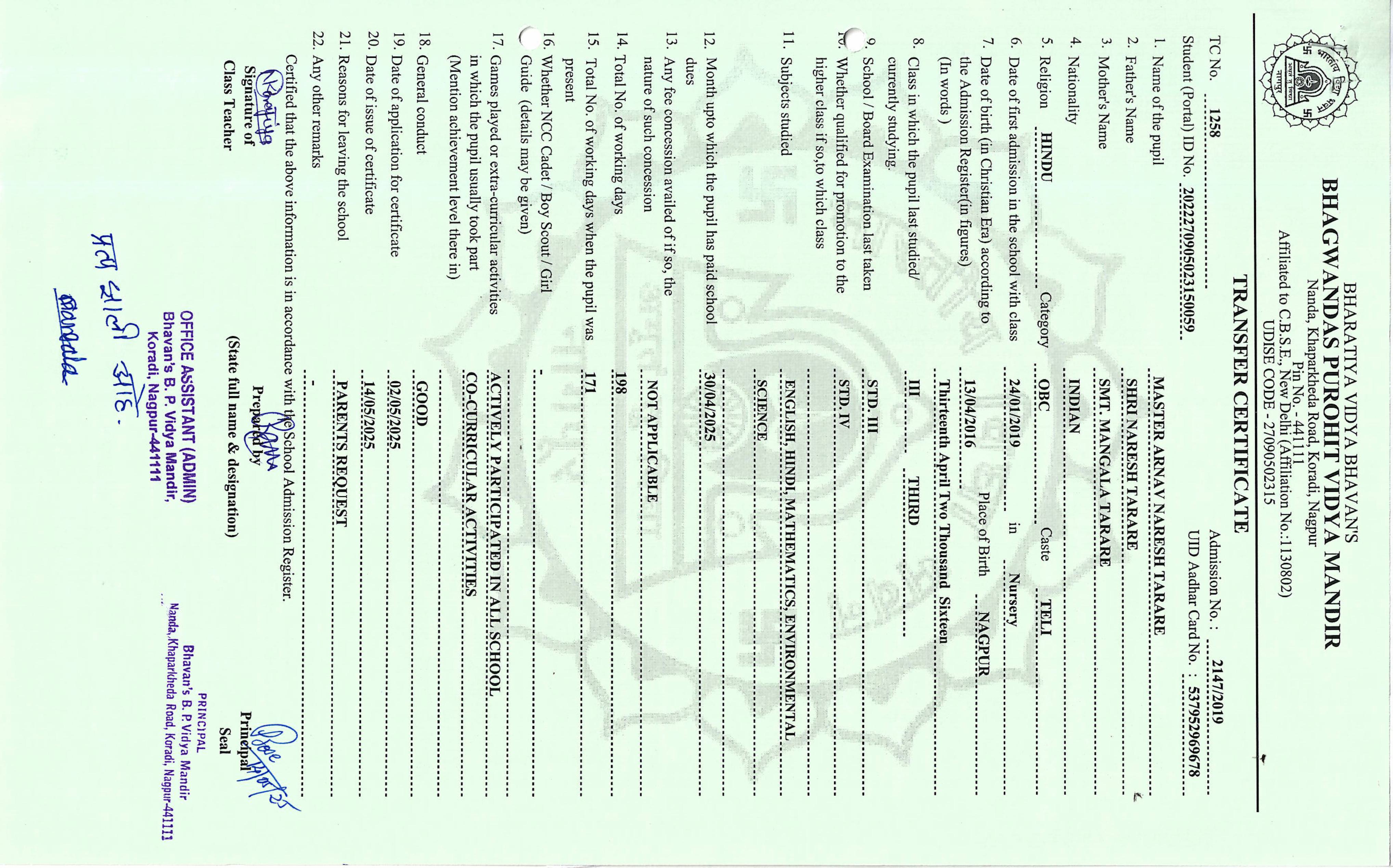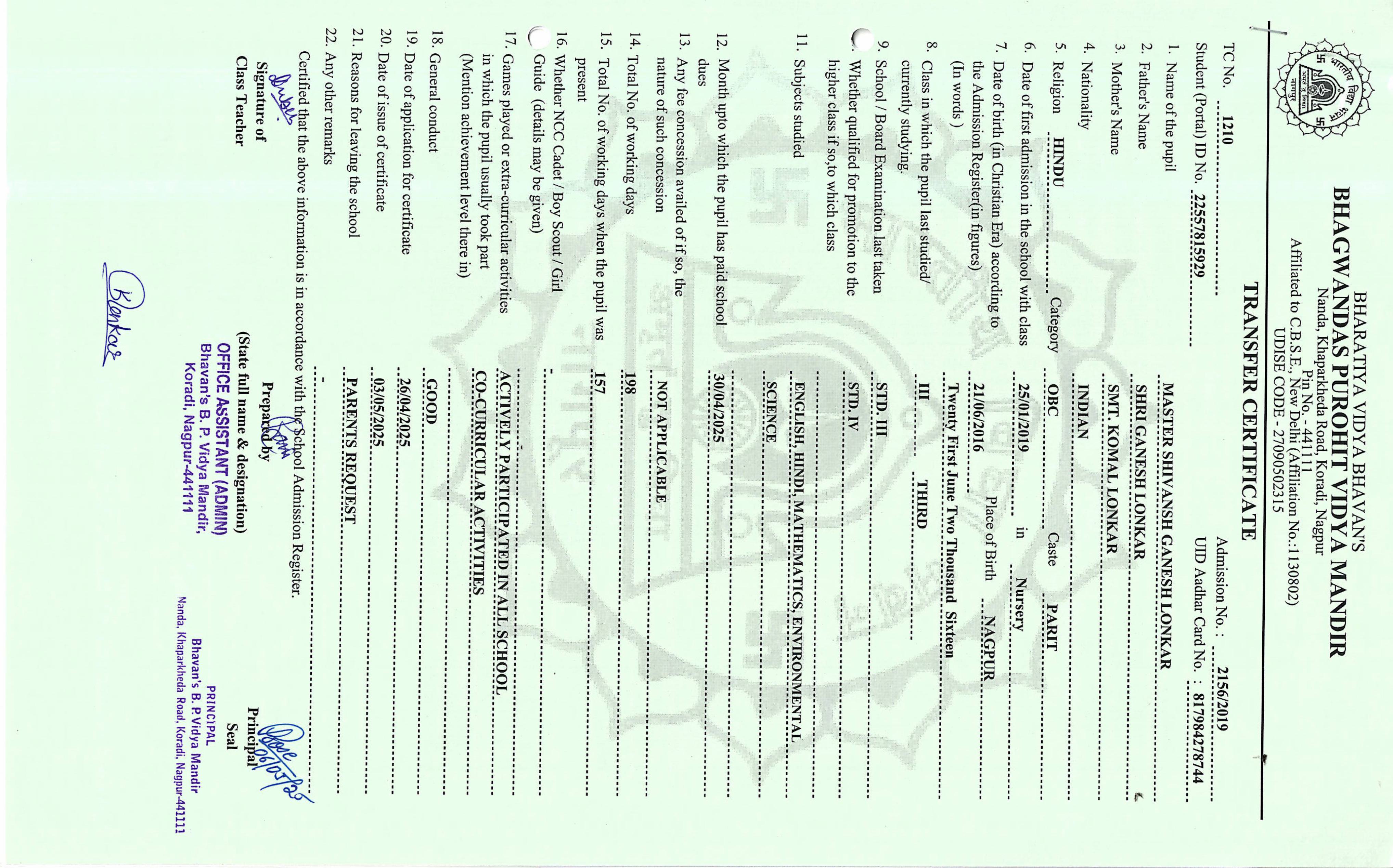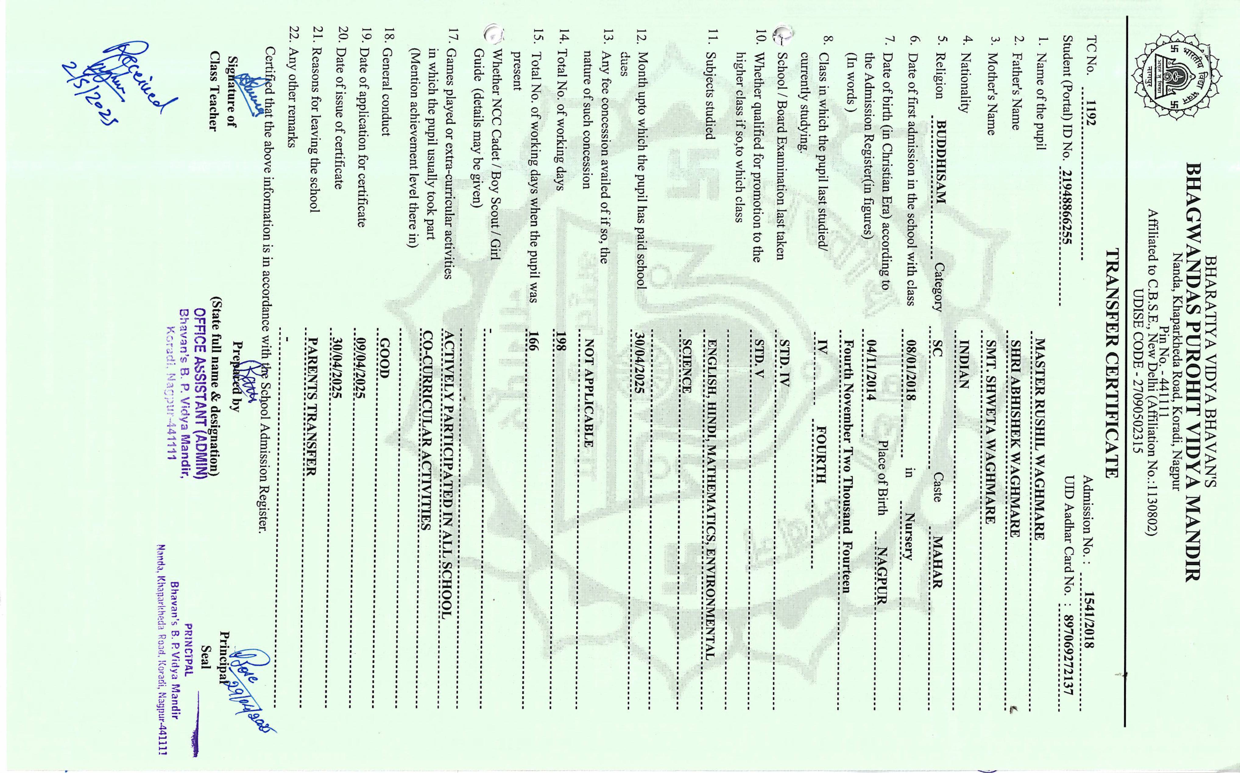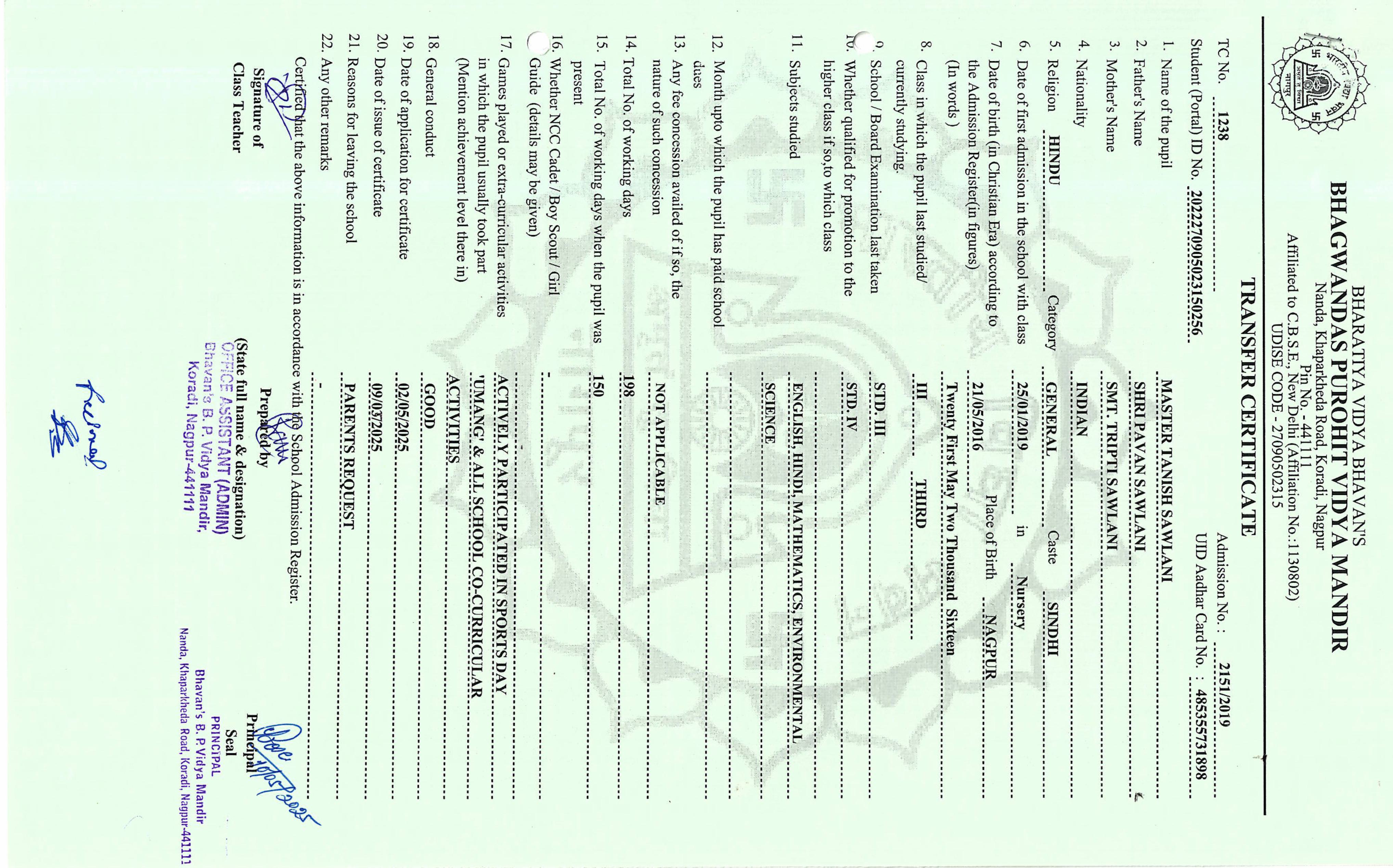 TC of students issued in the 2025