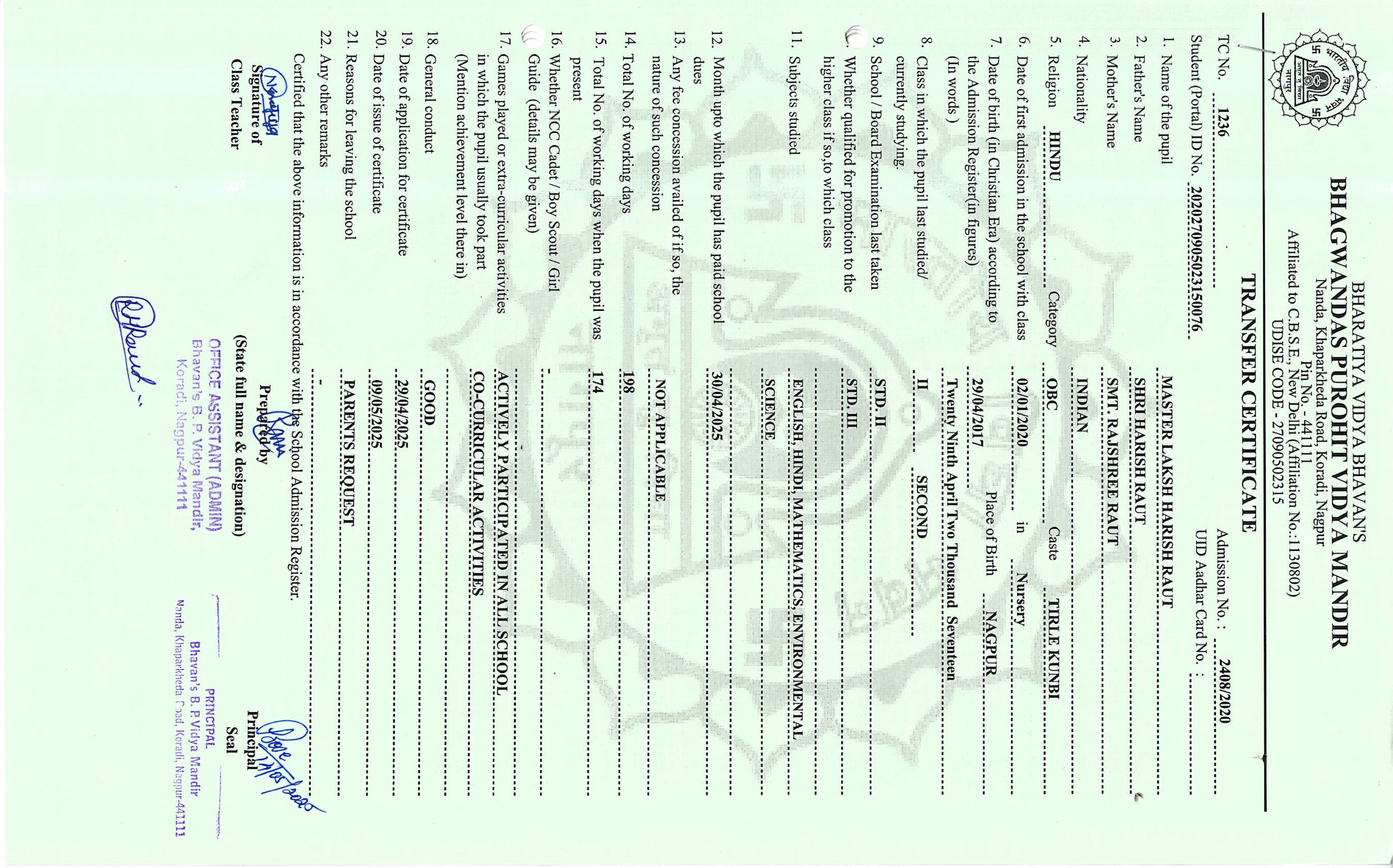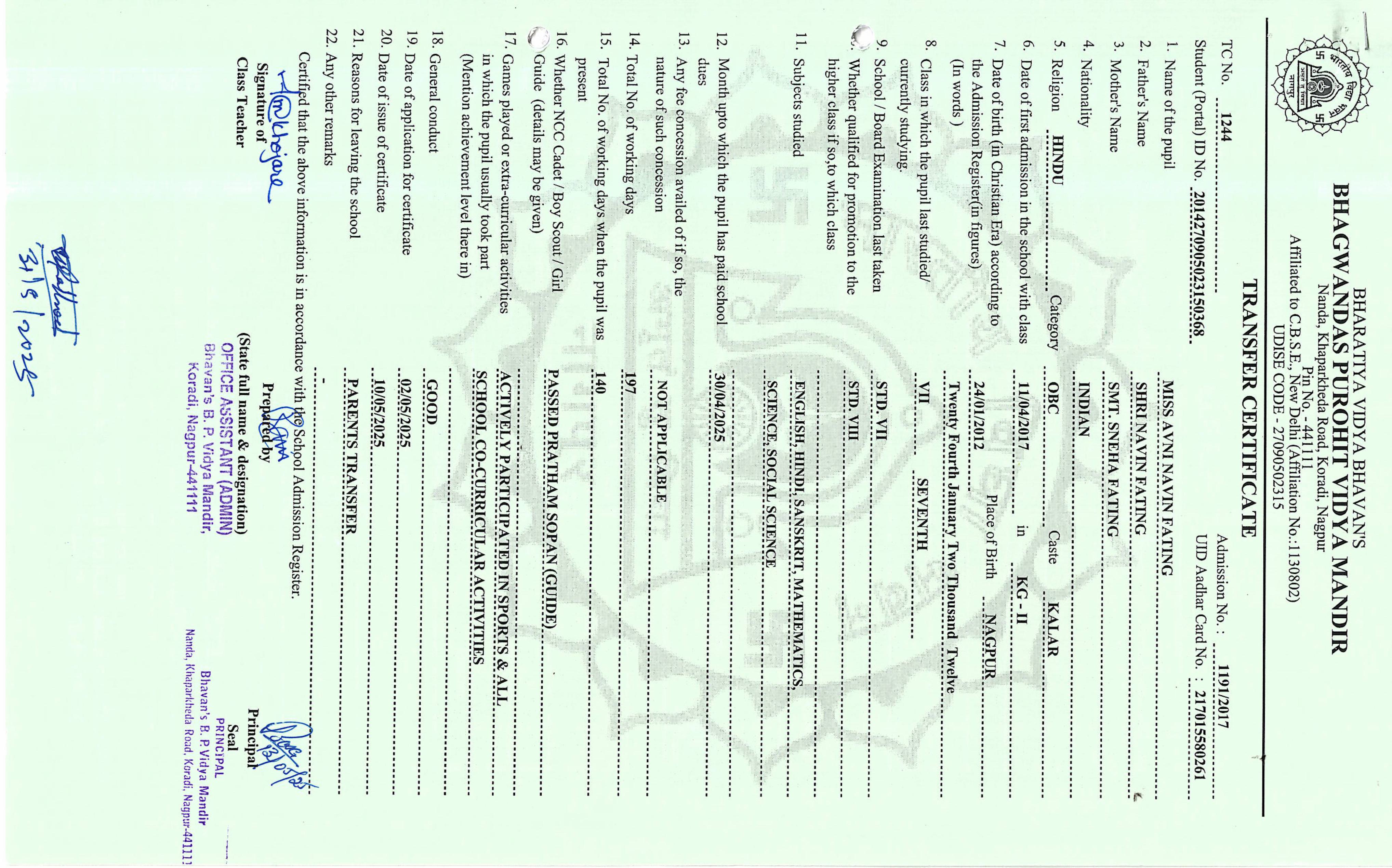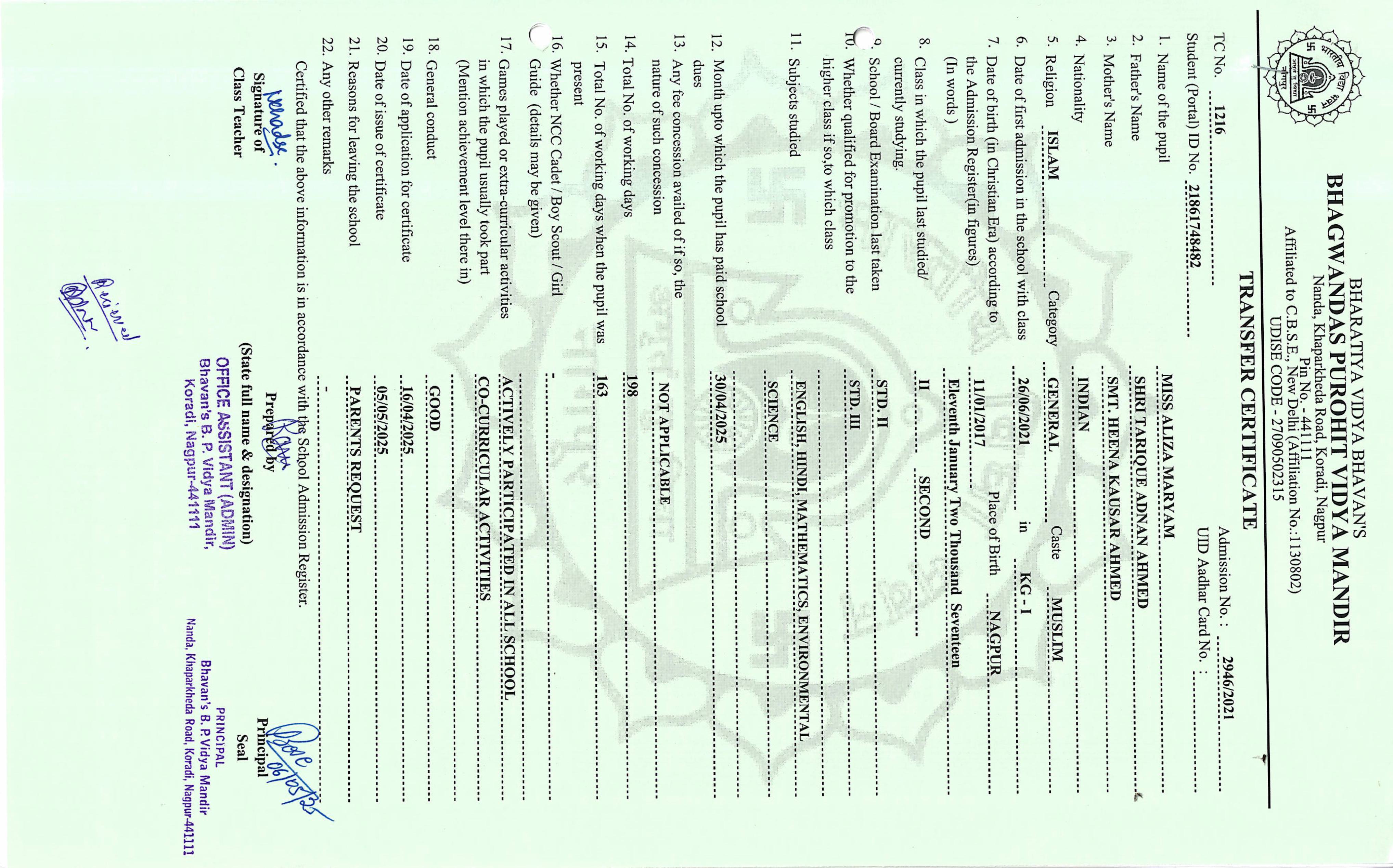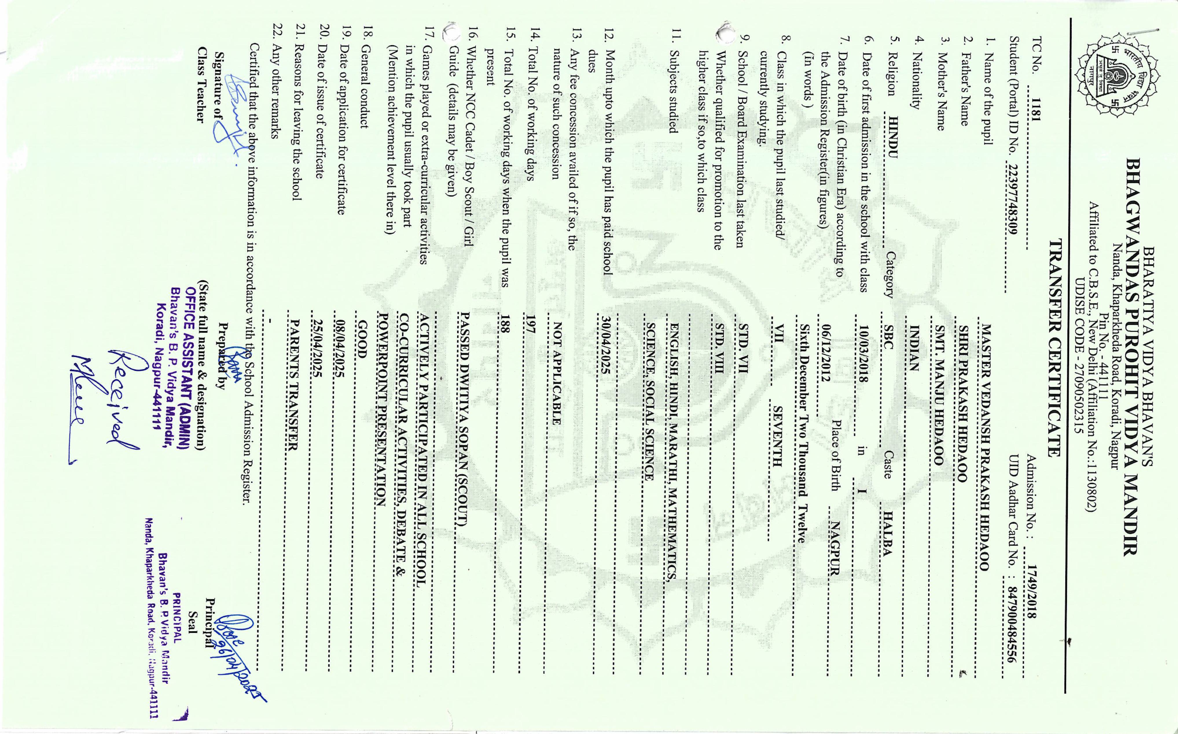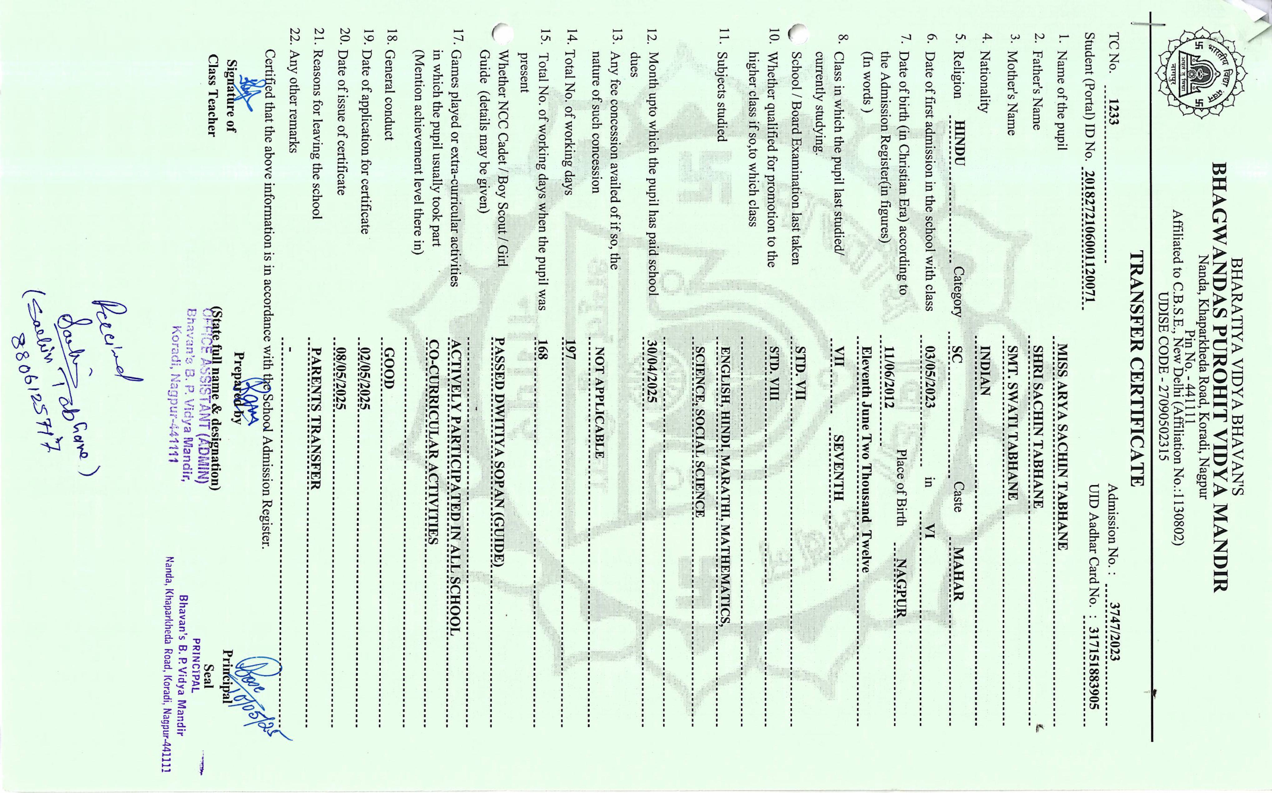 TC of students issued in the 2025