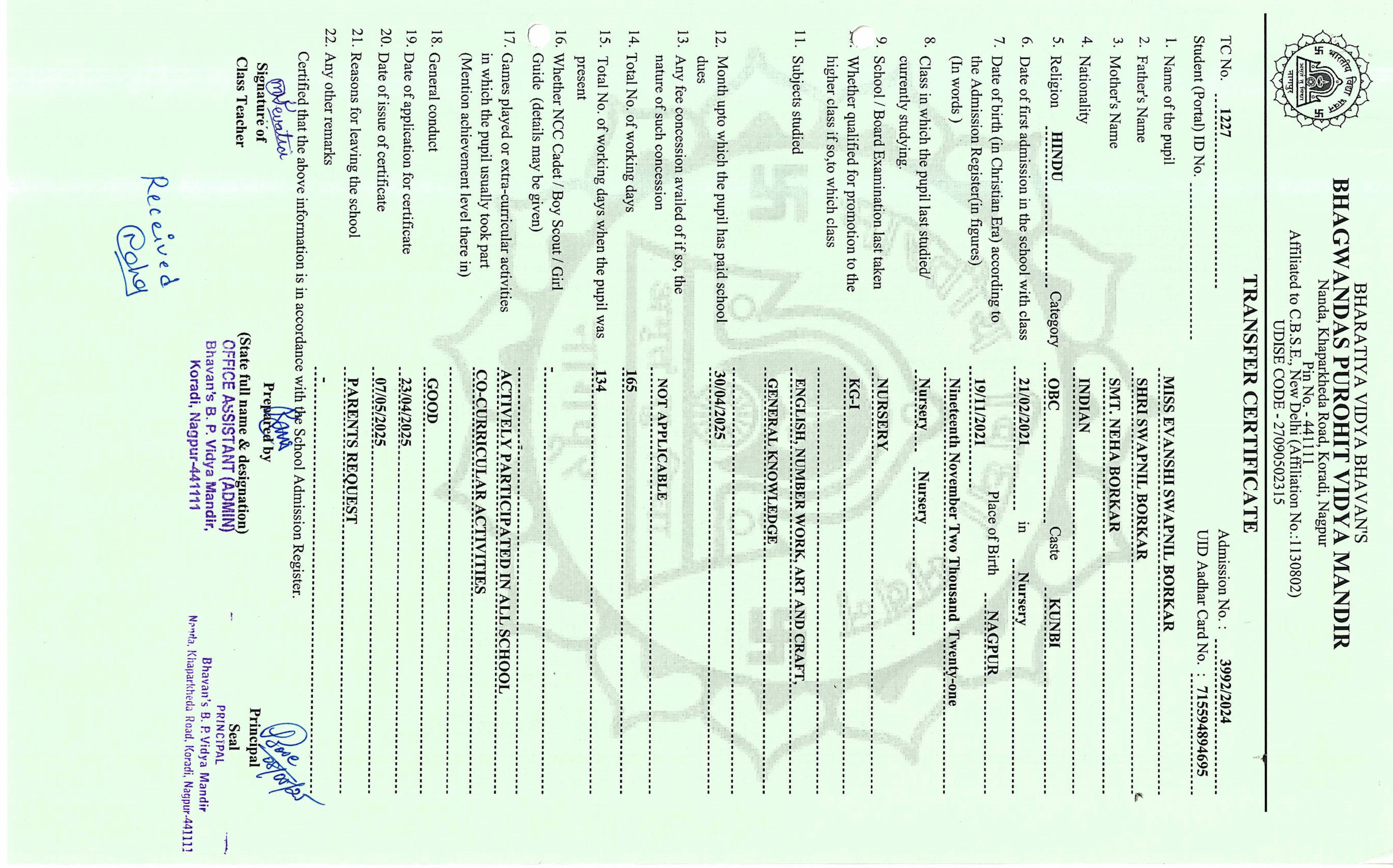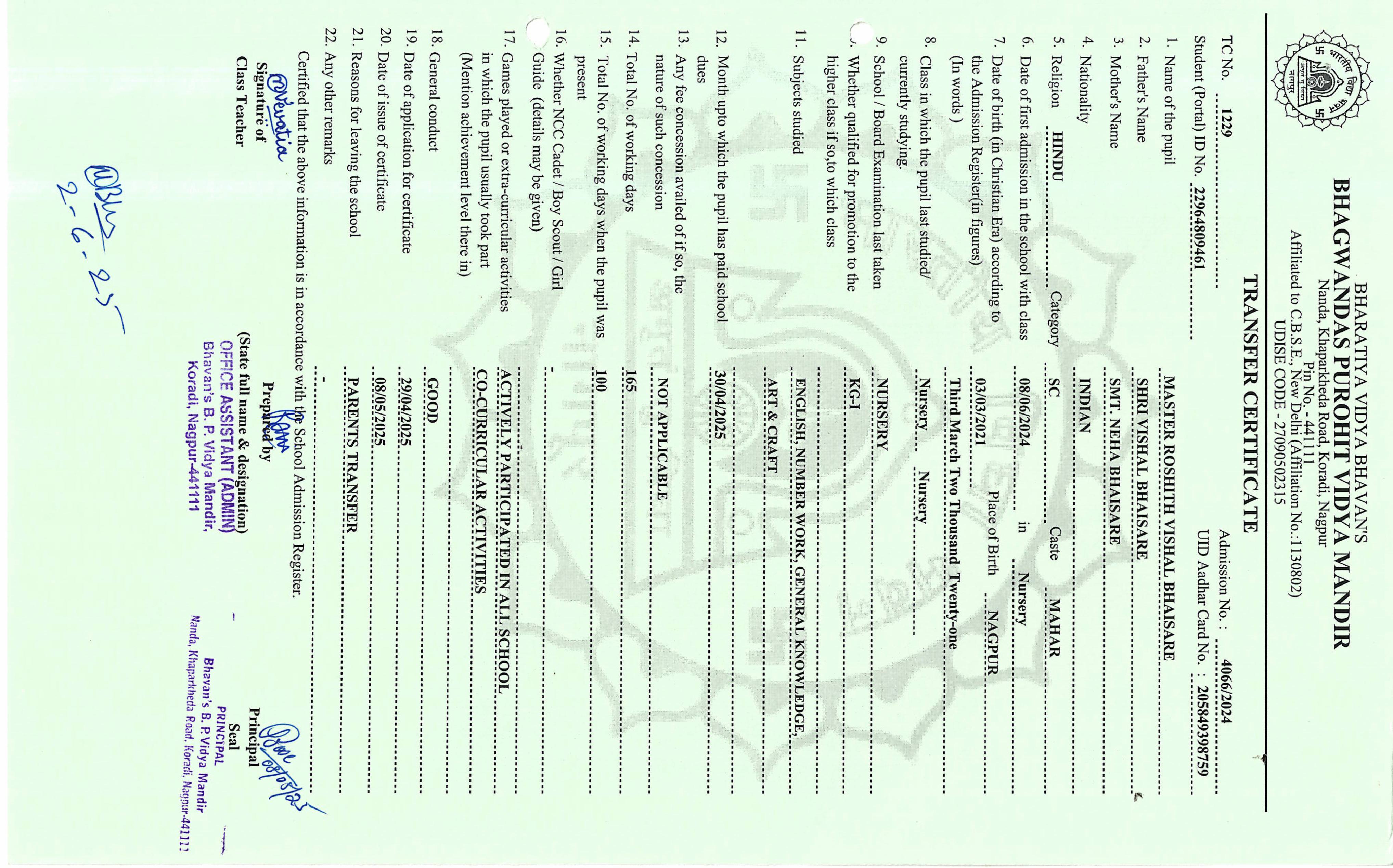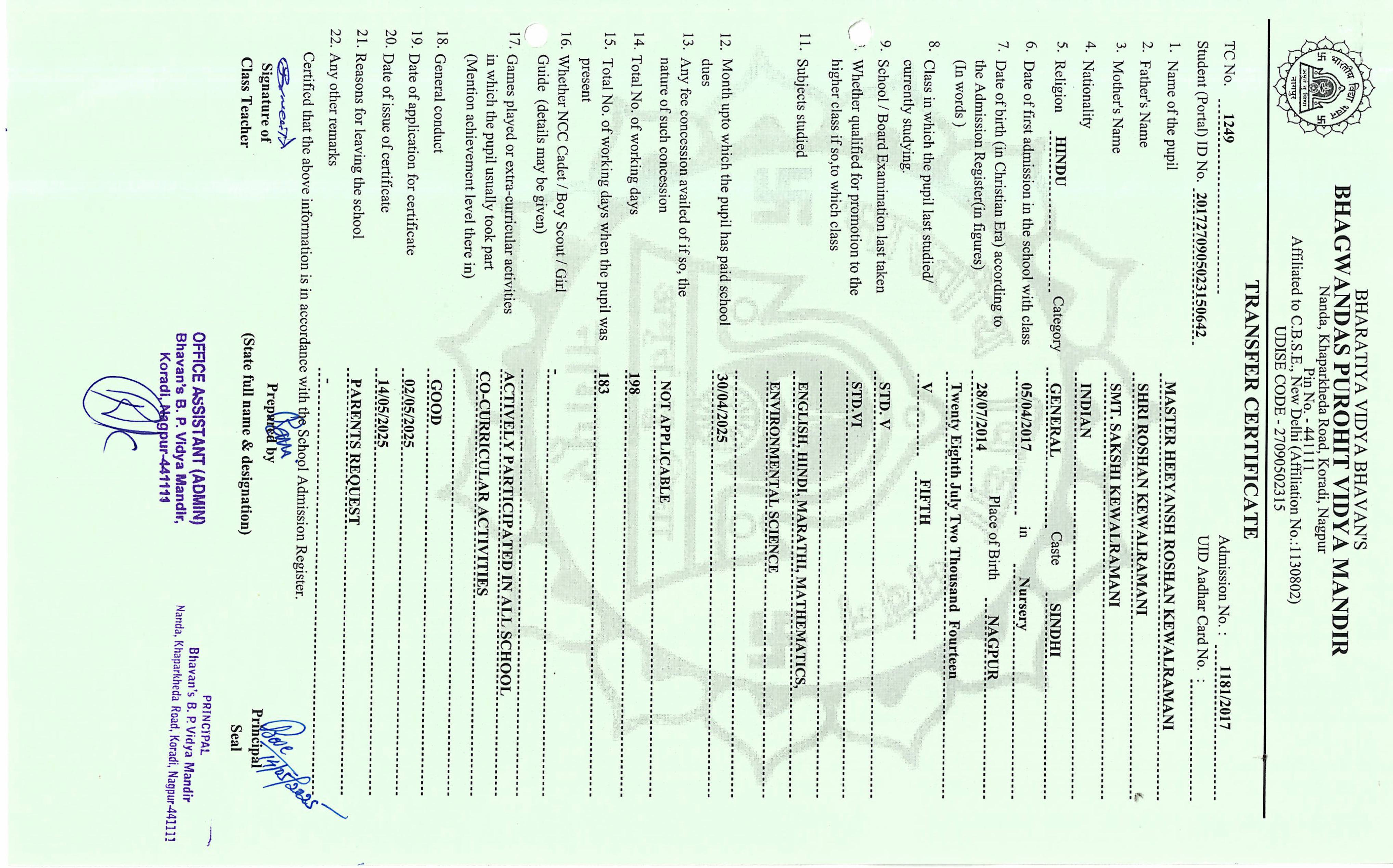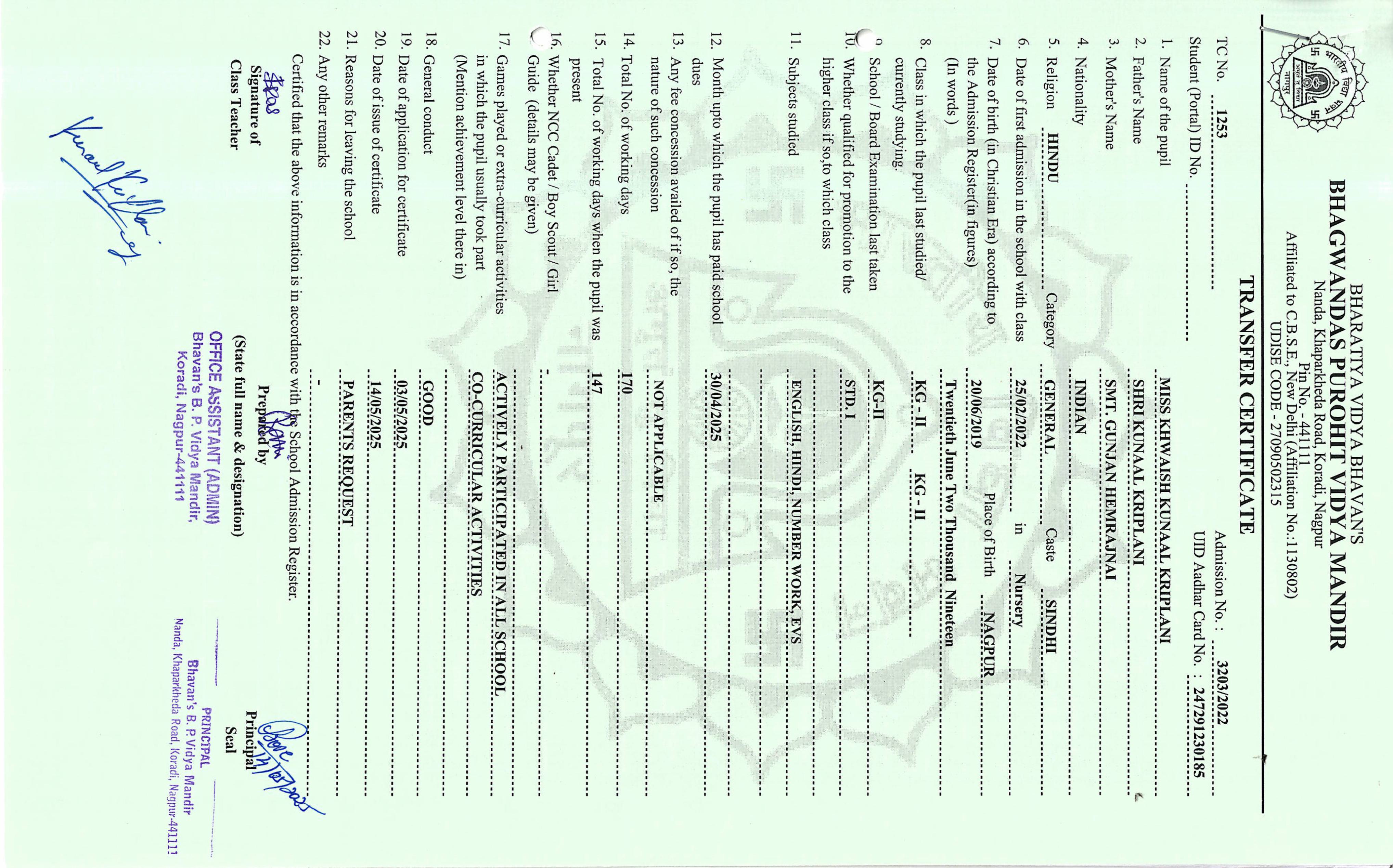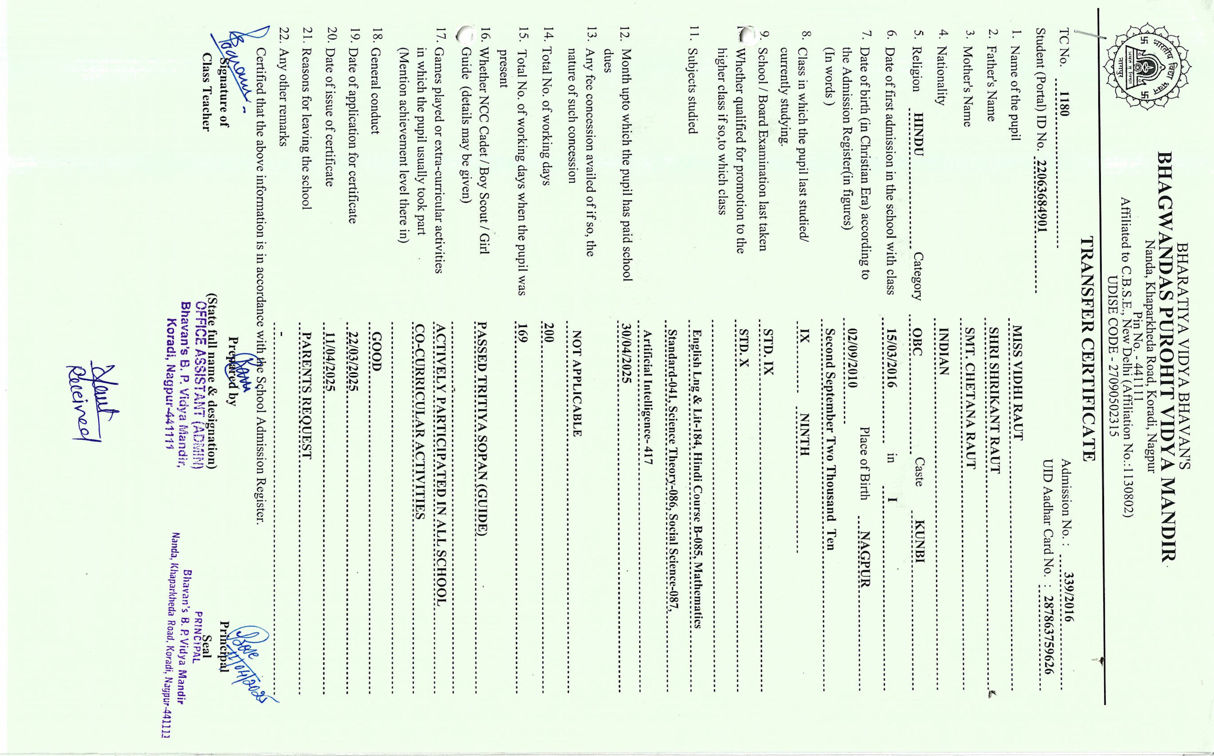 TC of students issued in the 2025