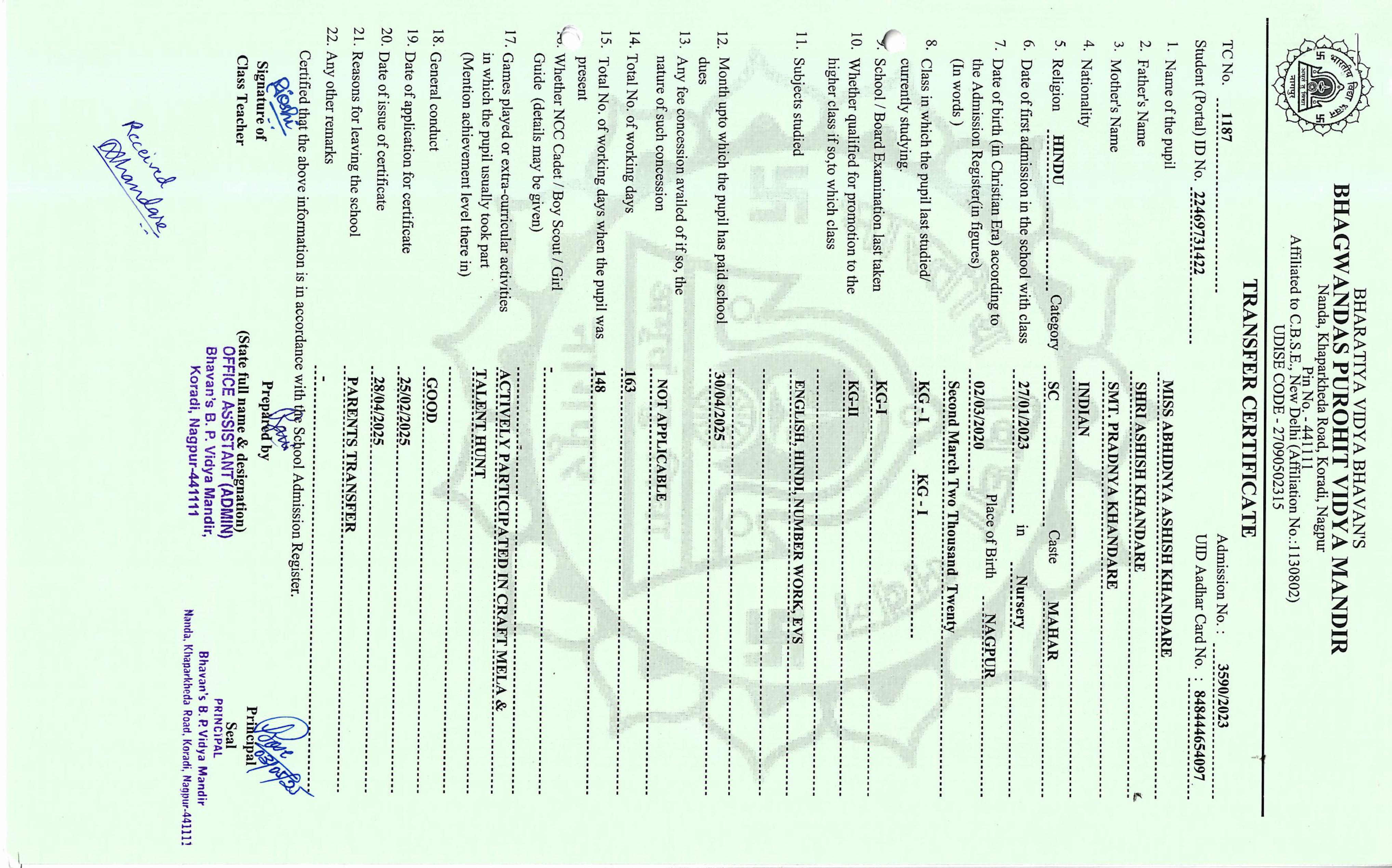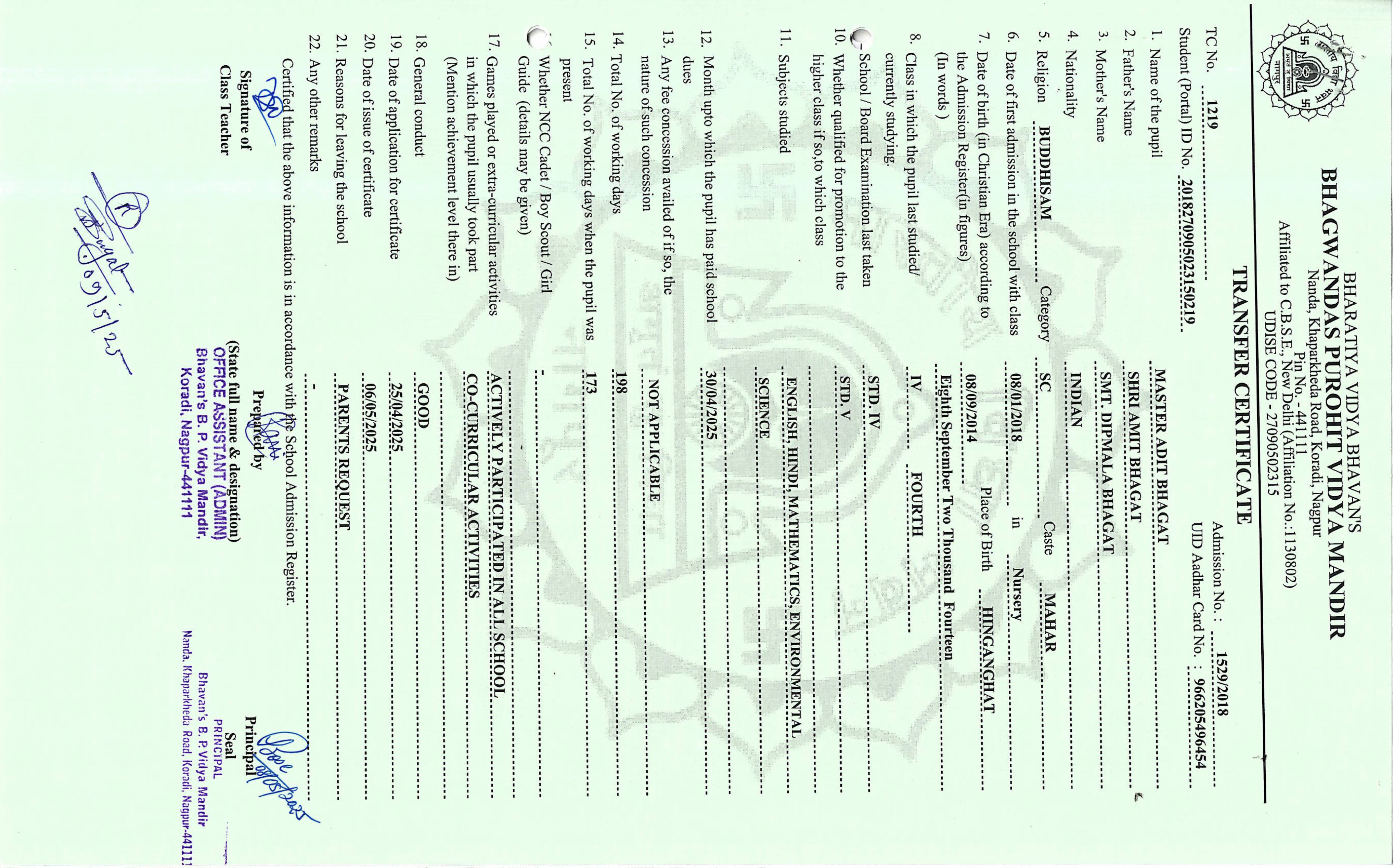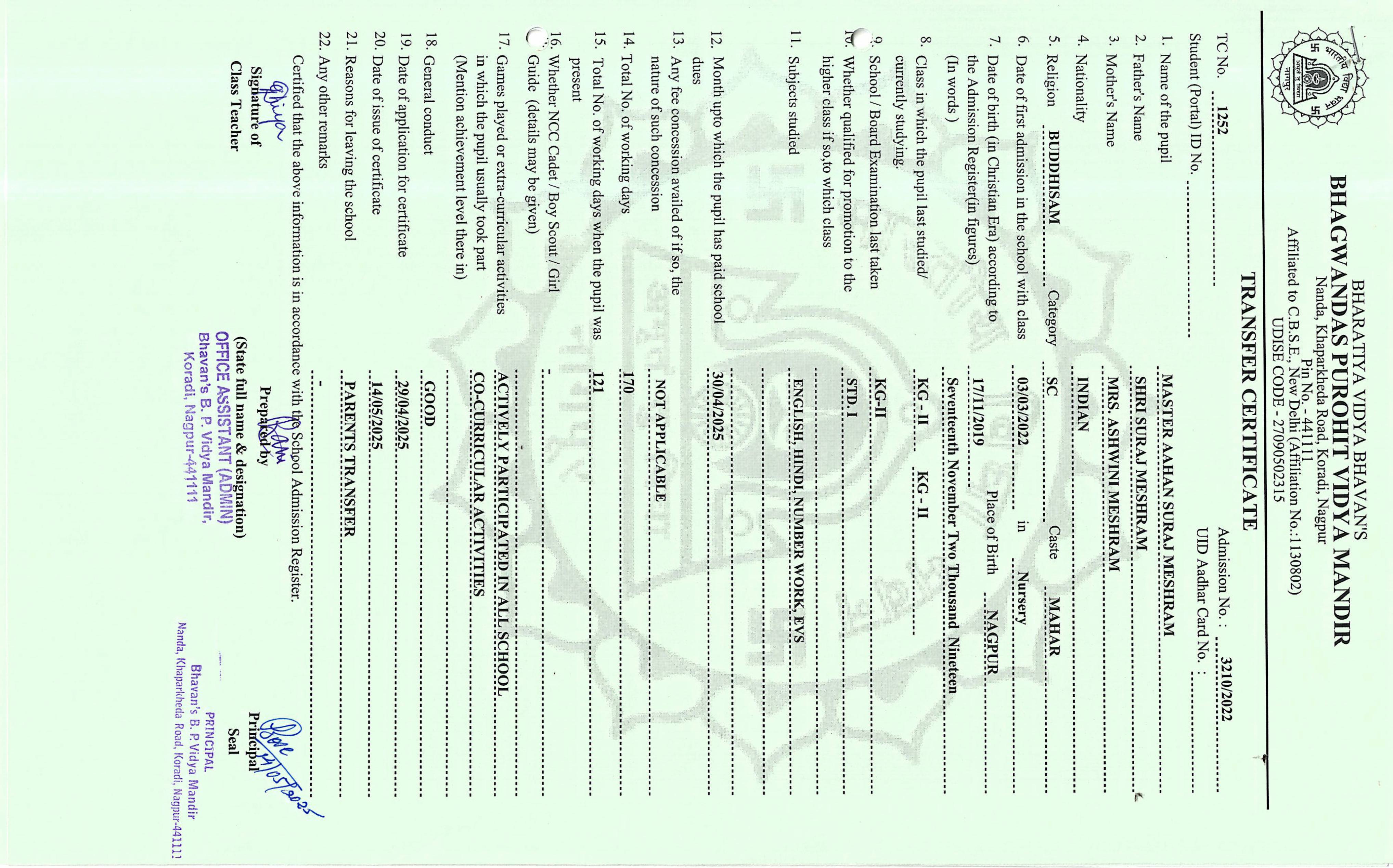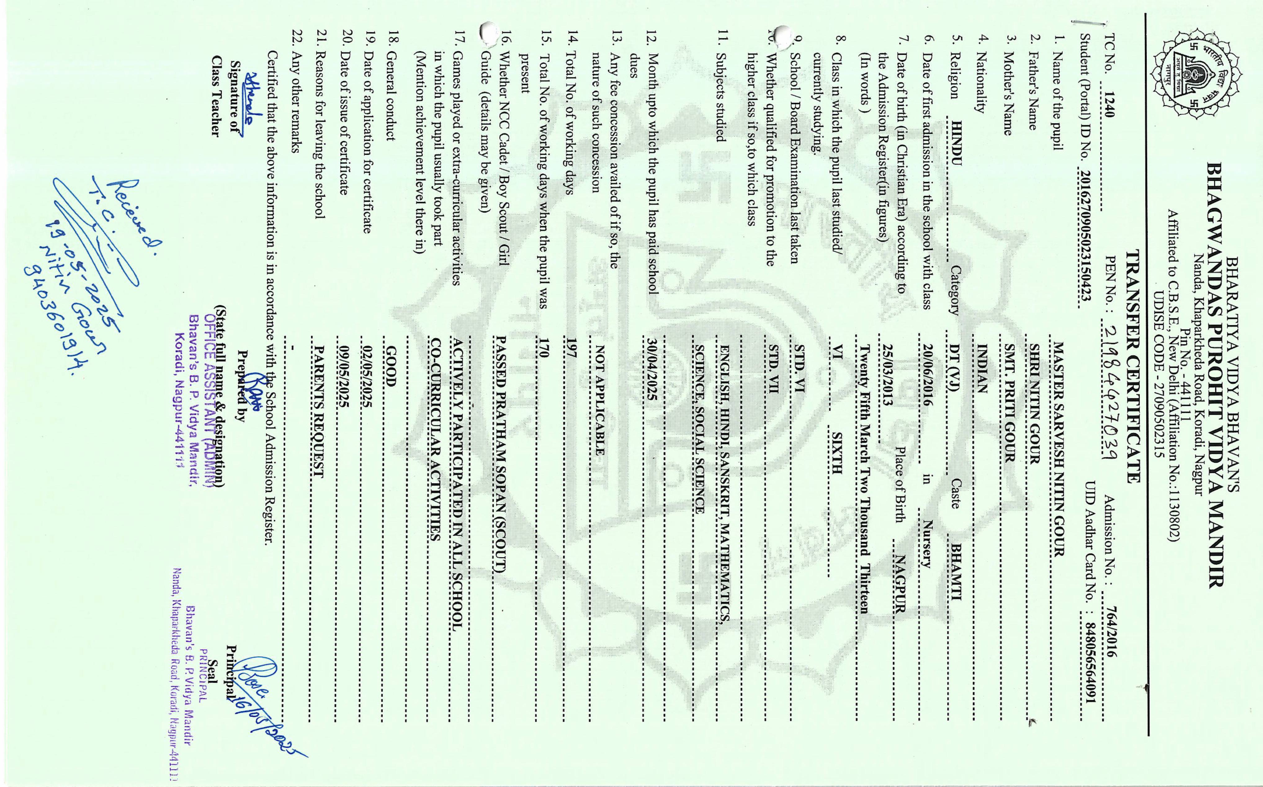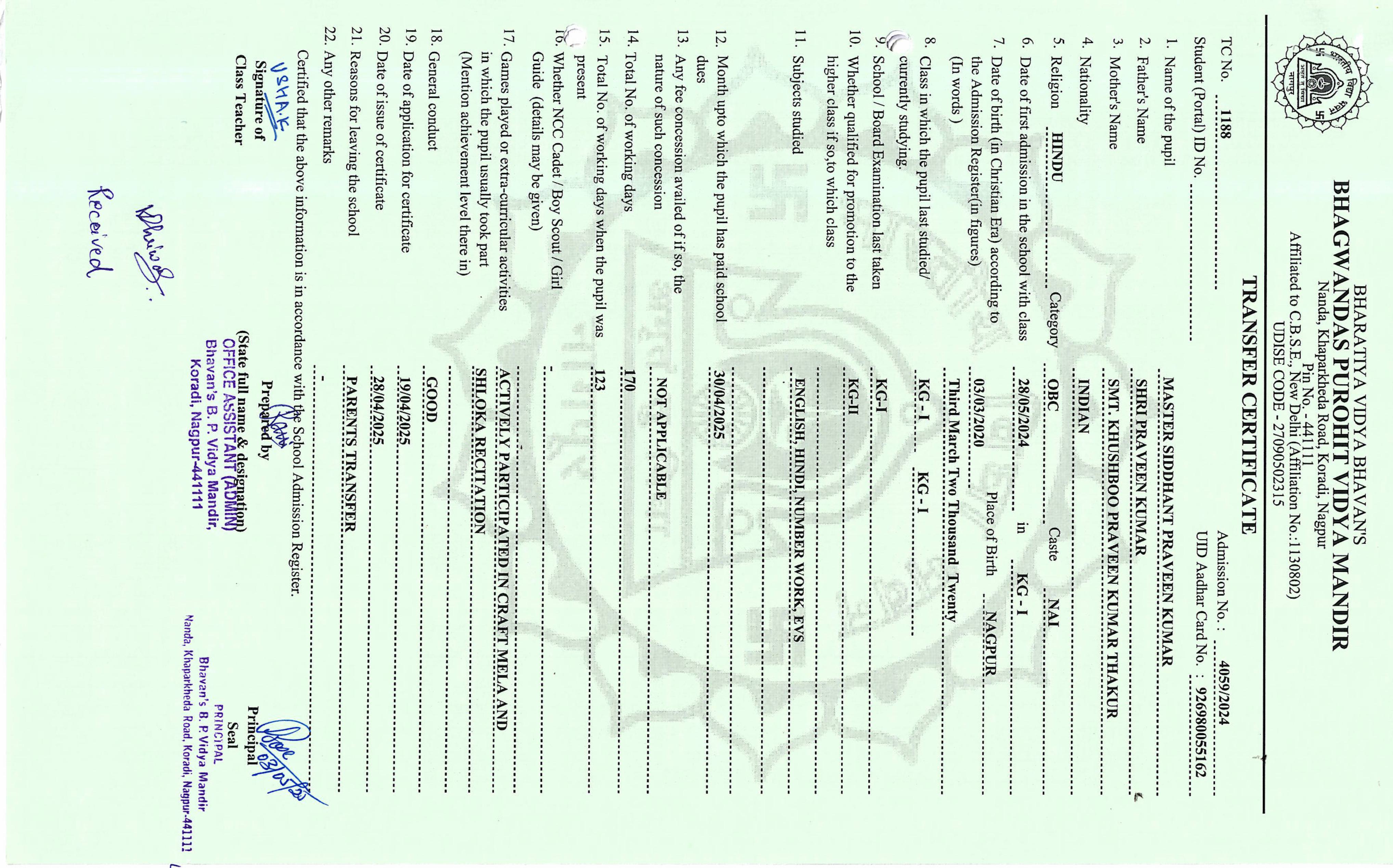 TC of students issued in the 2025