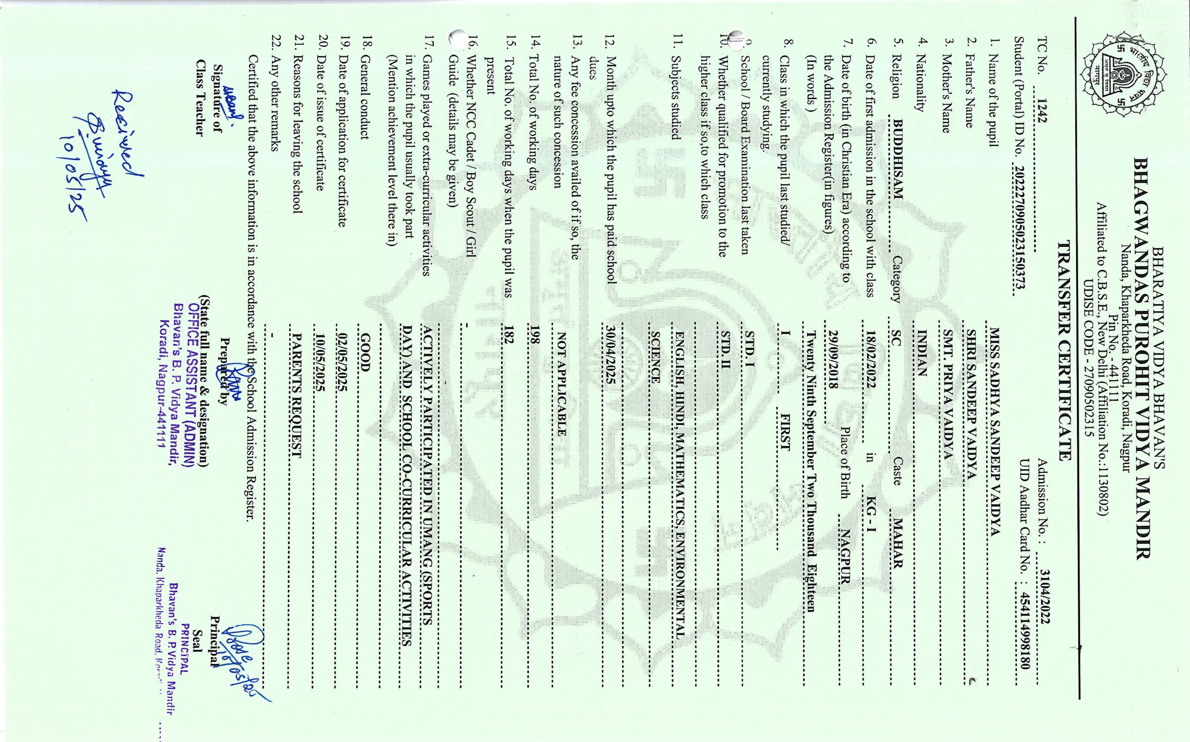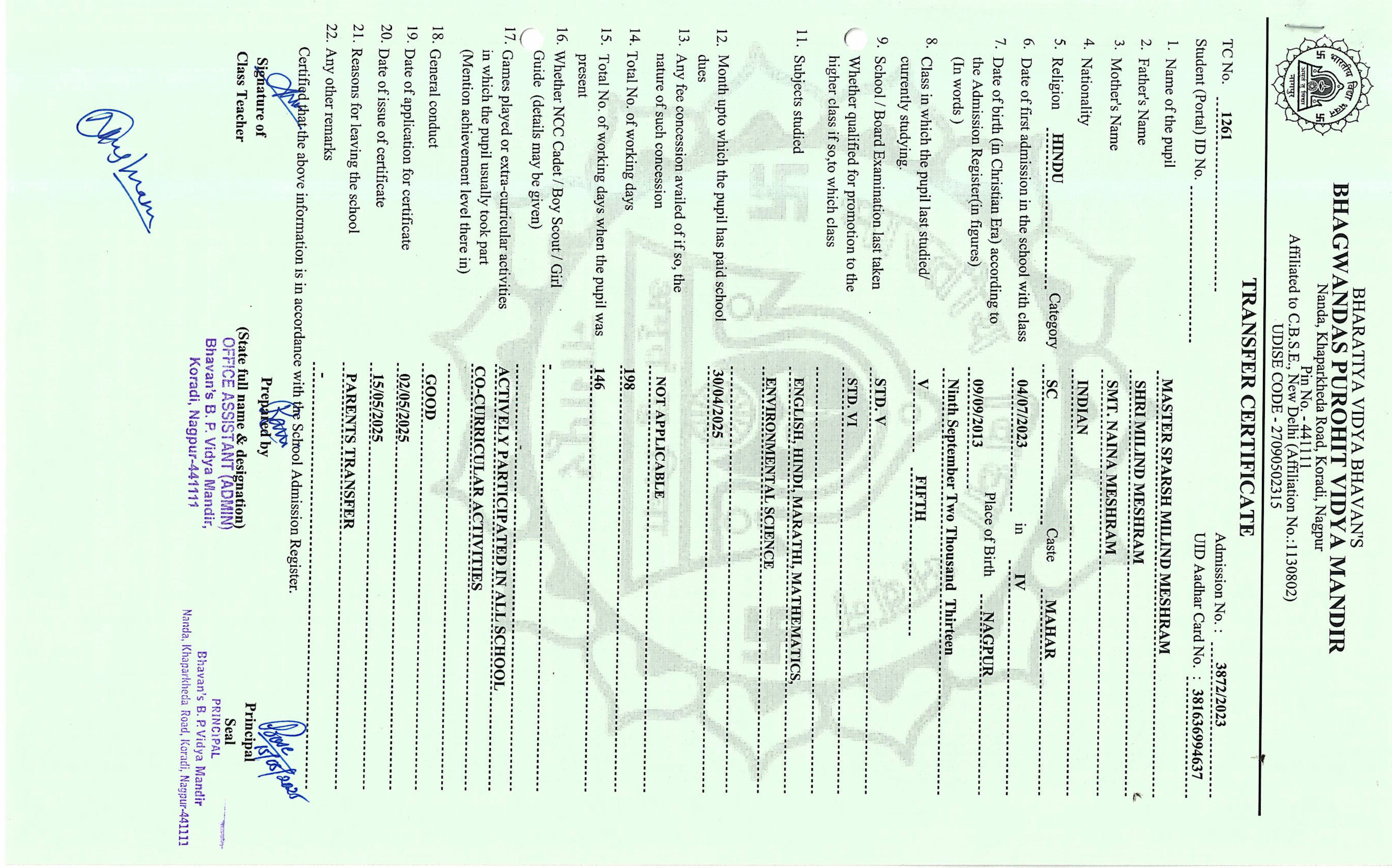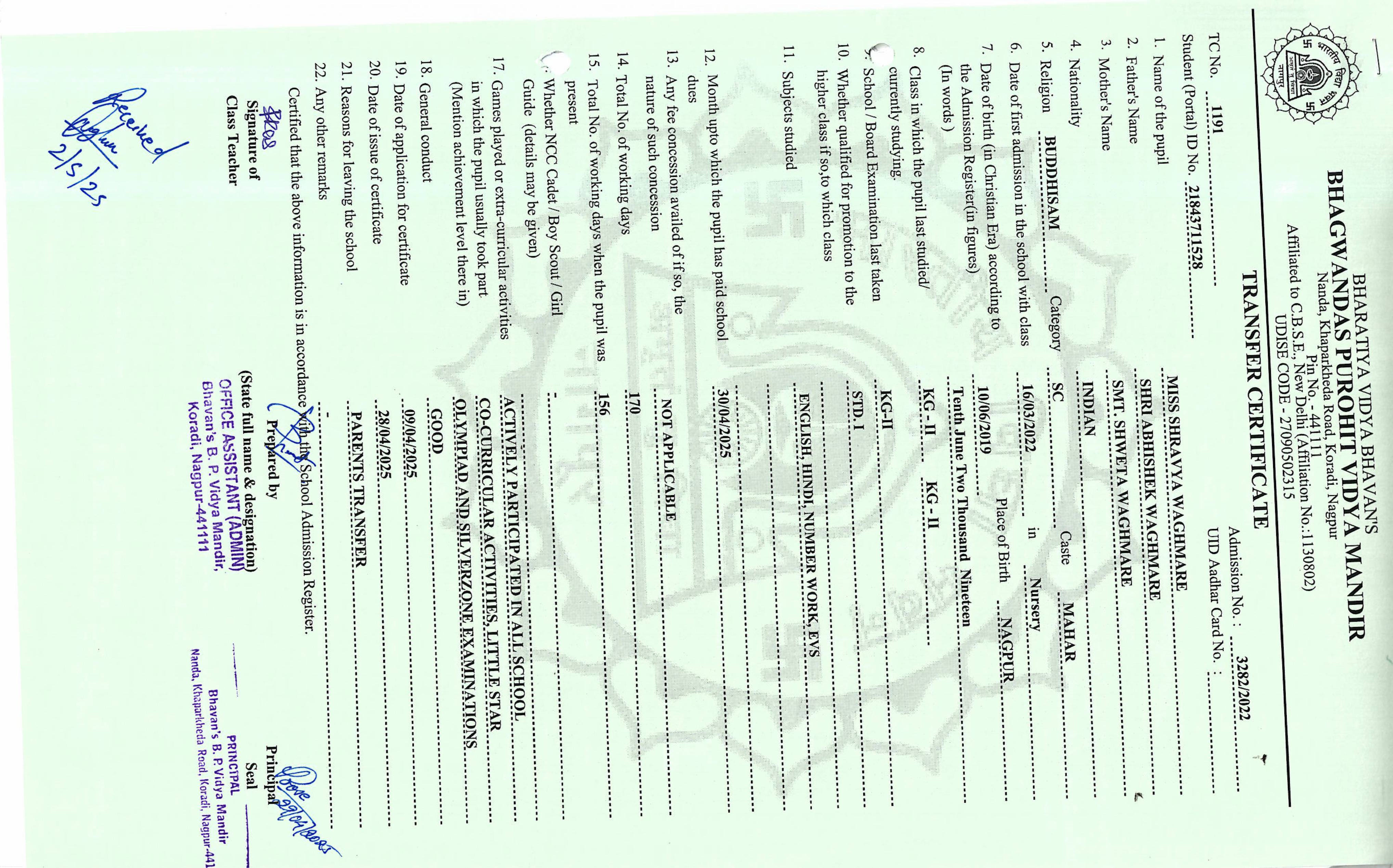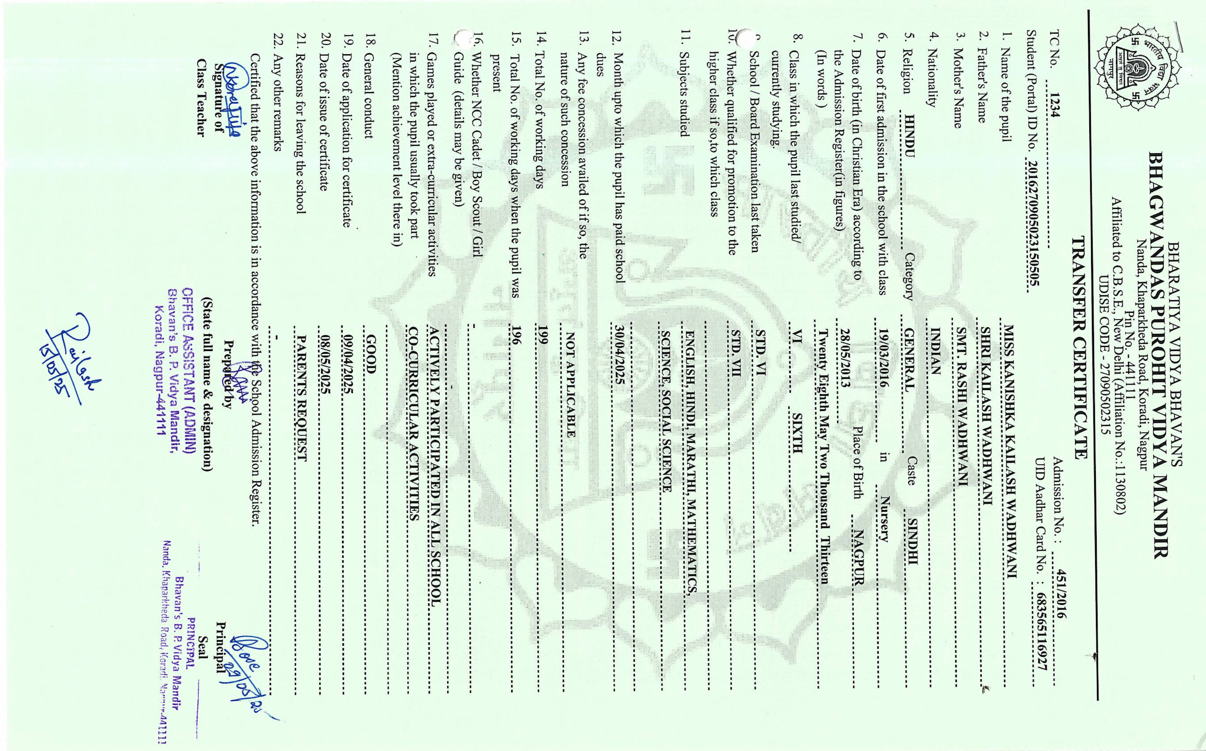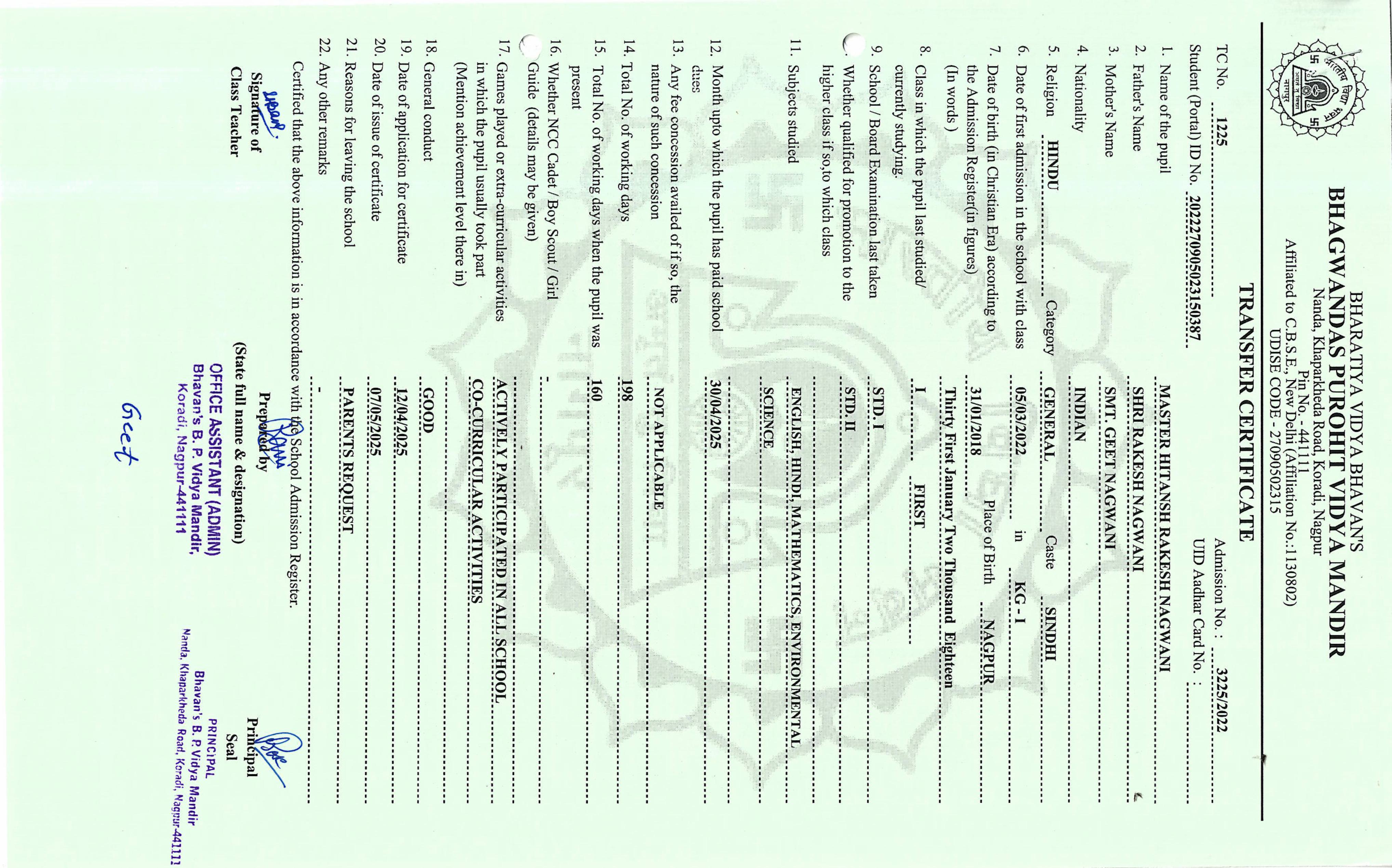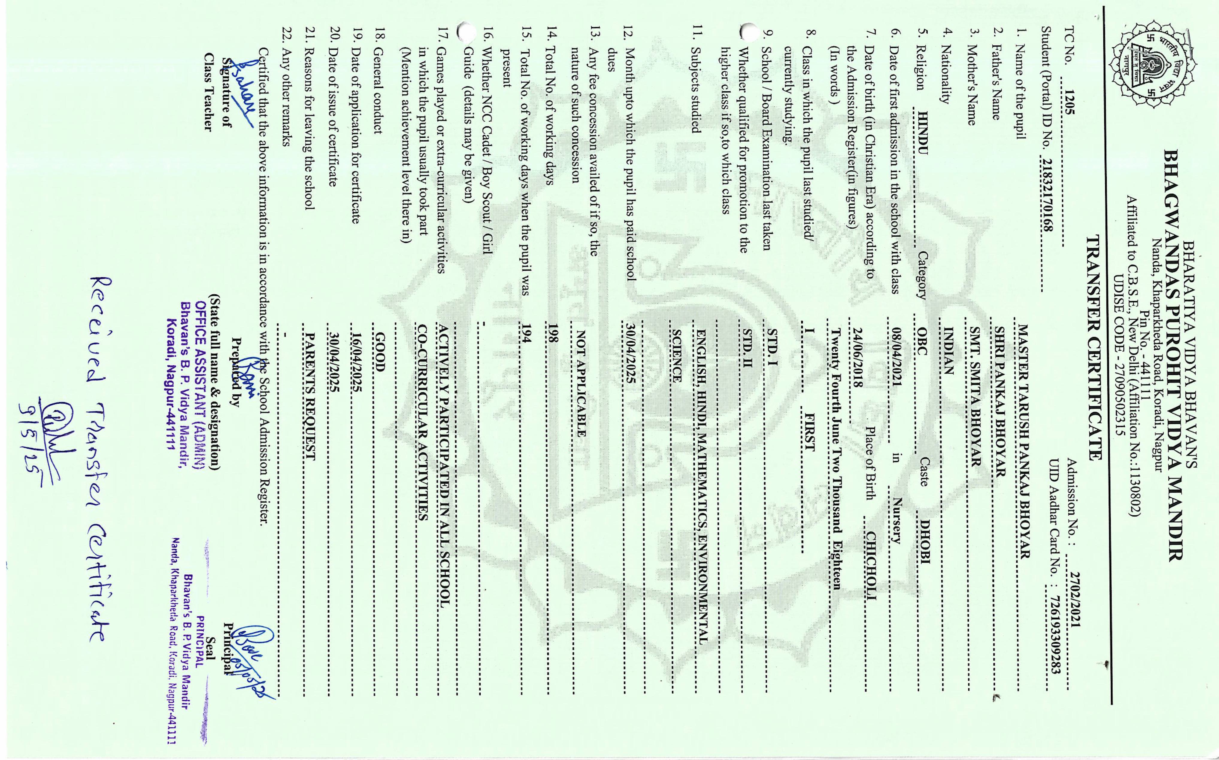 TC of students issued in the 2025
