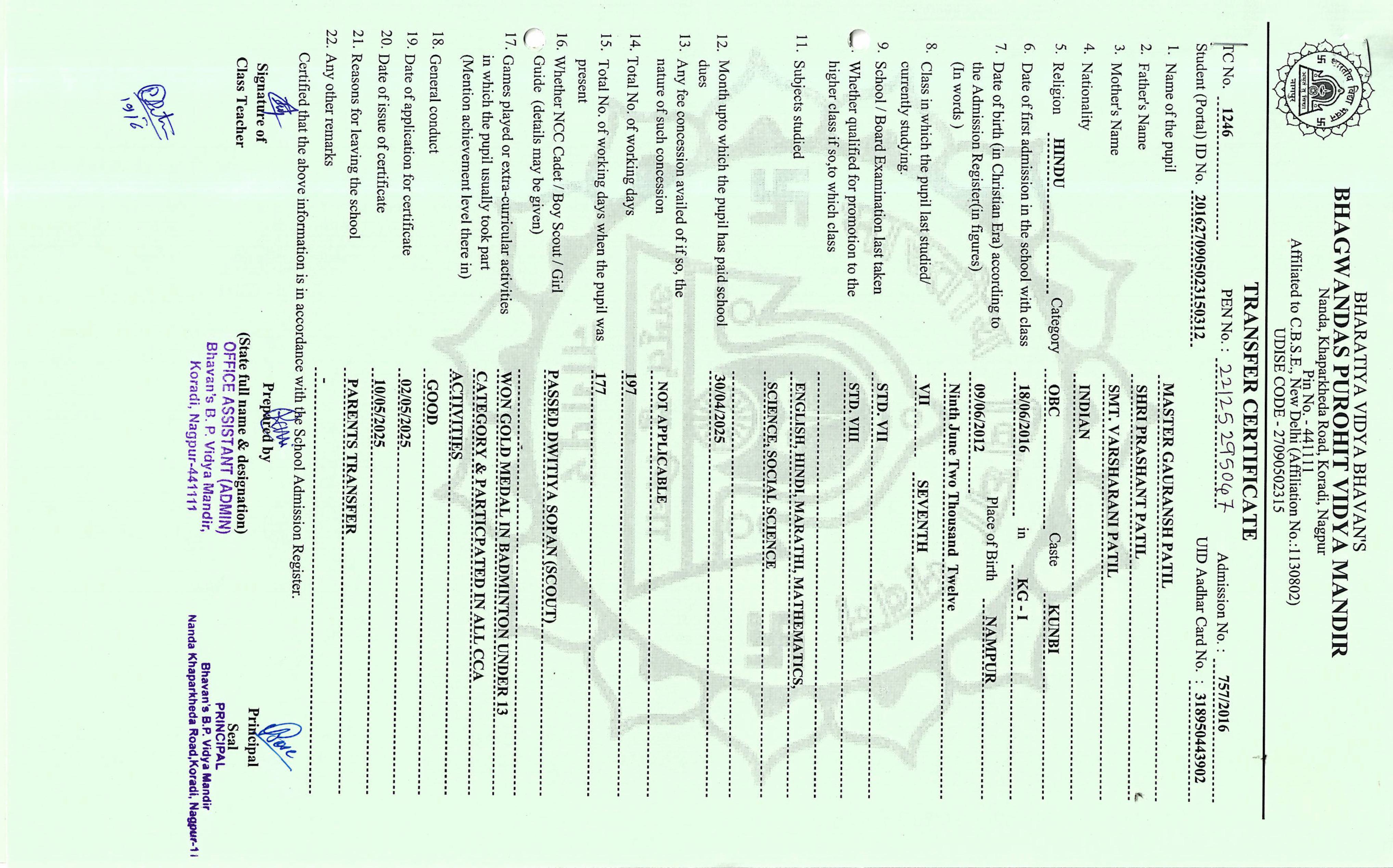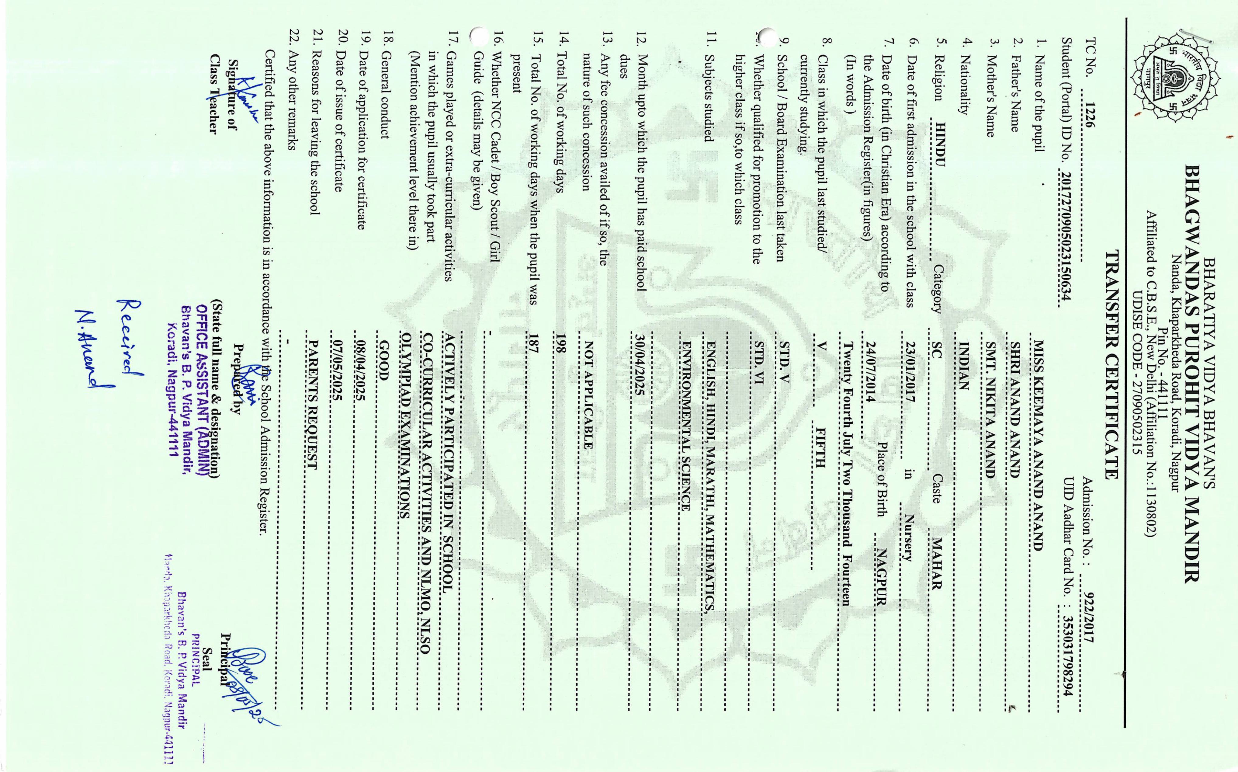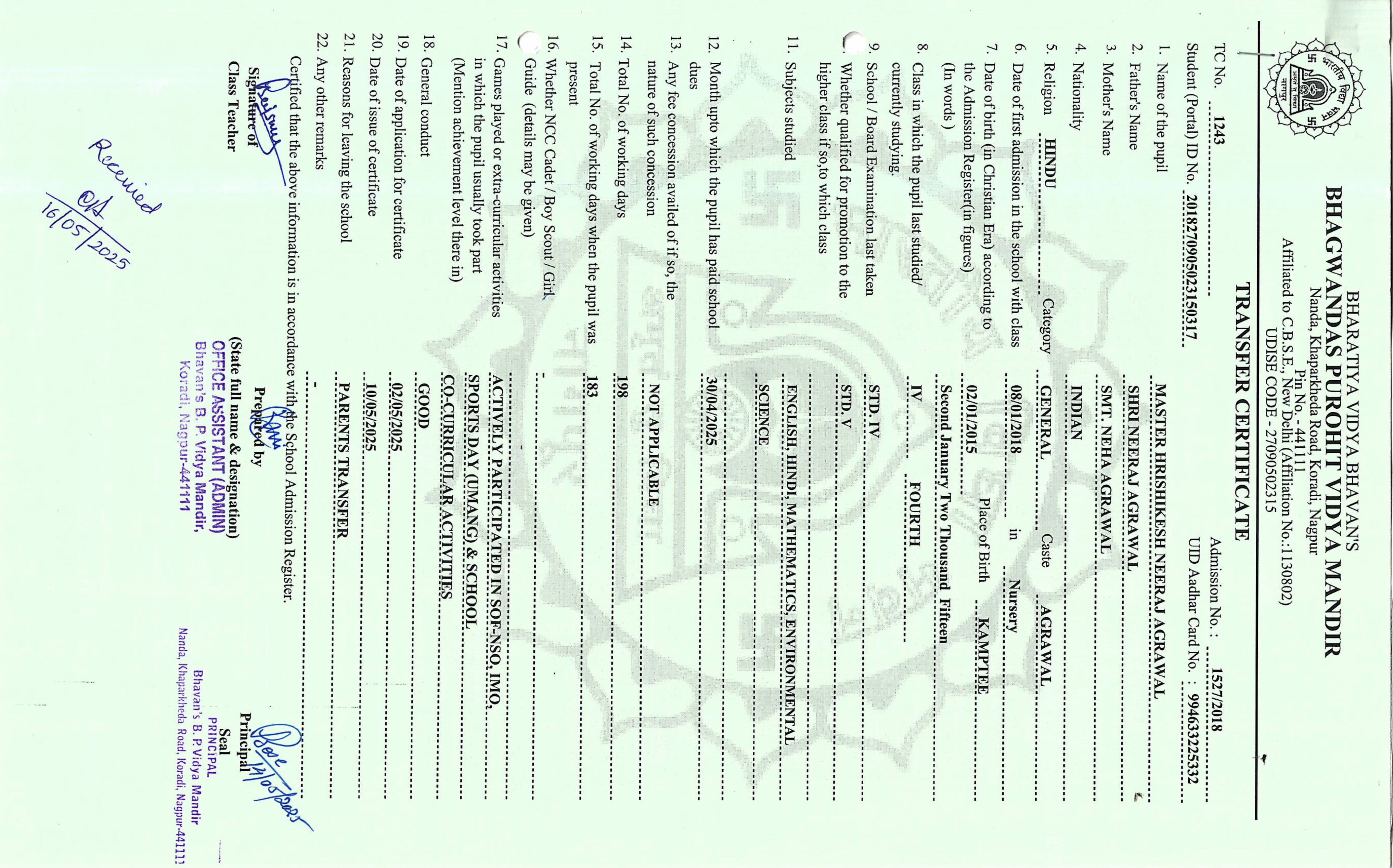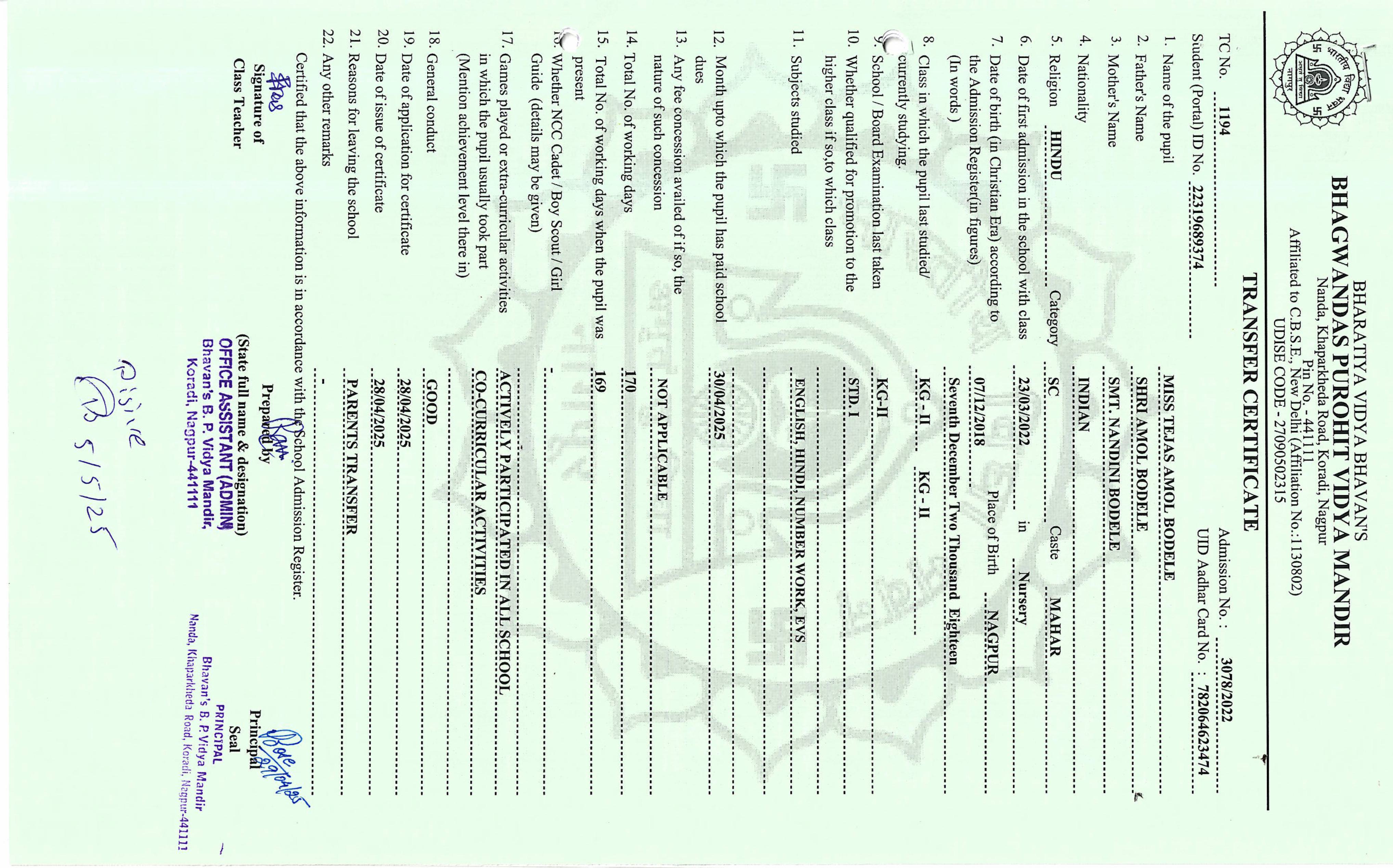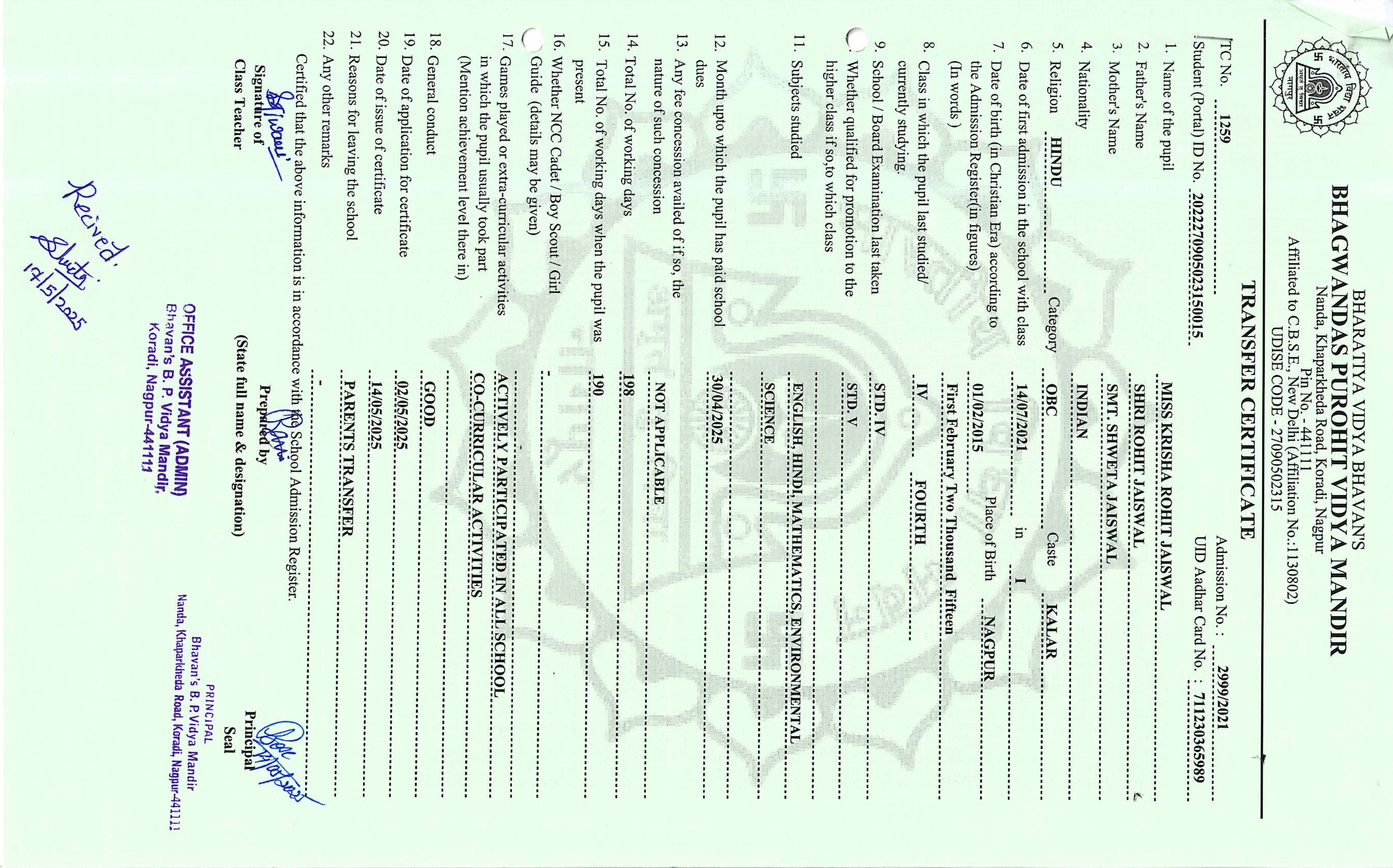 TC of students issued in the 2025