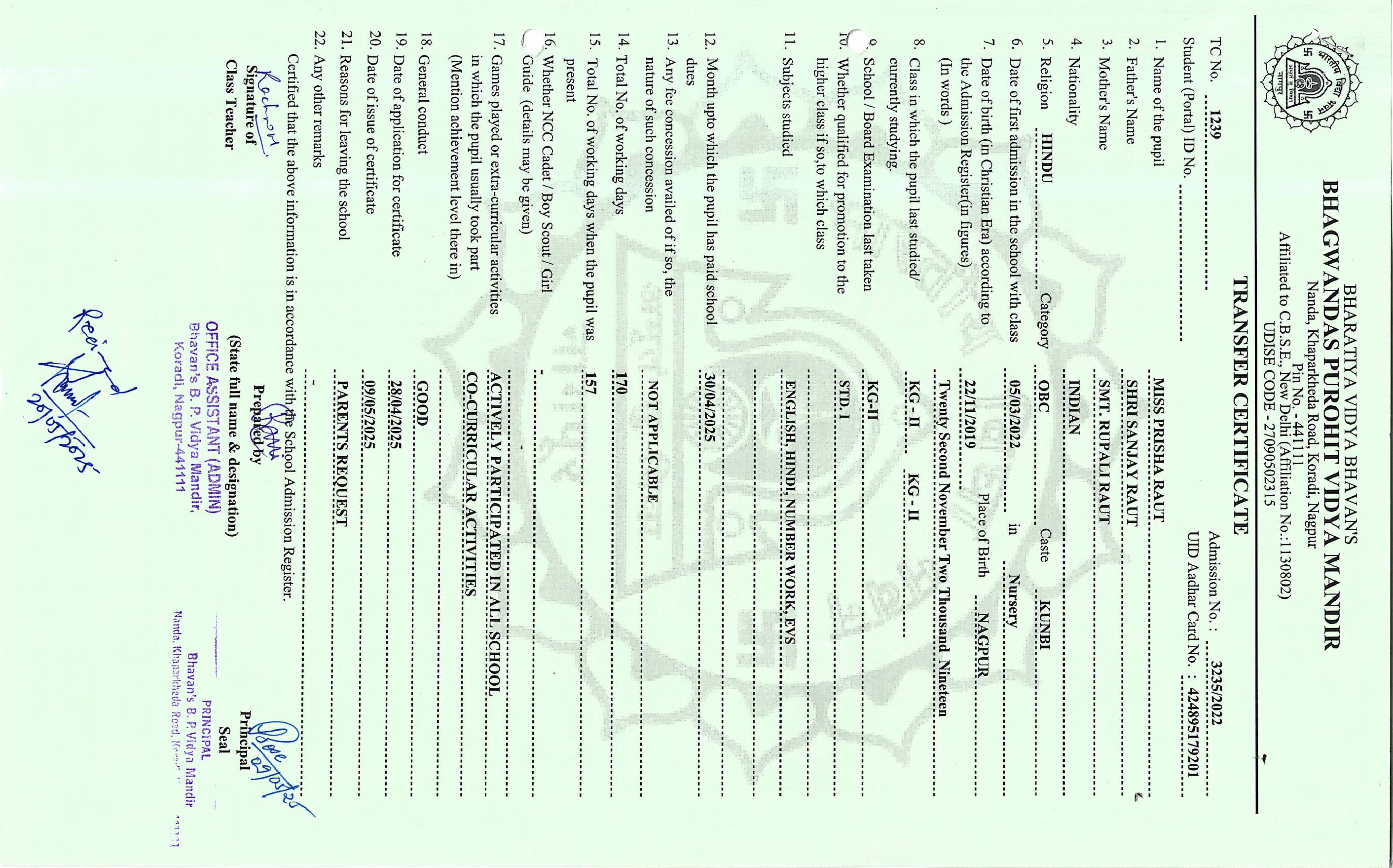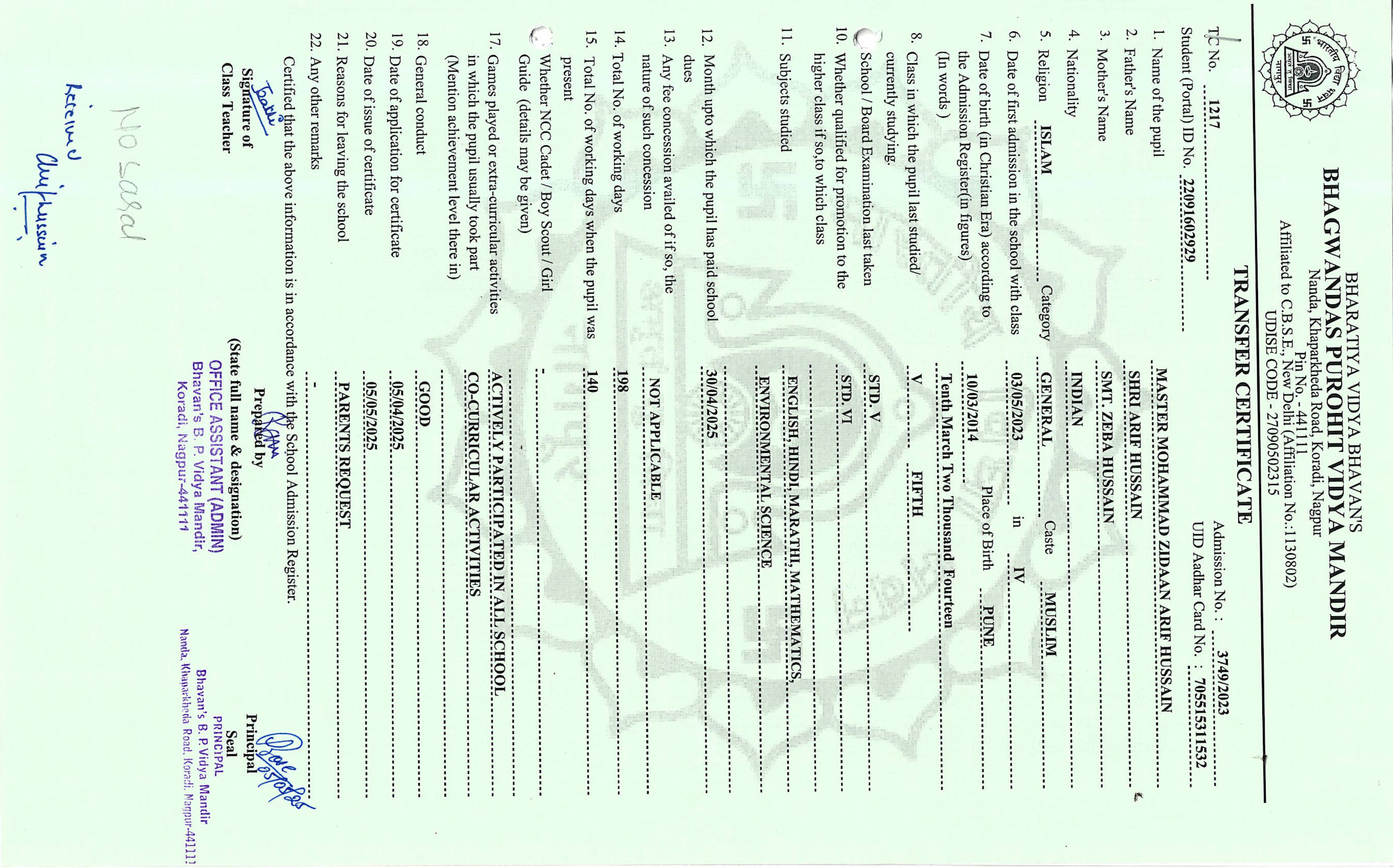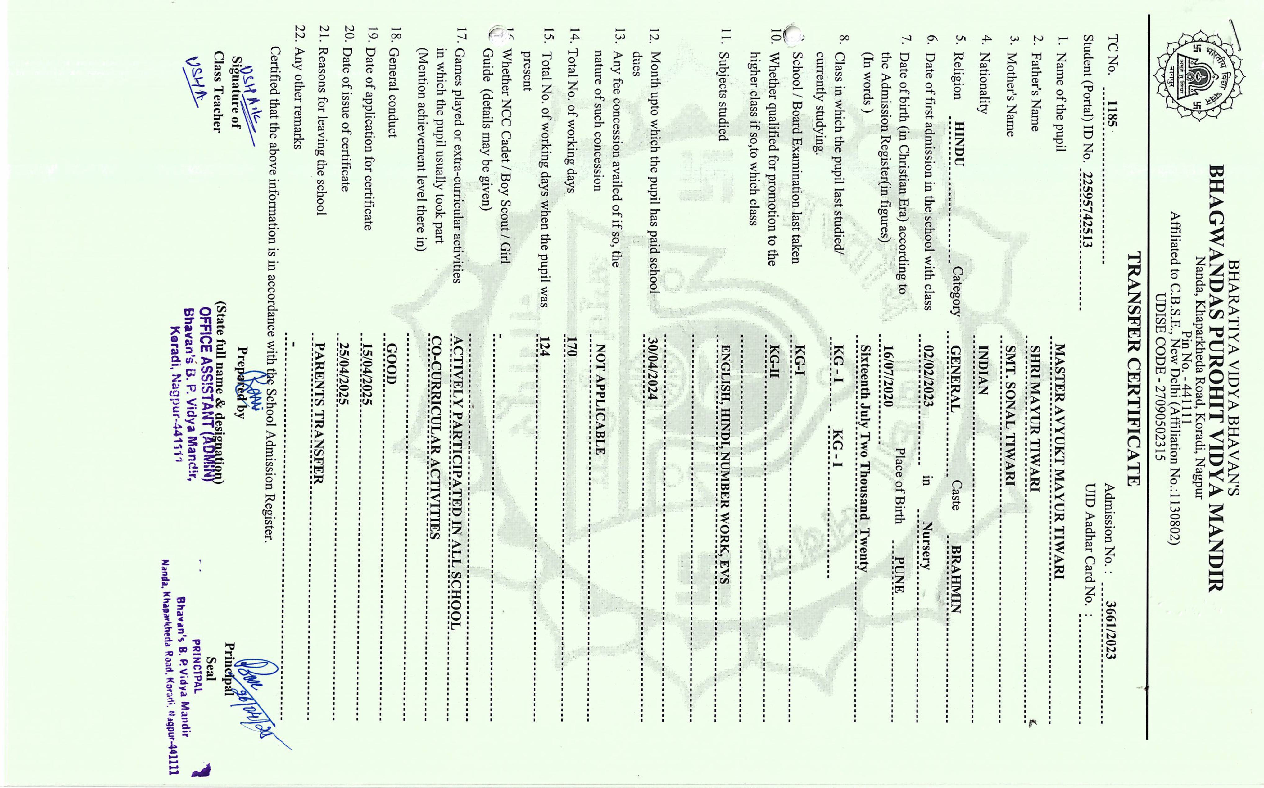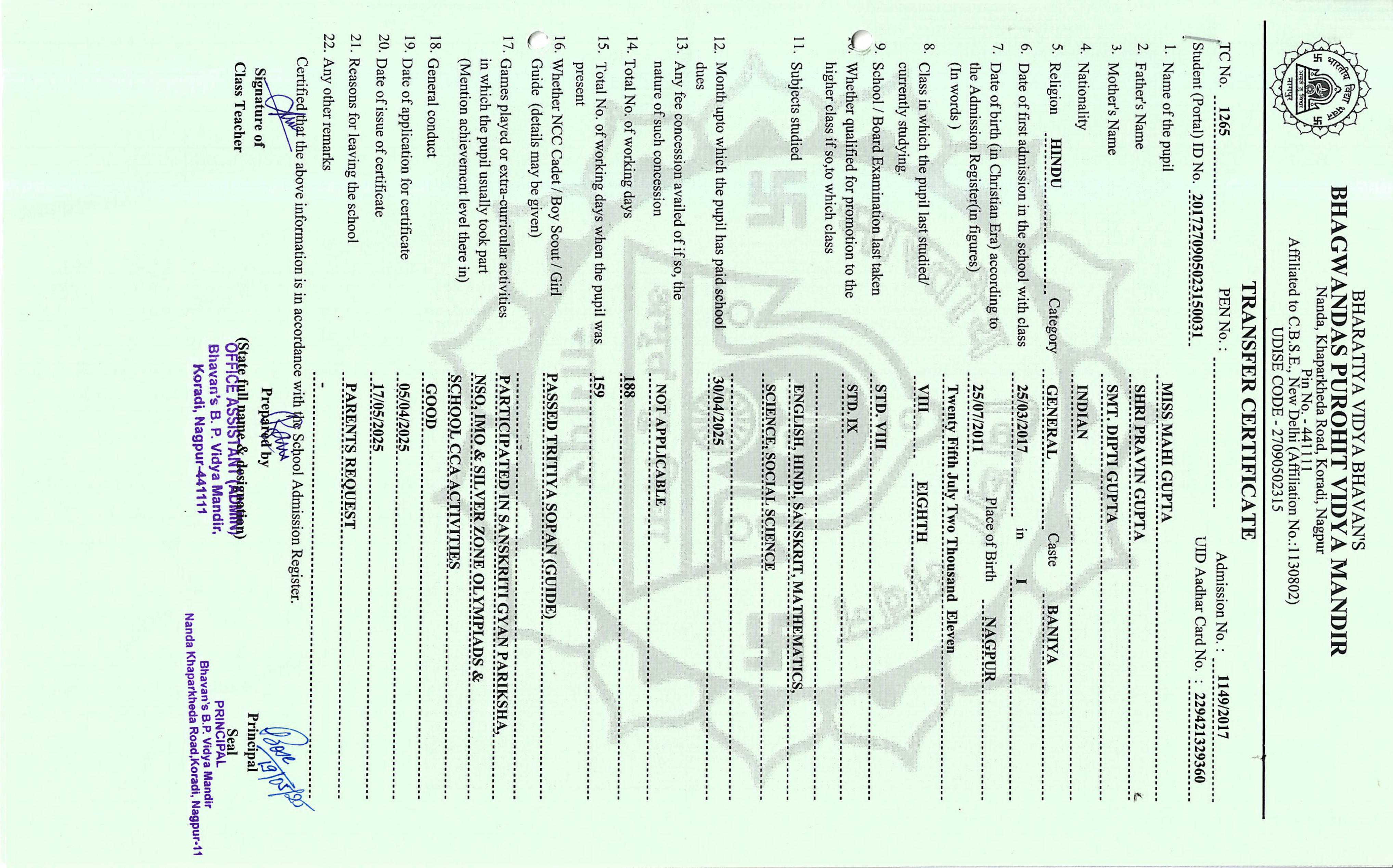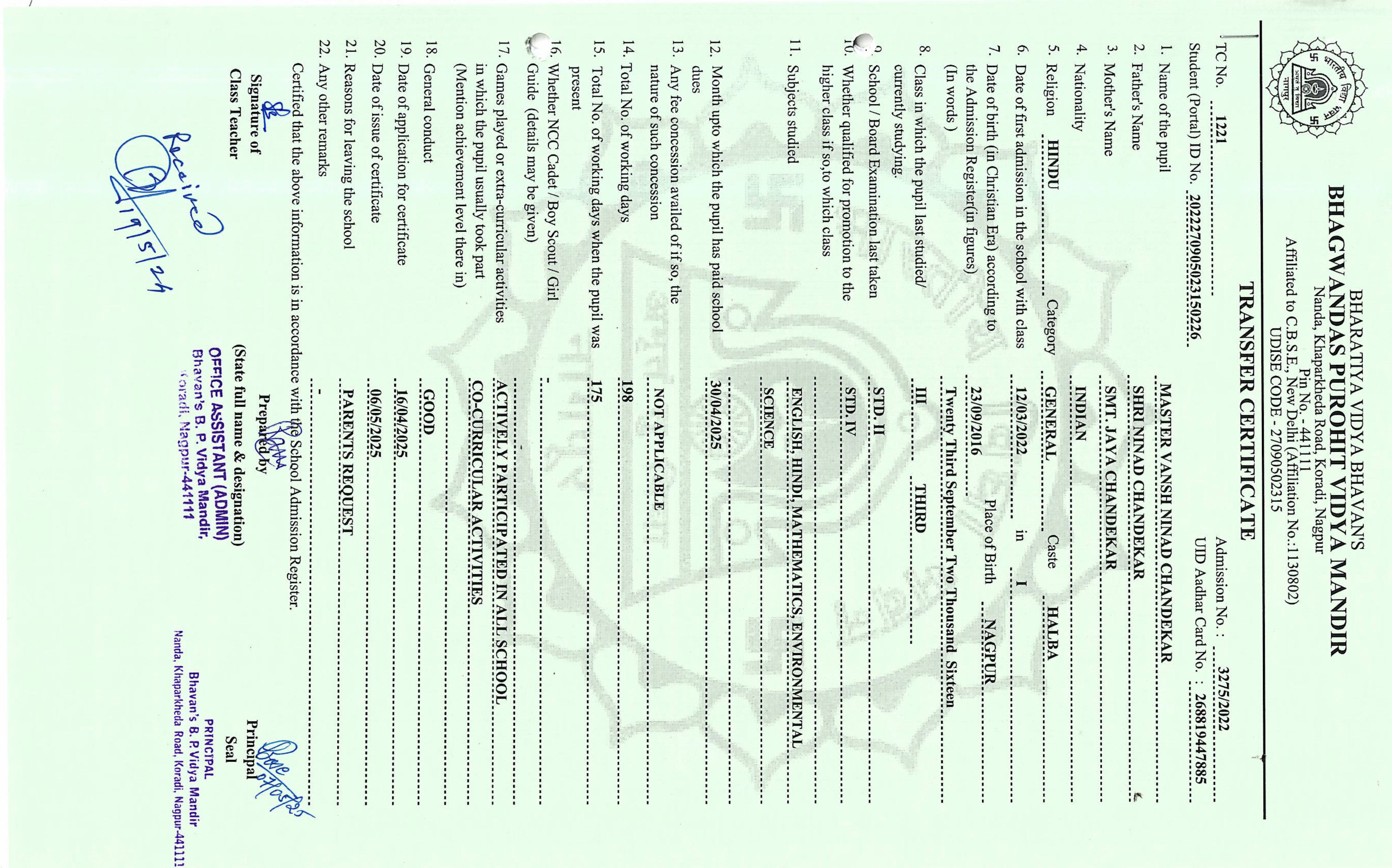 TC of students issued in the 2025