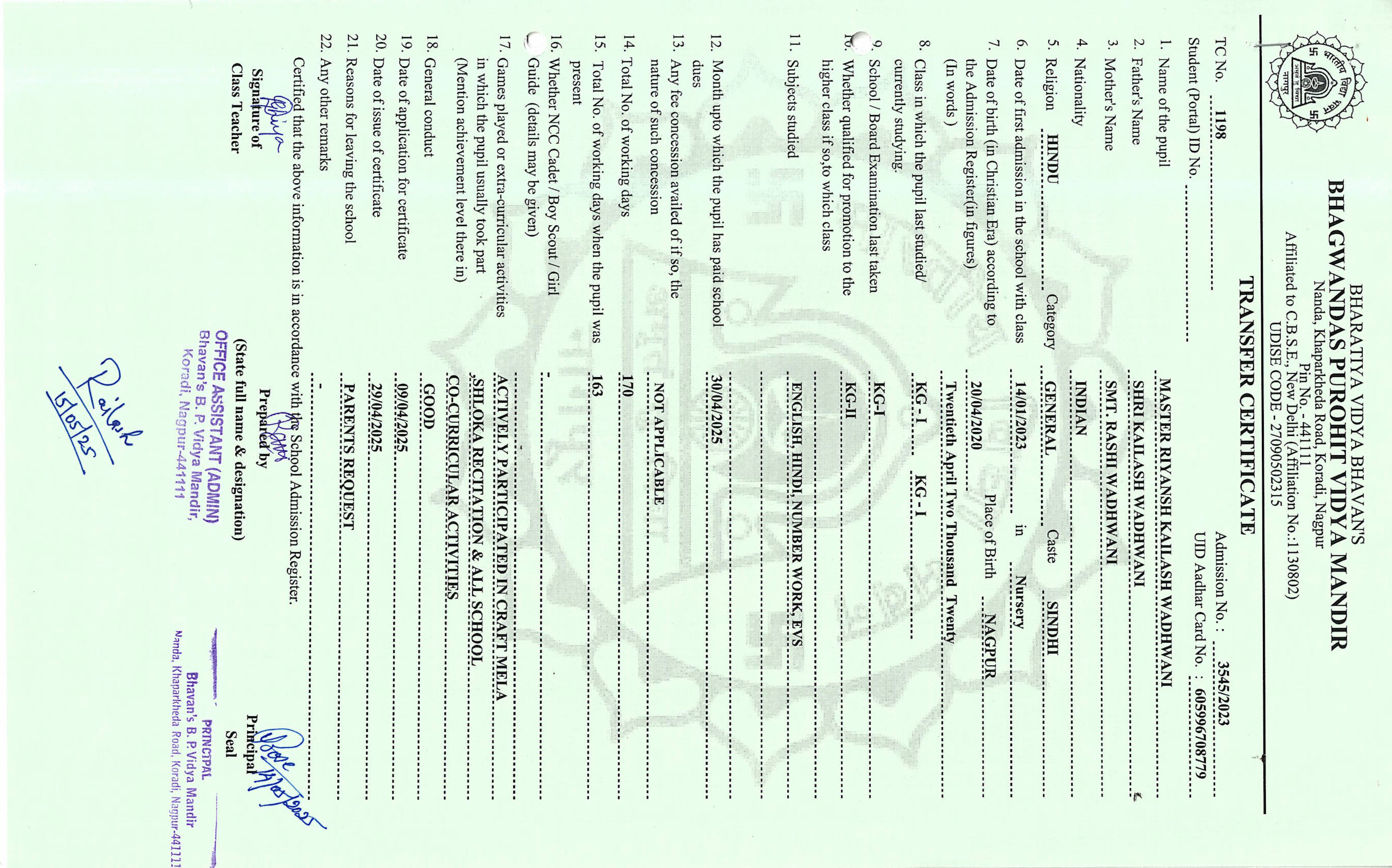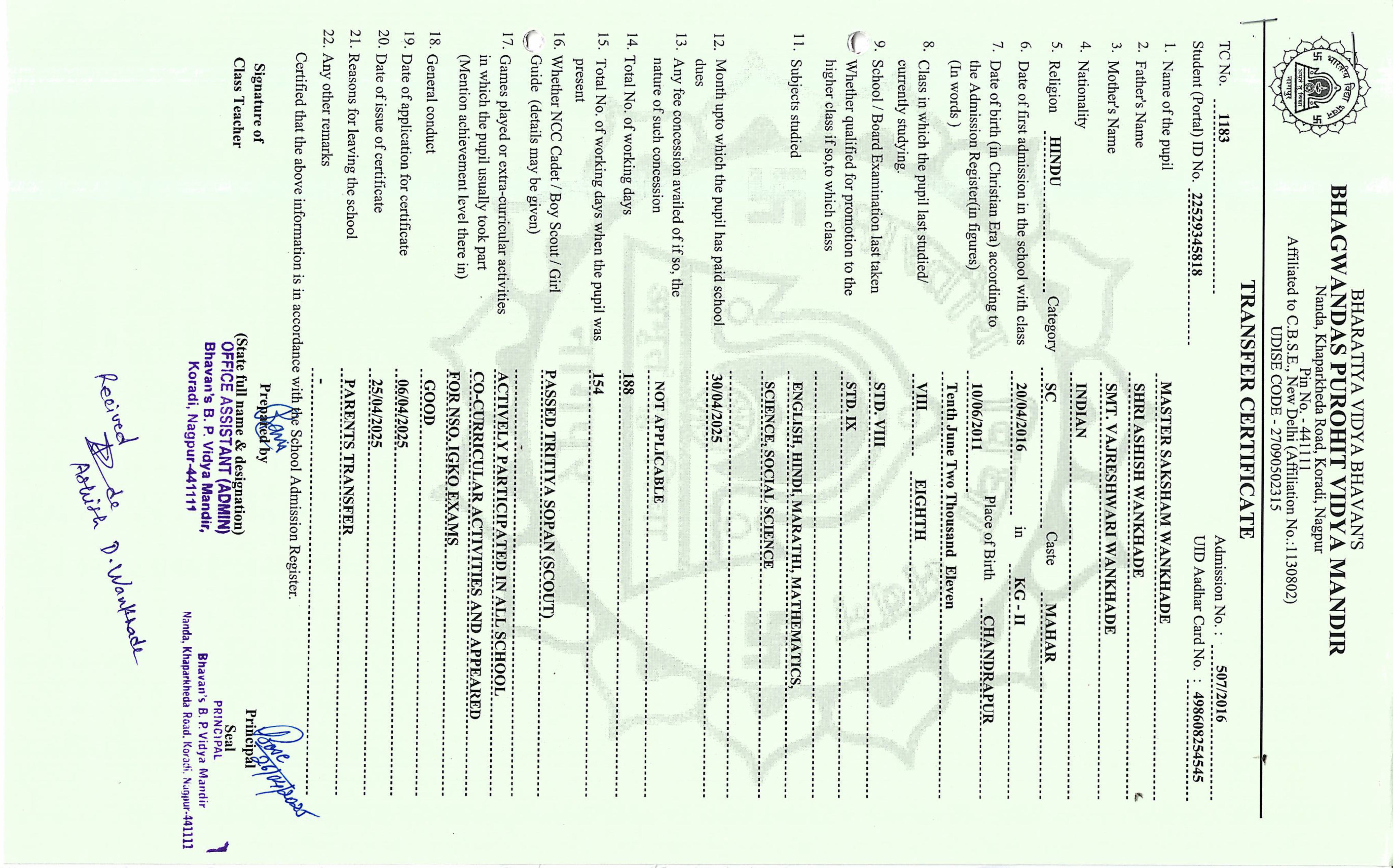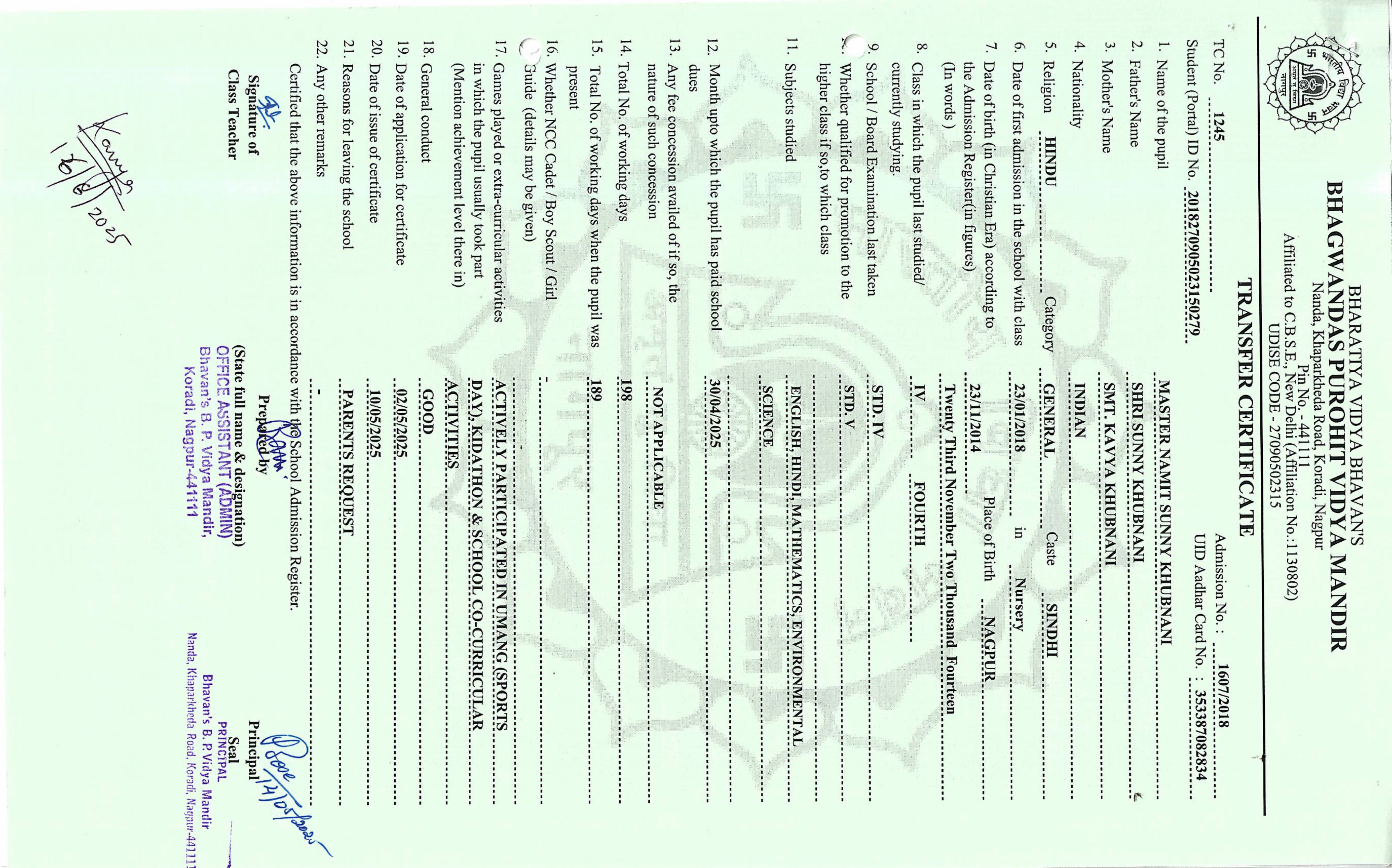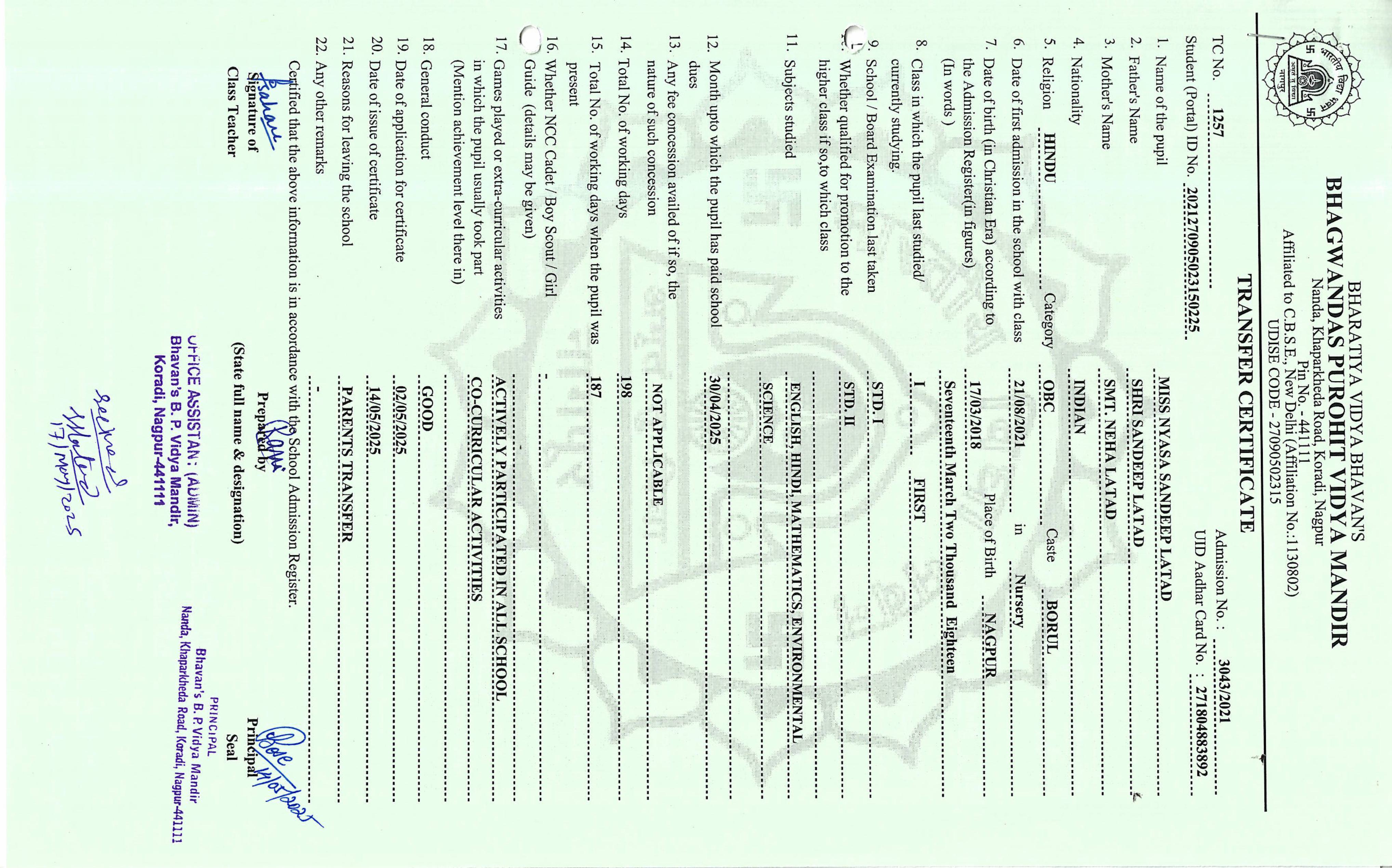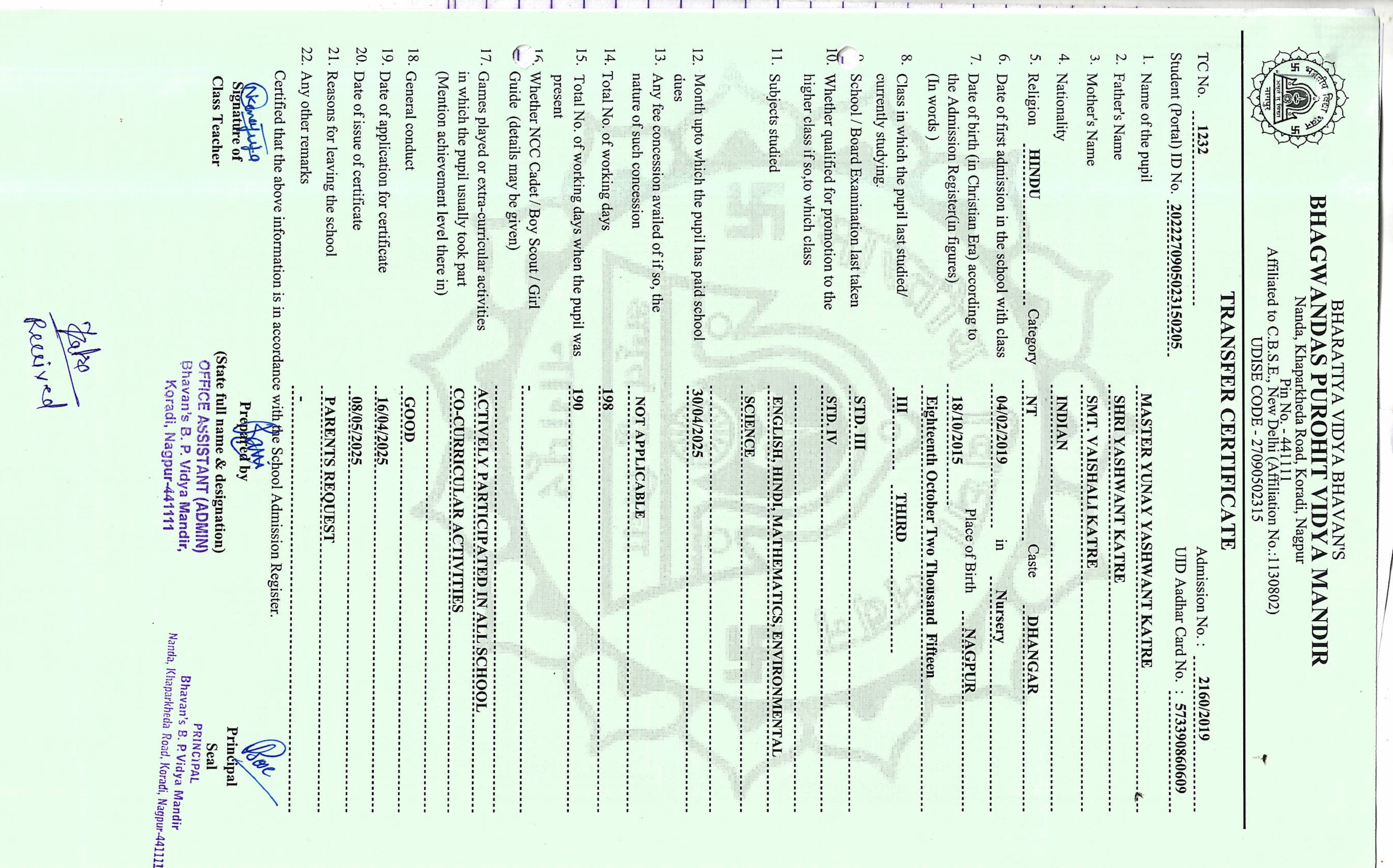 TC of students issued in the 2025