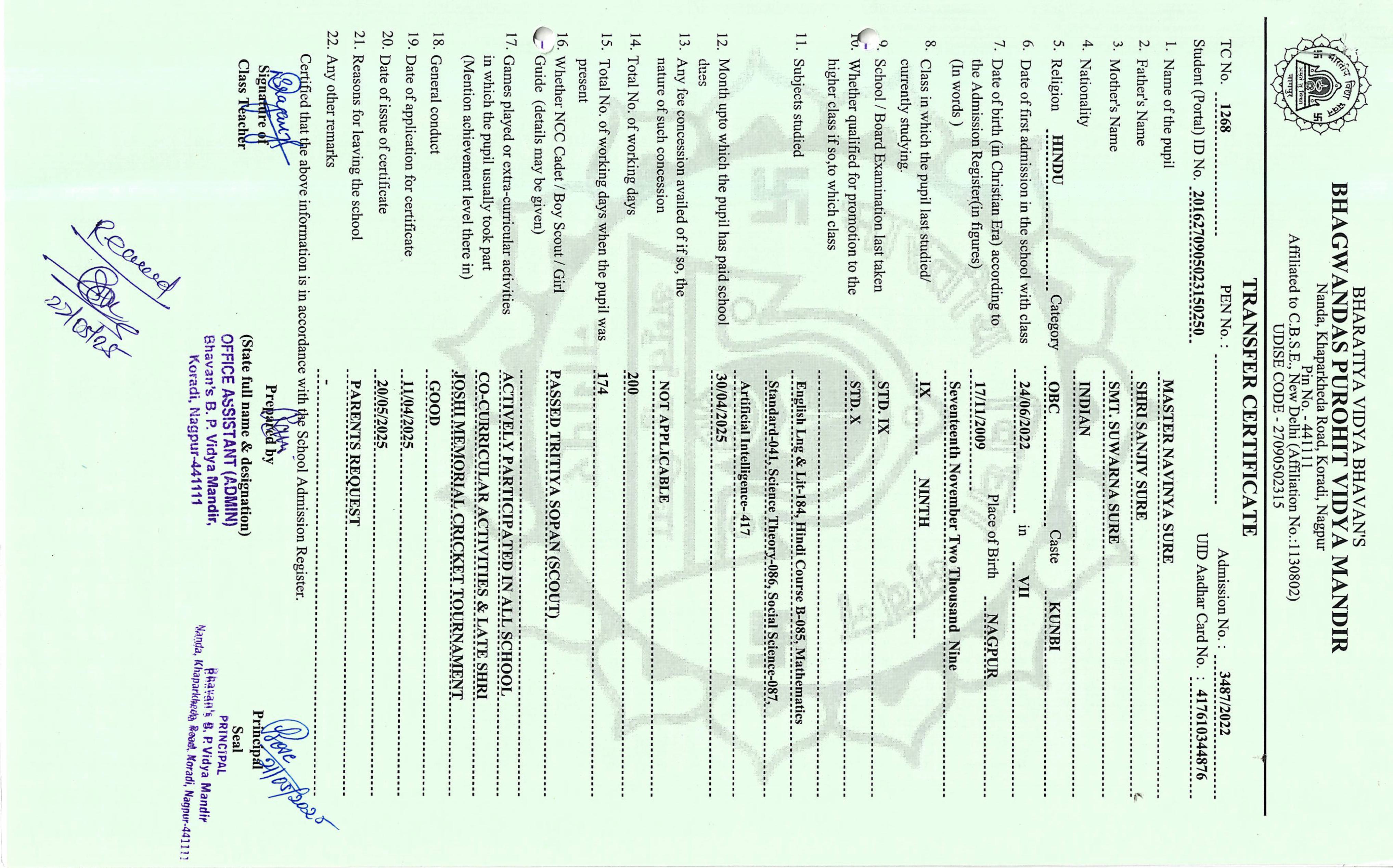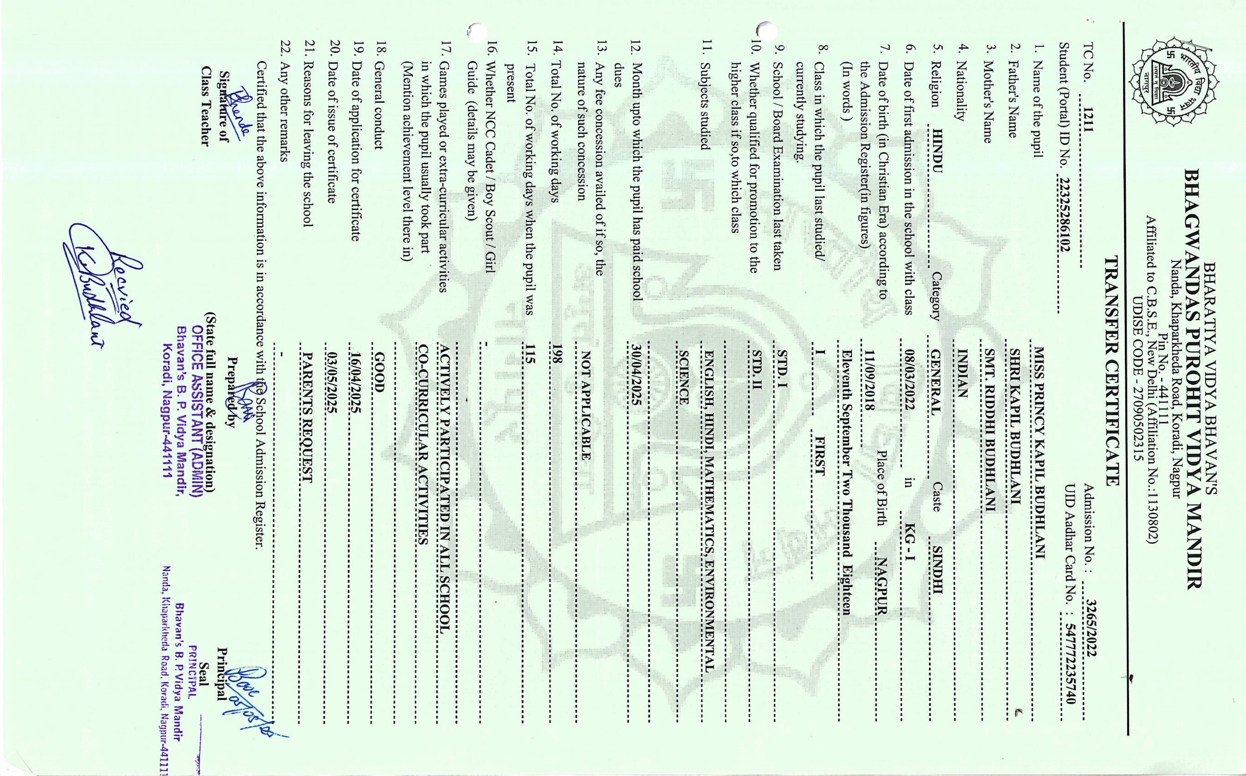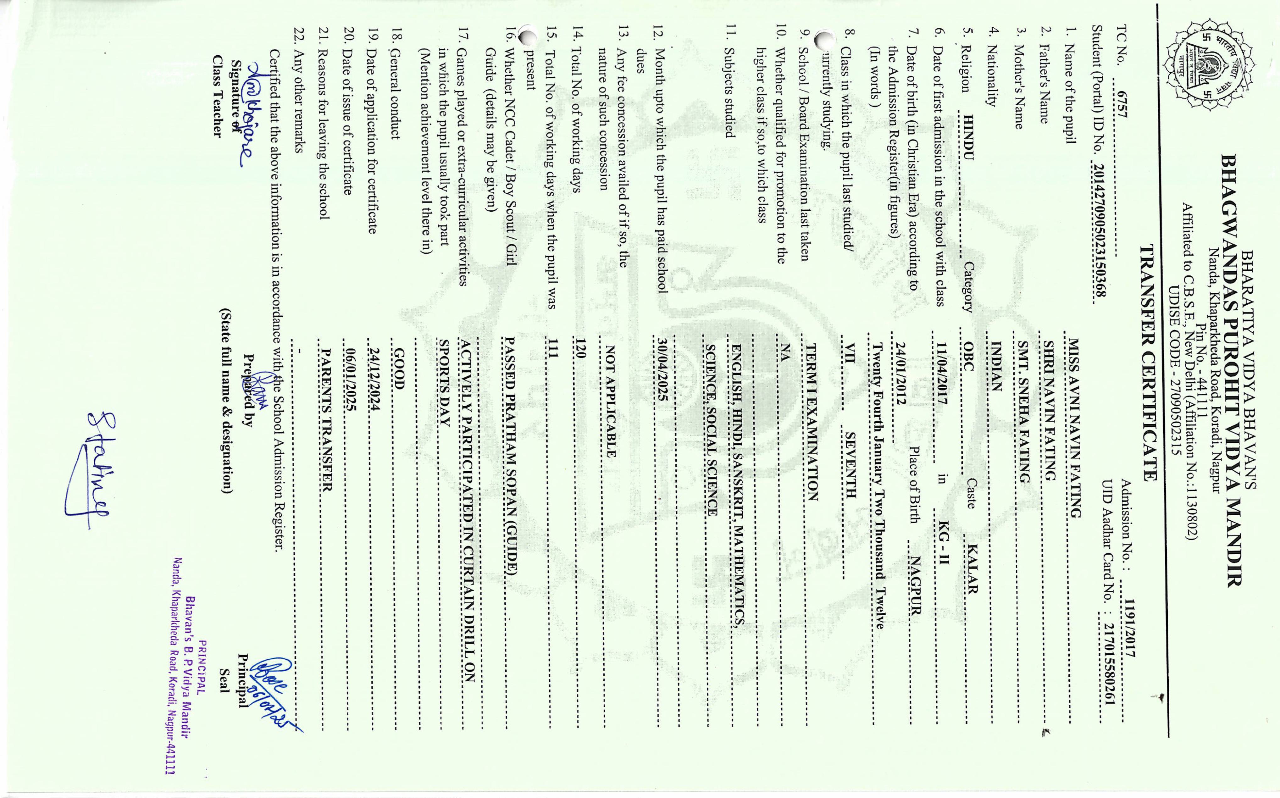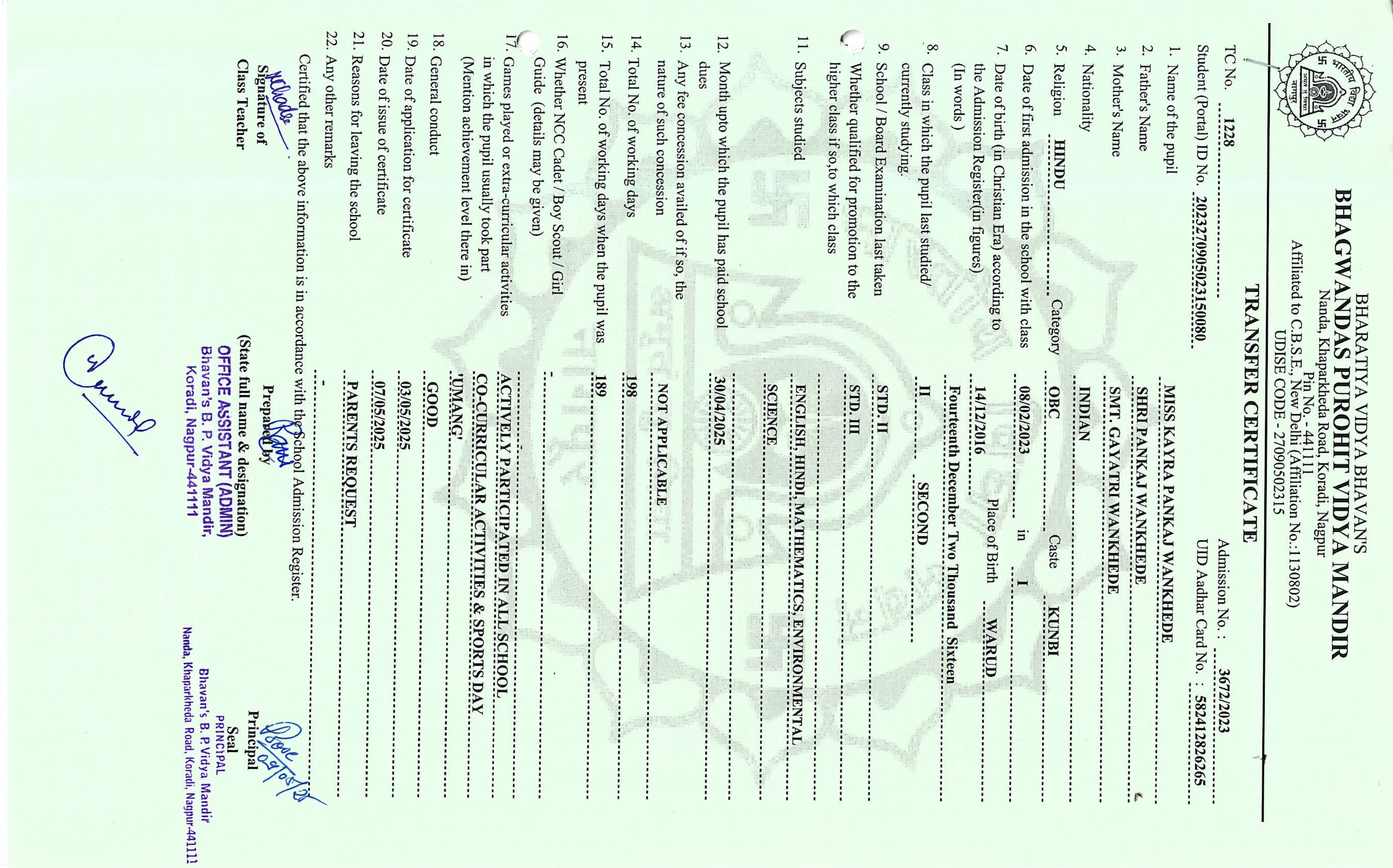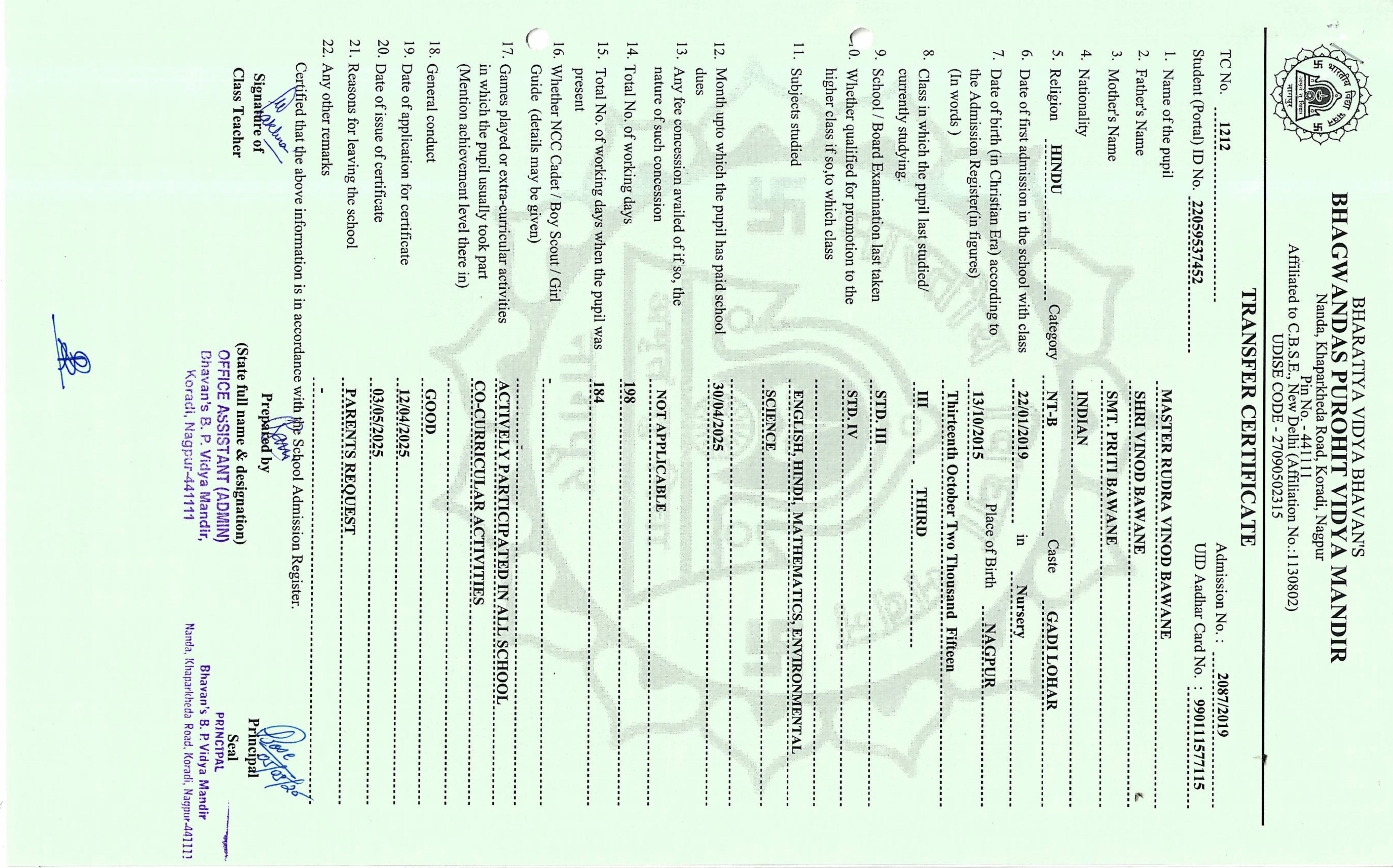 TC of students issued in the 2025