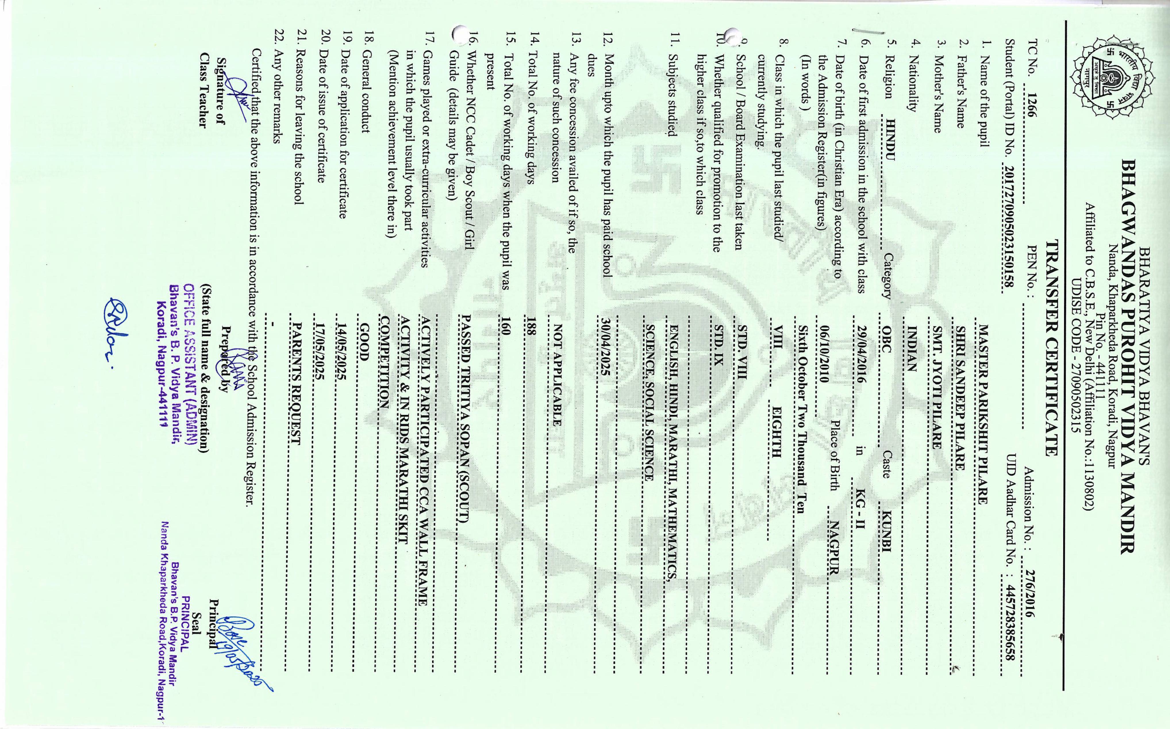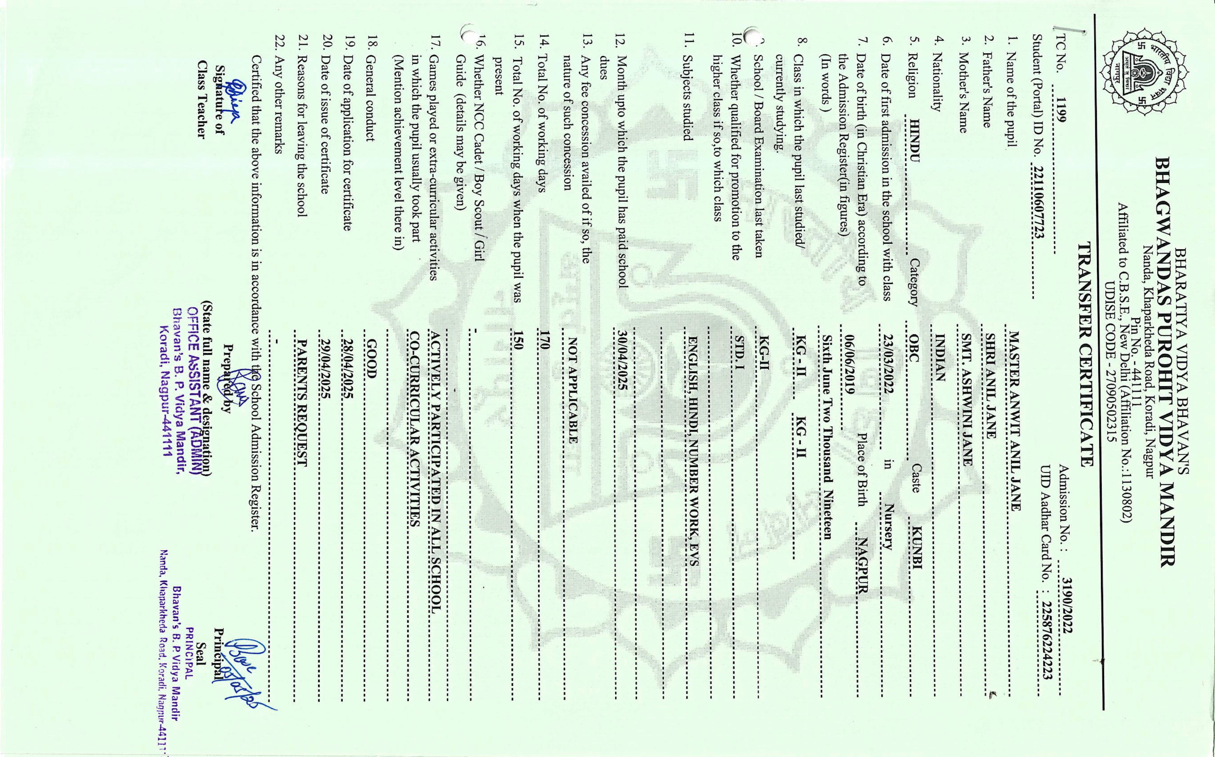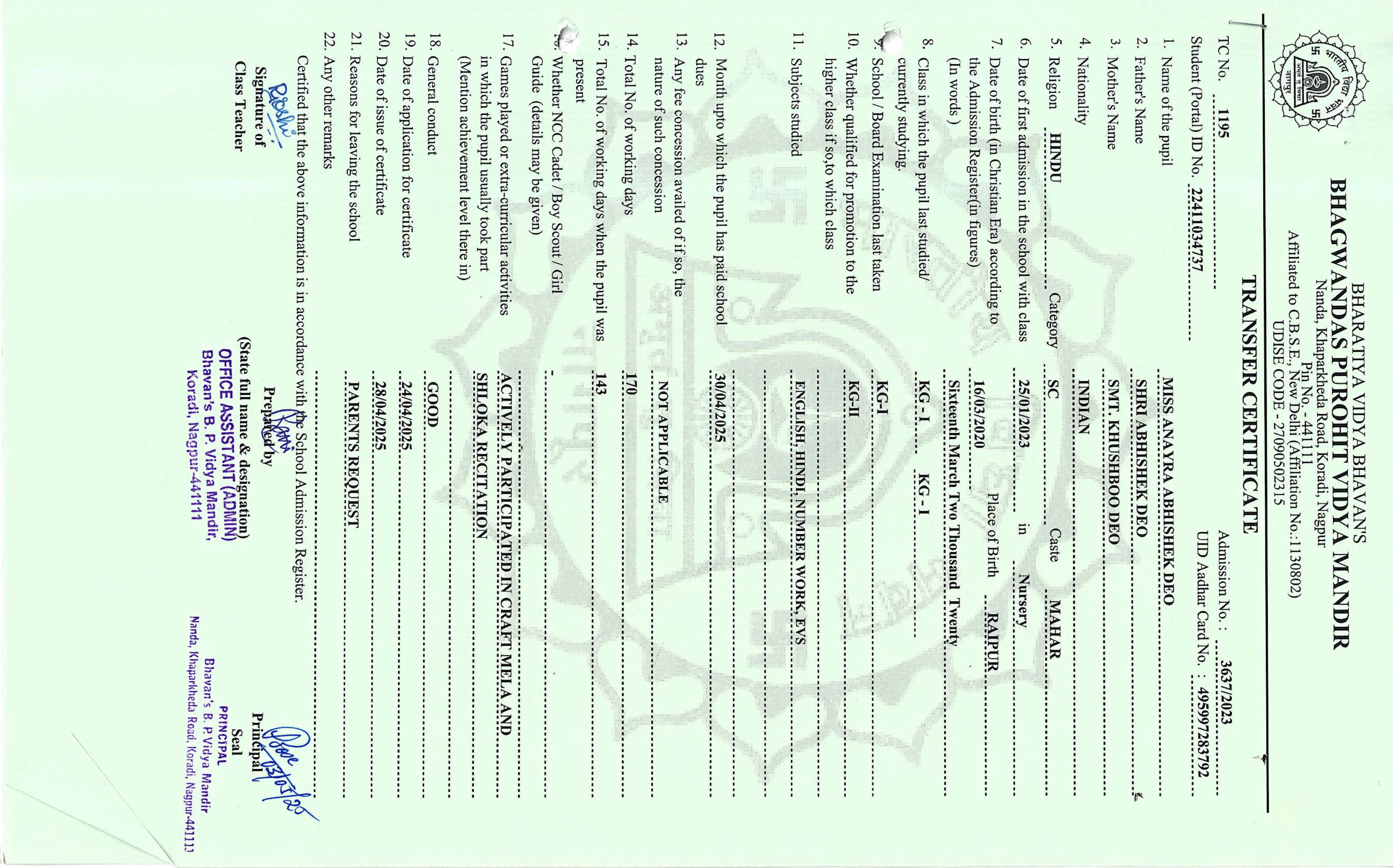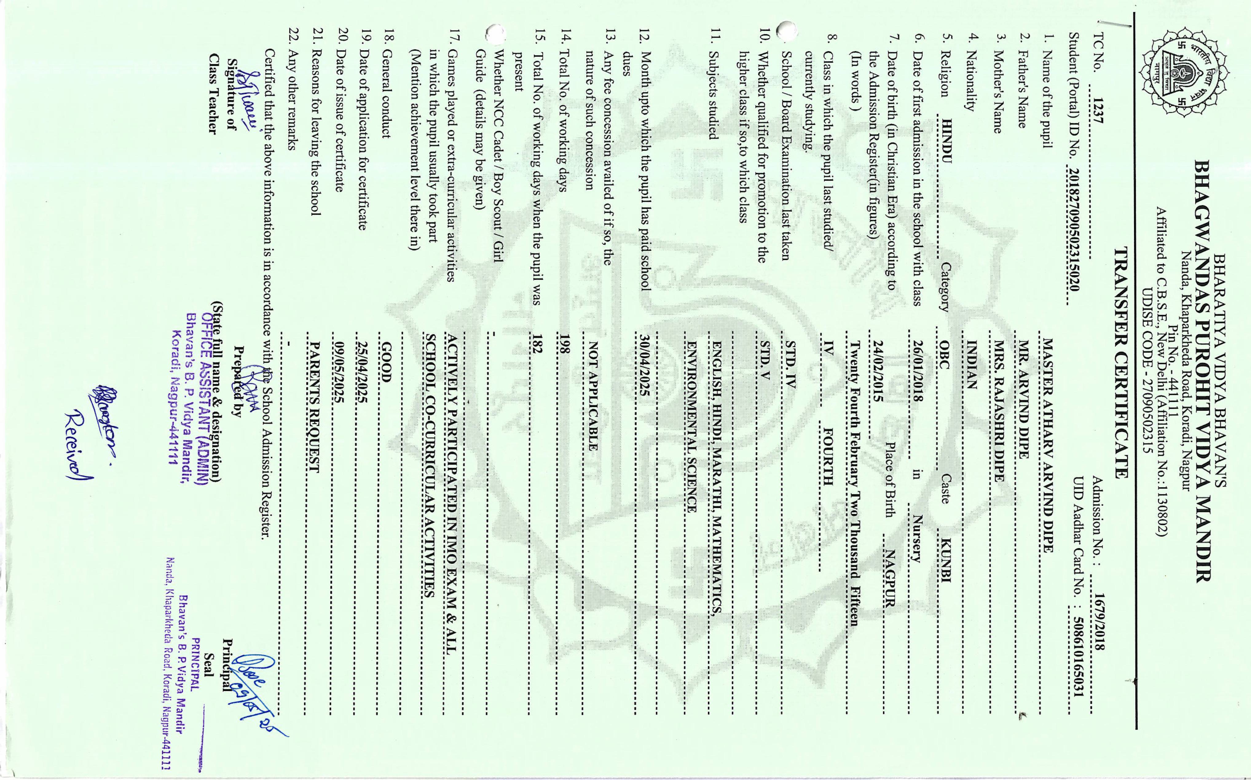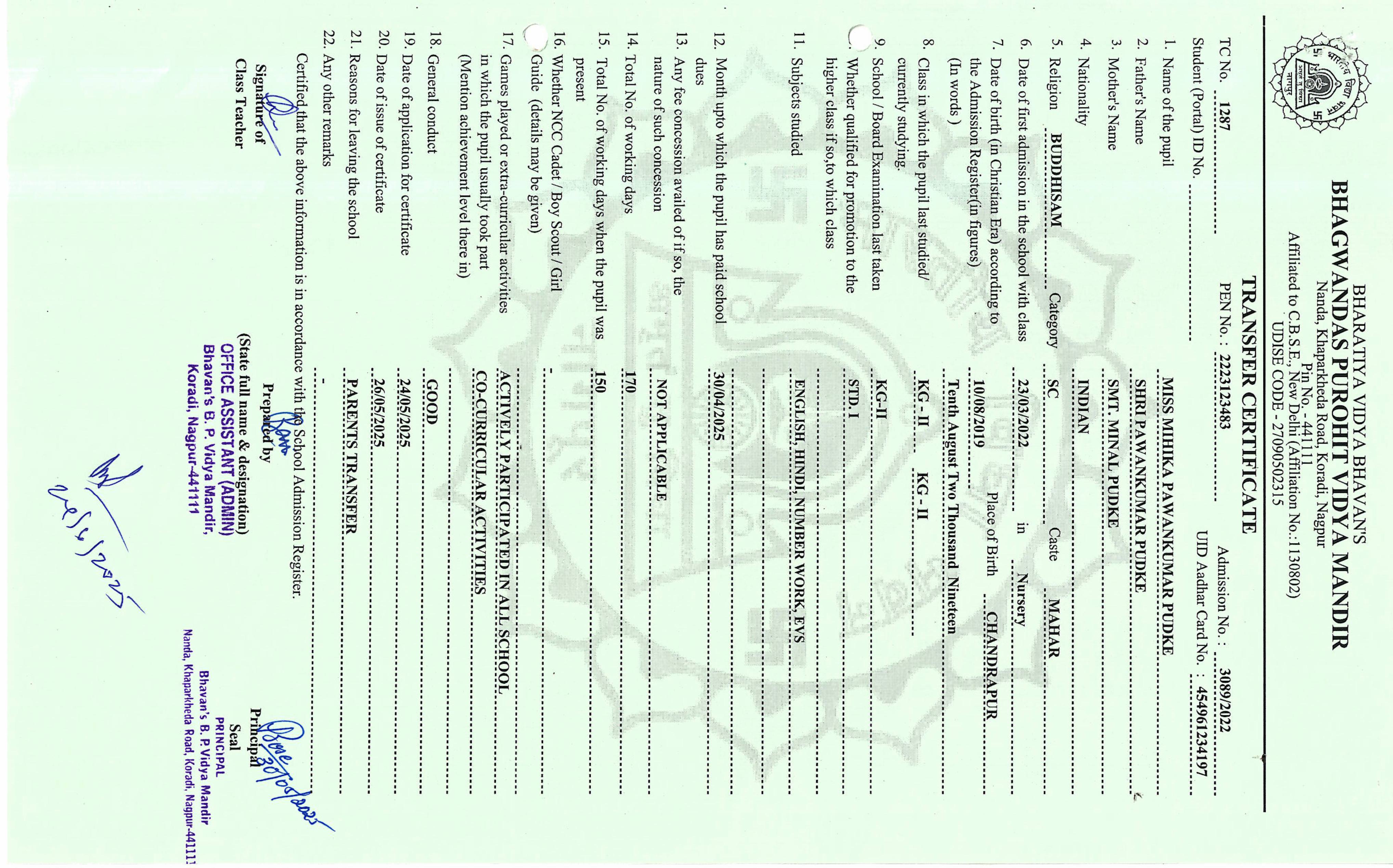 TC of students issued in the 2025