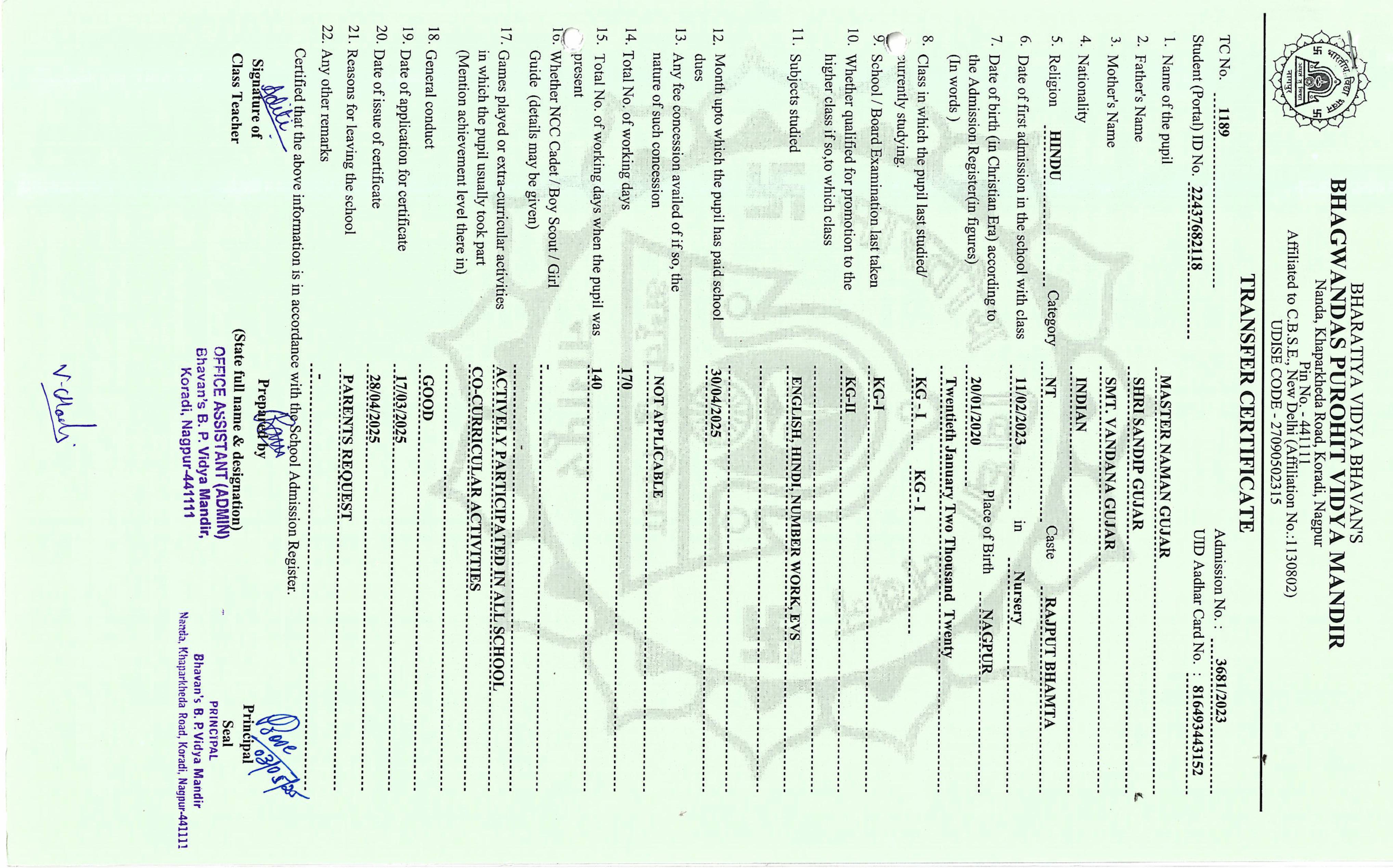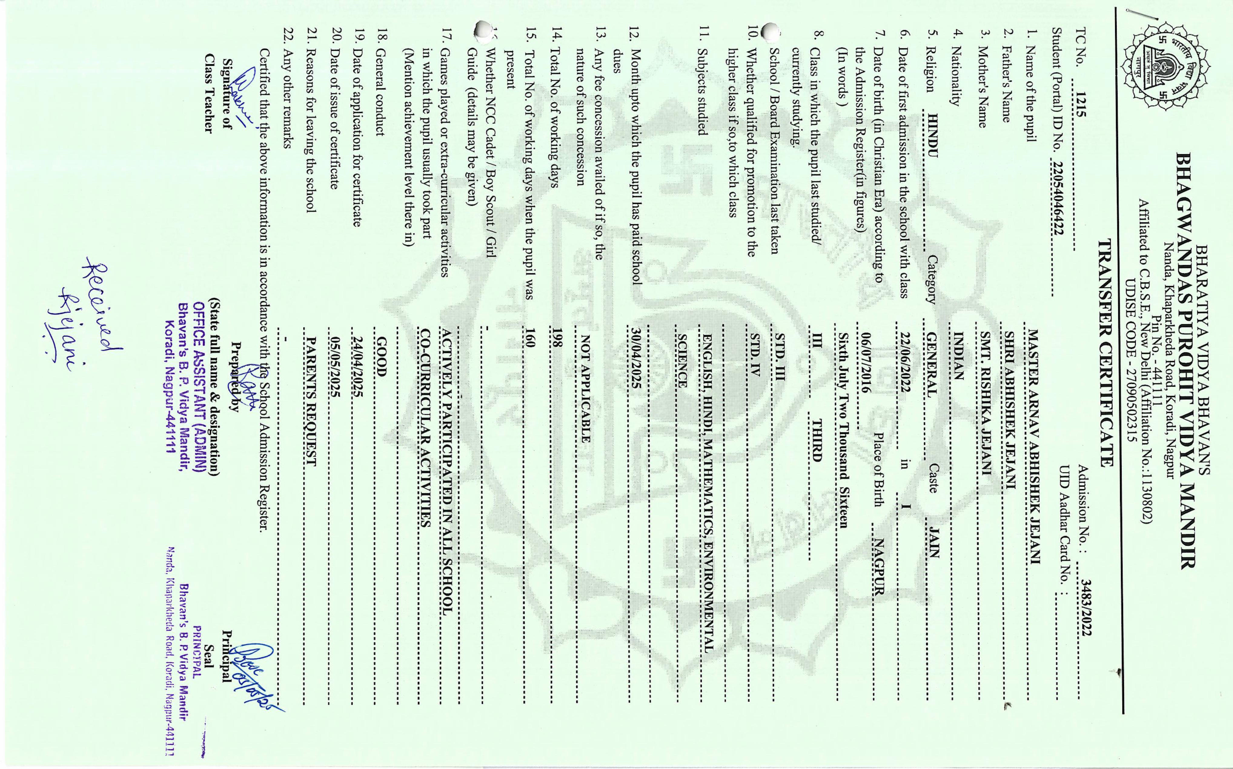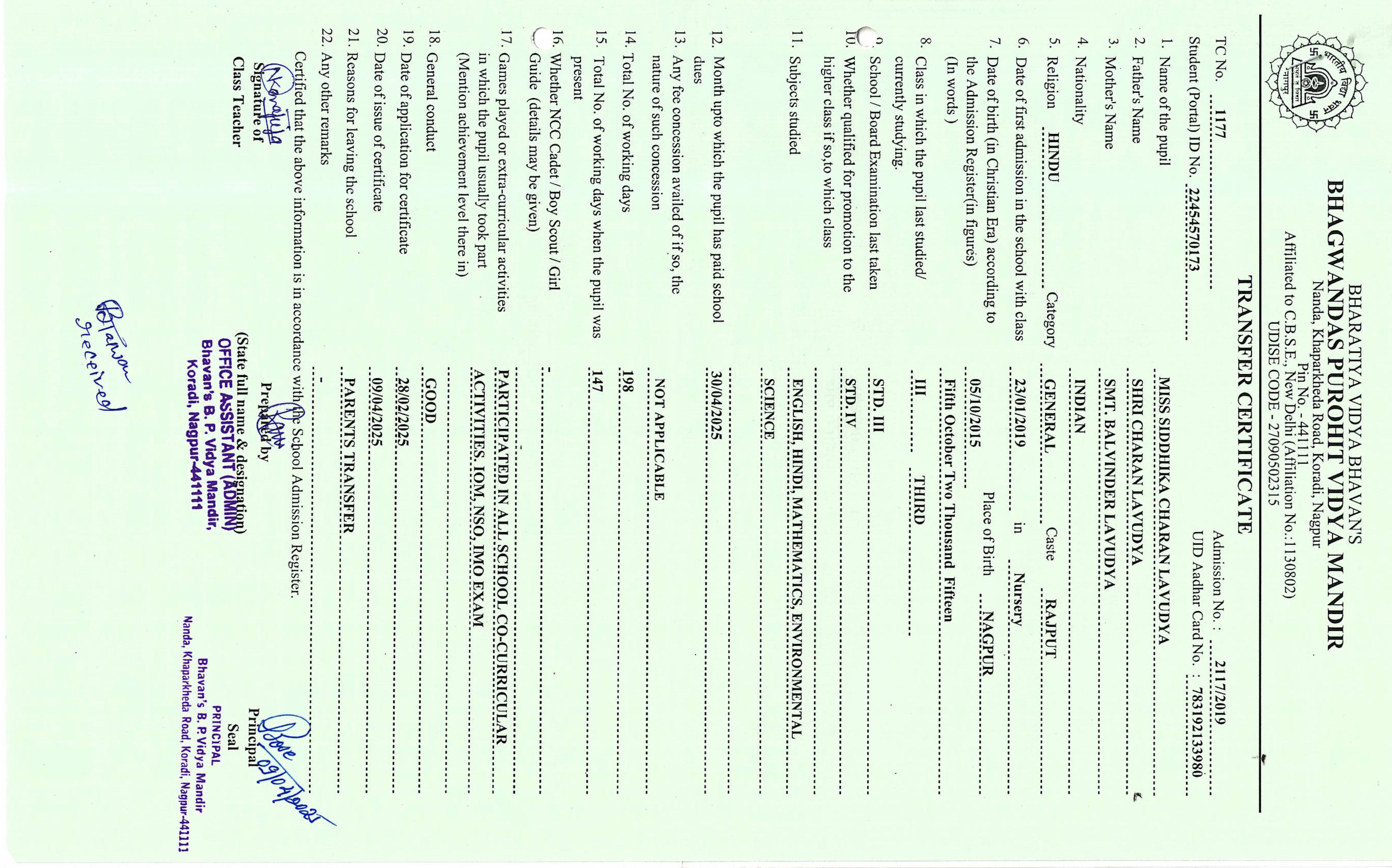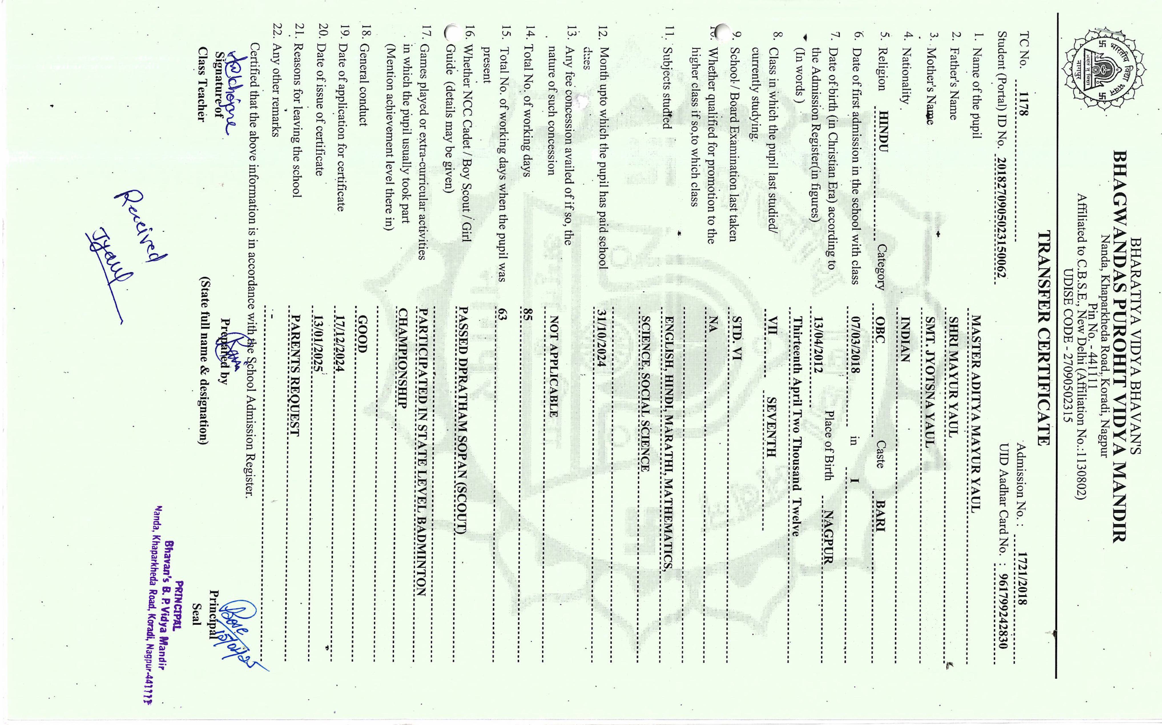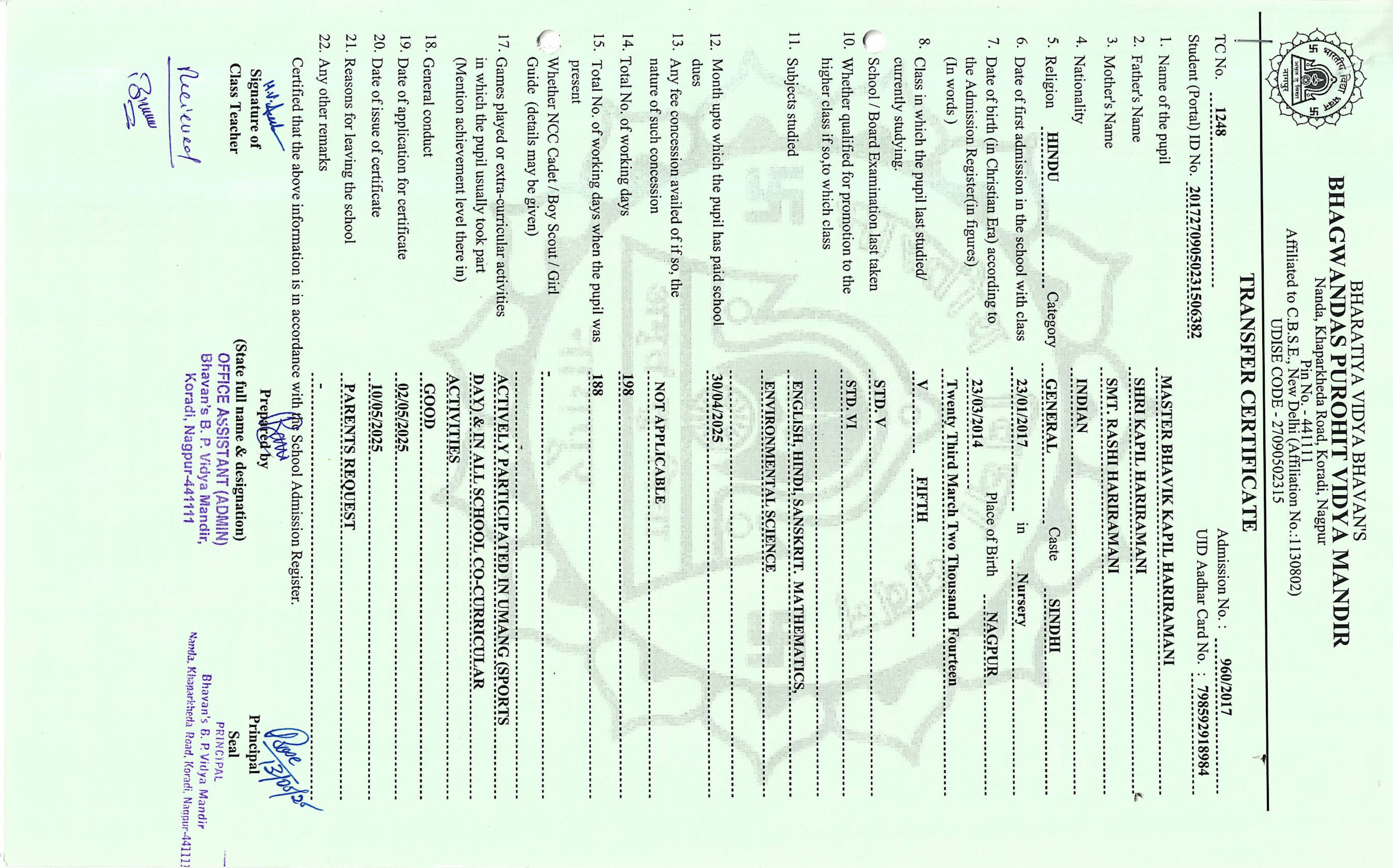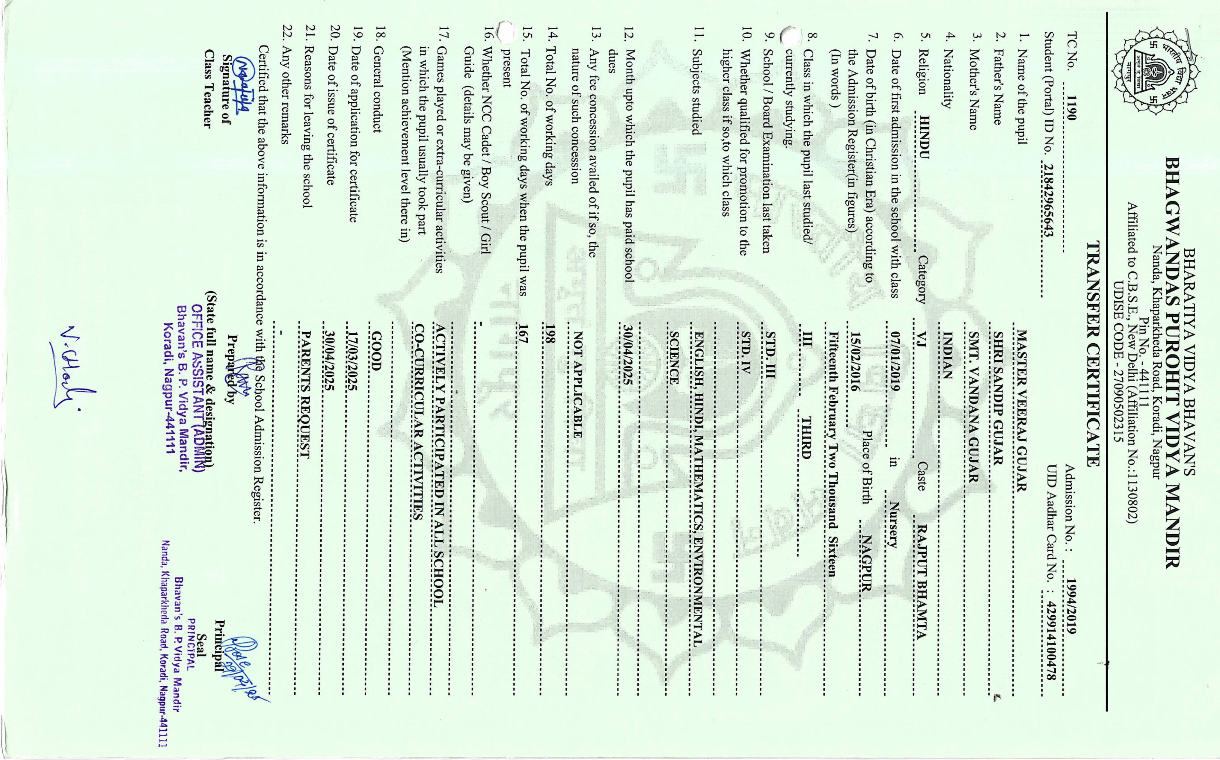 TC of students issued in the 2025