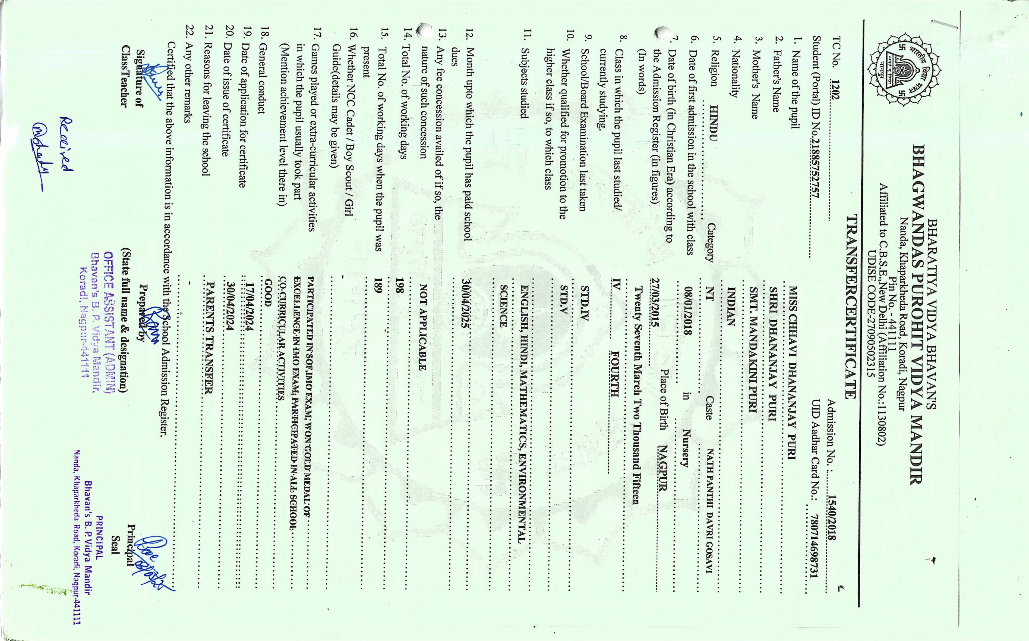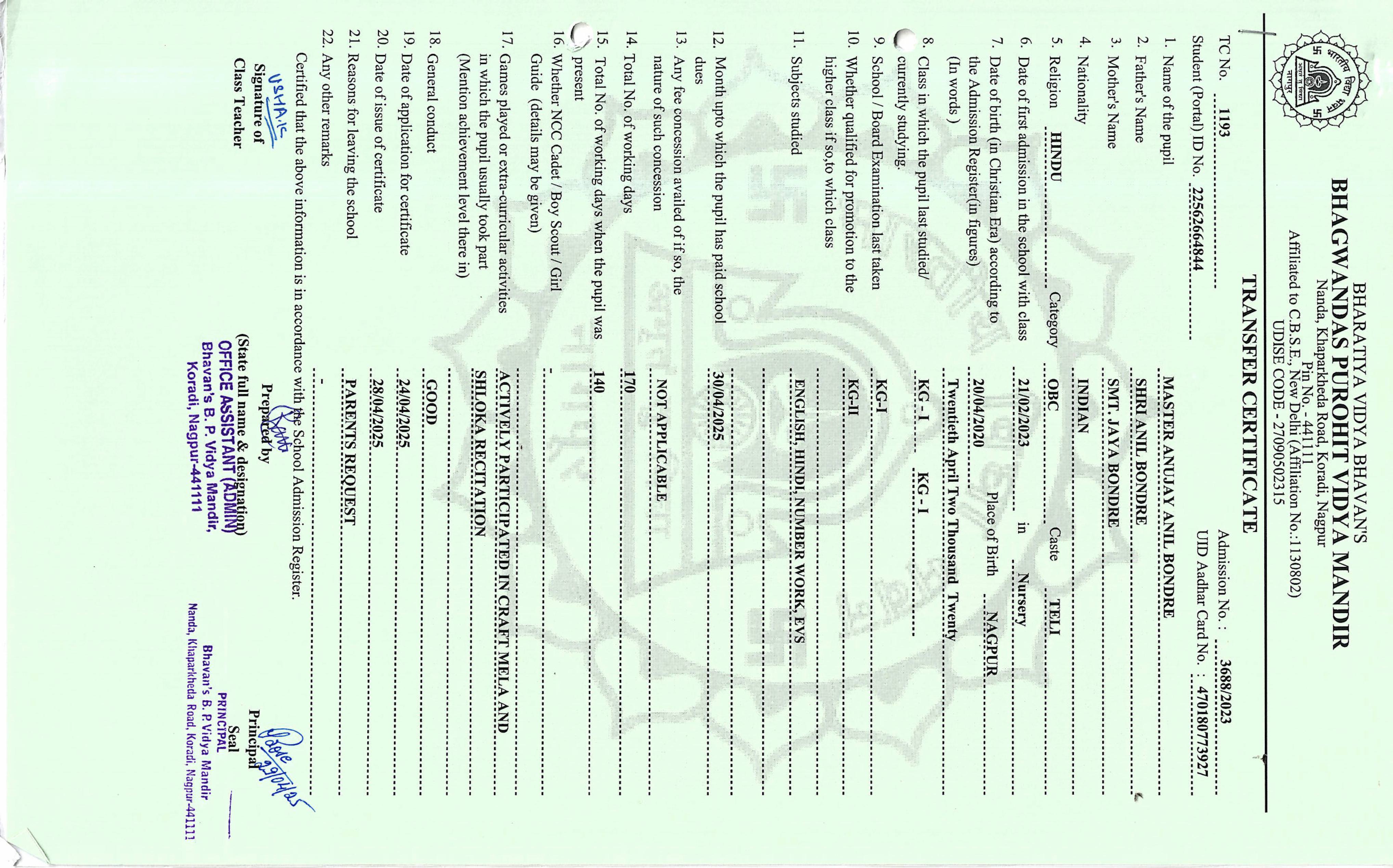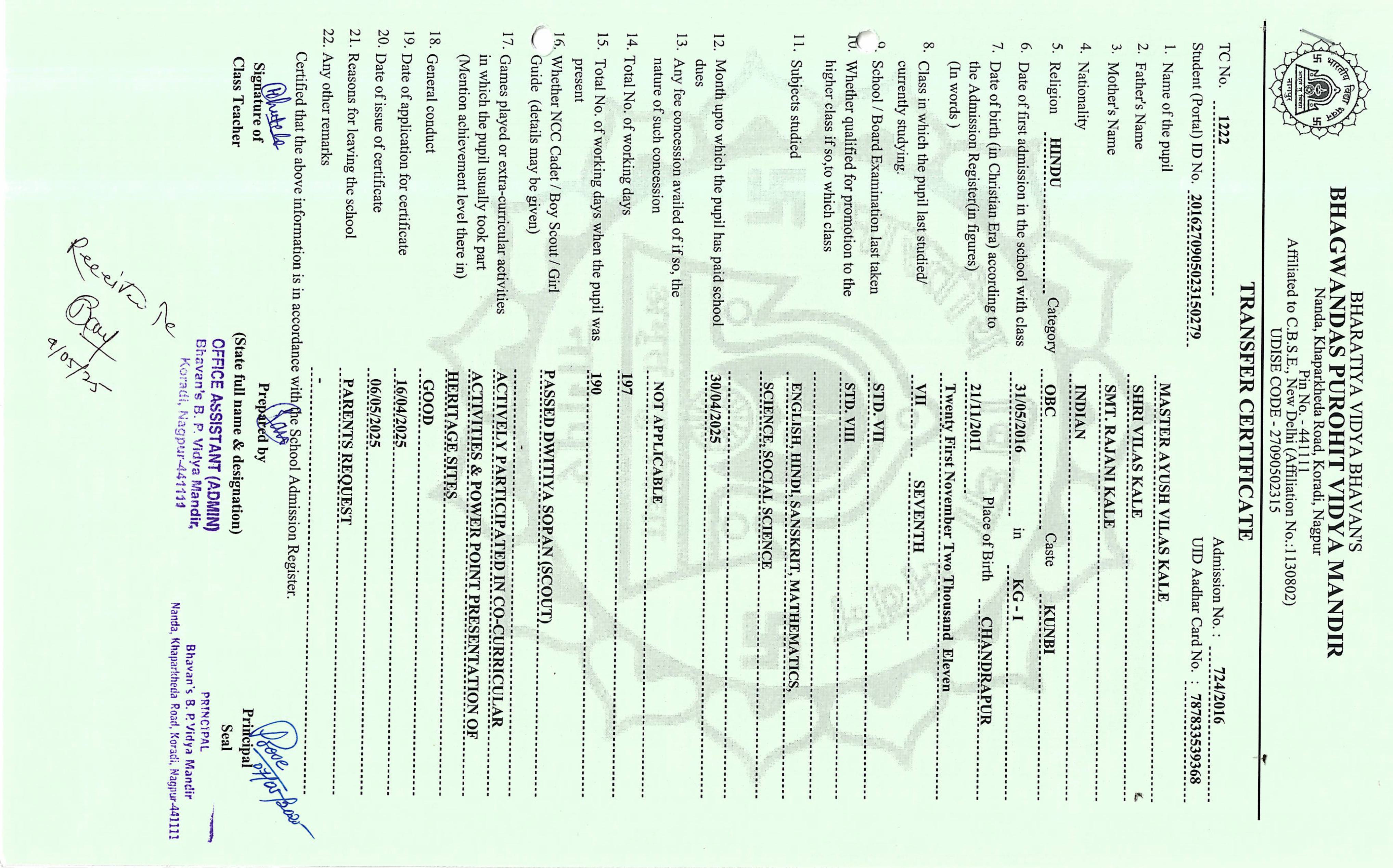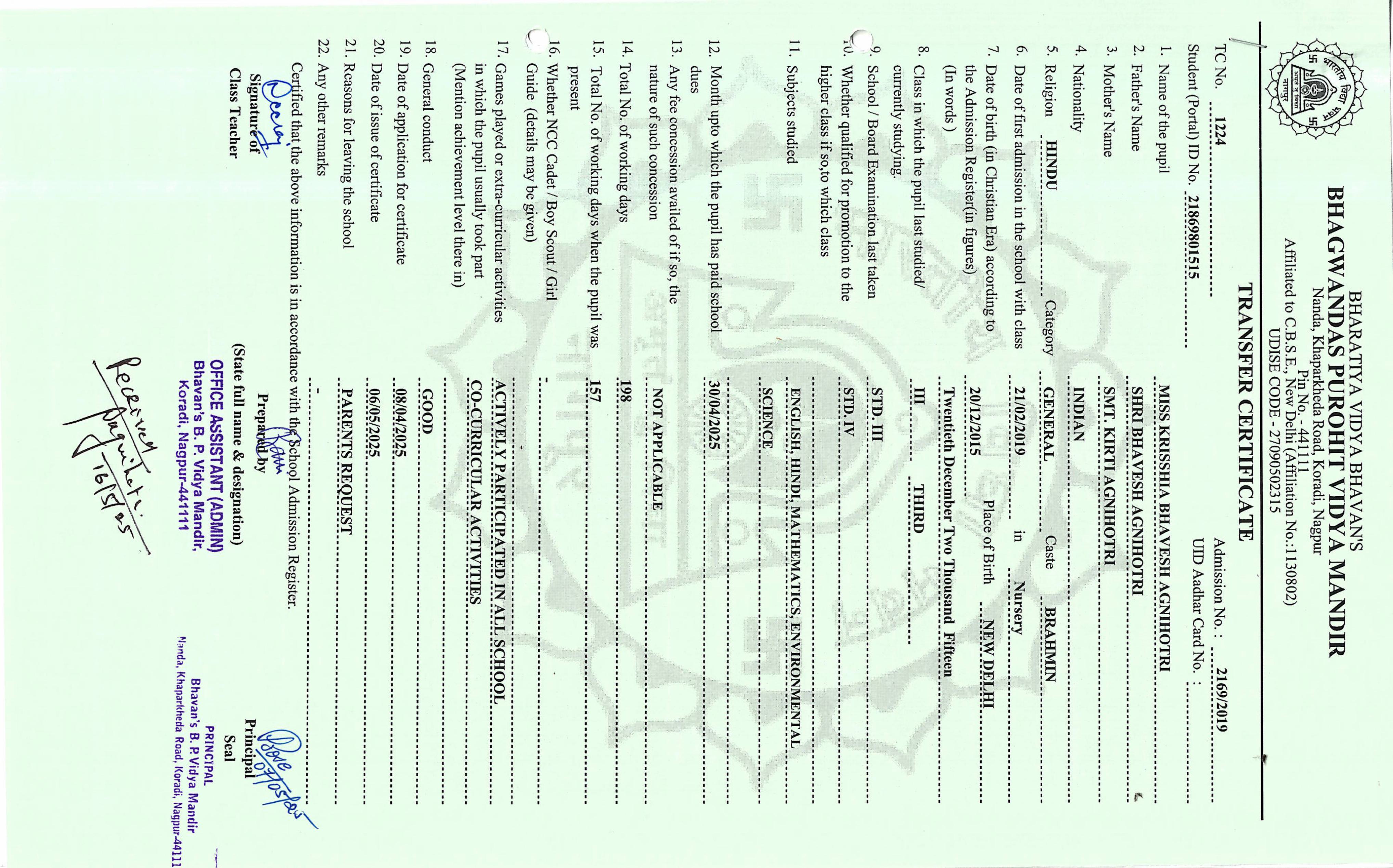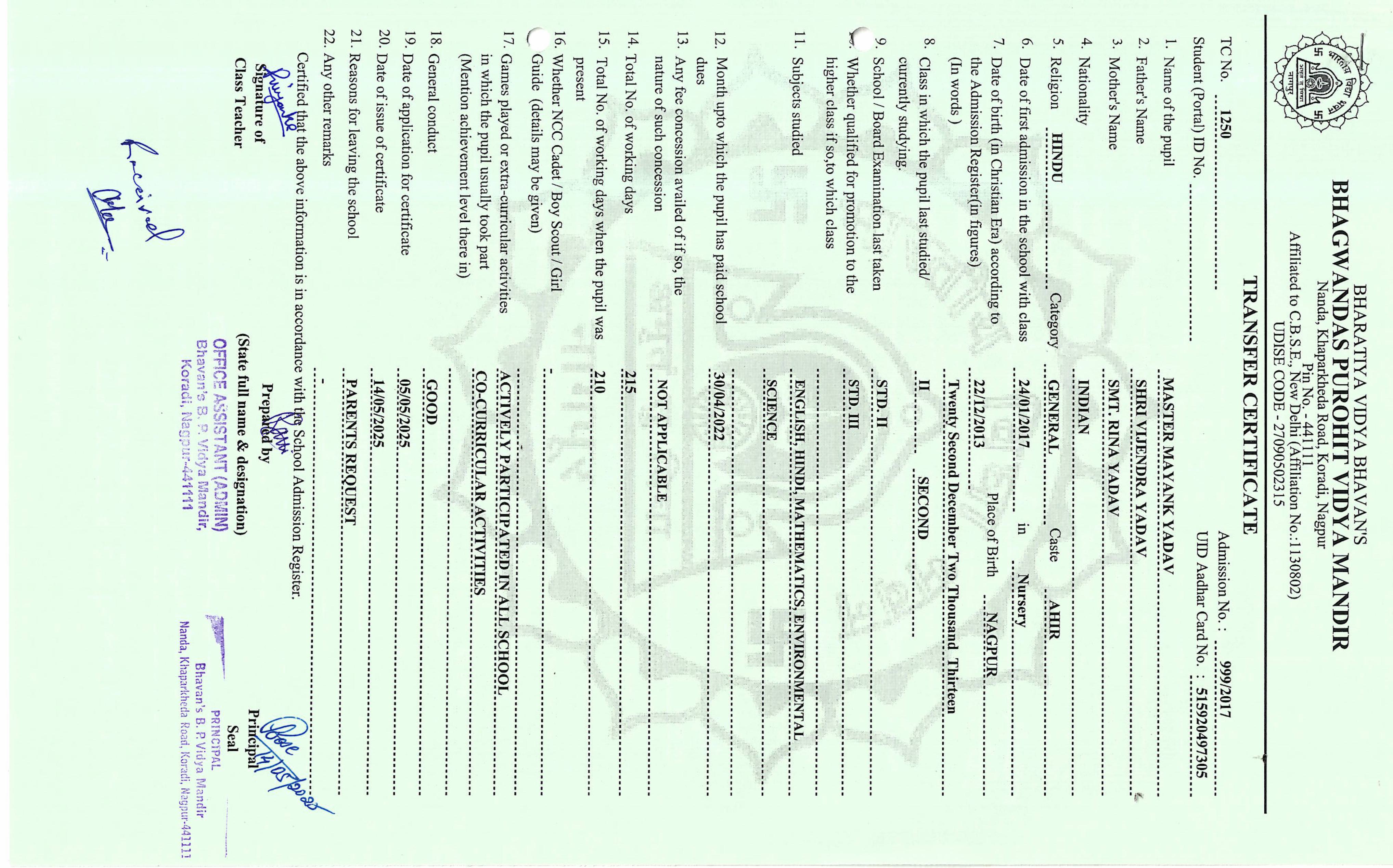 TC of students issued in the 2025