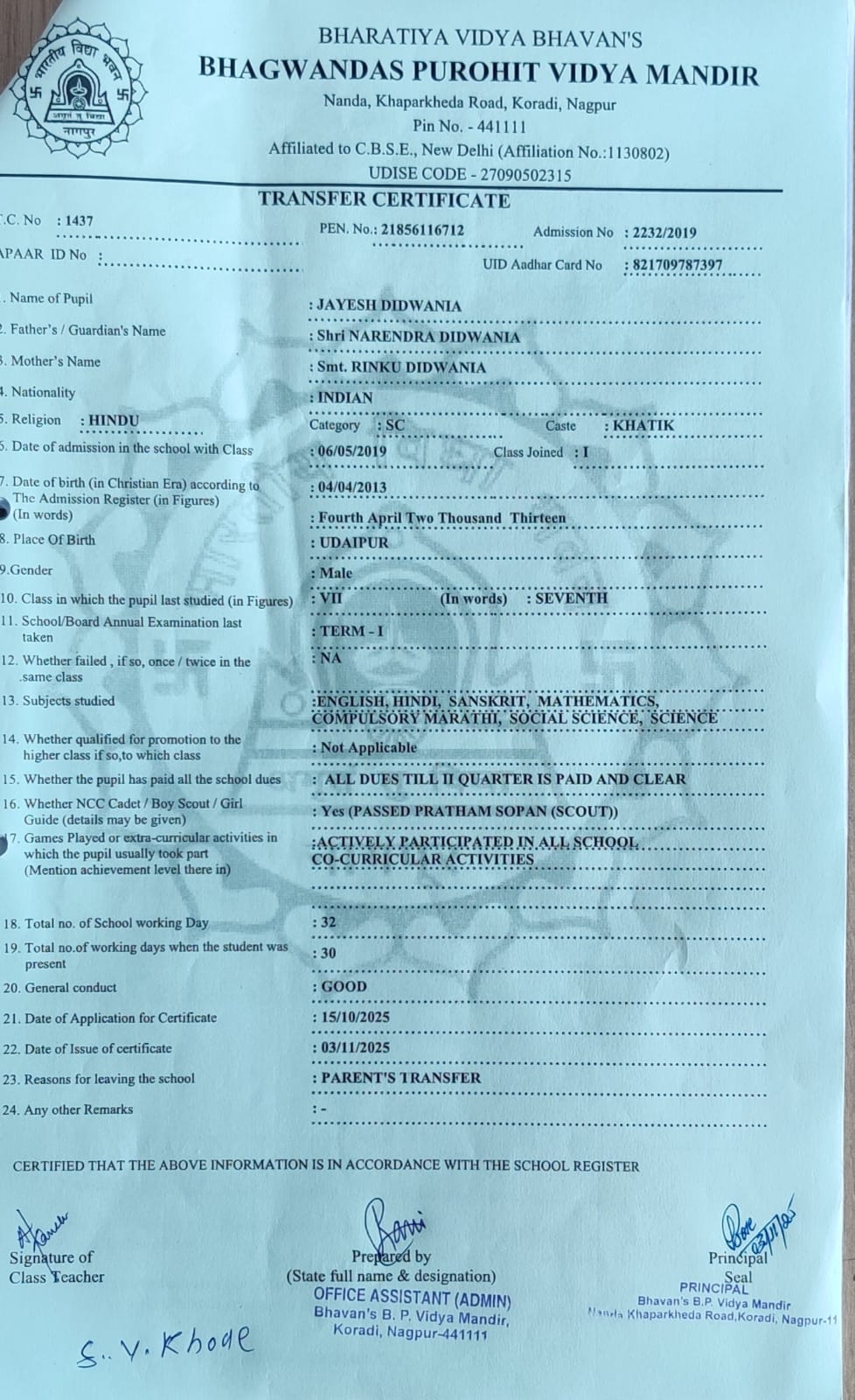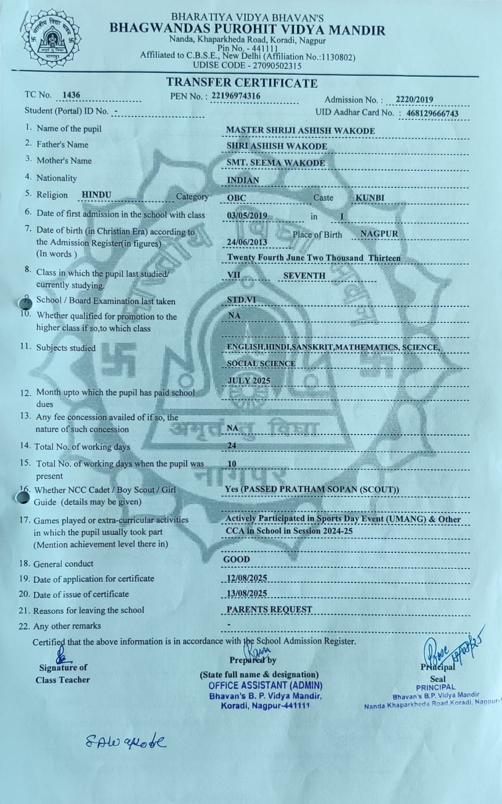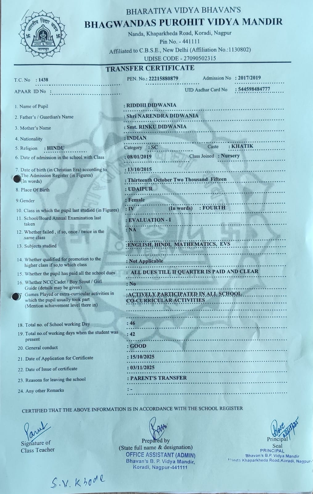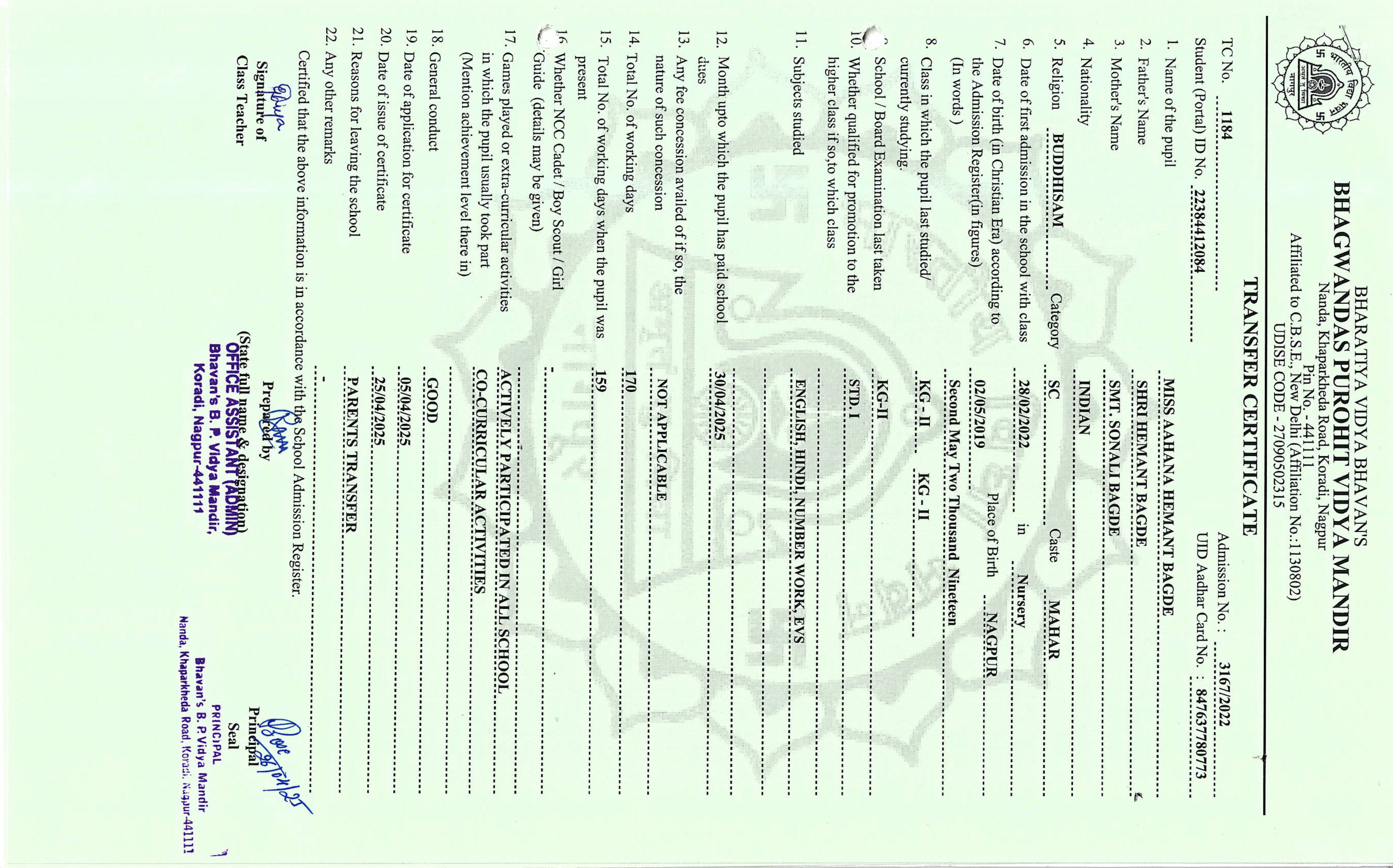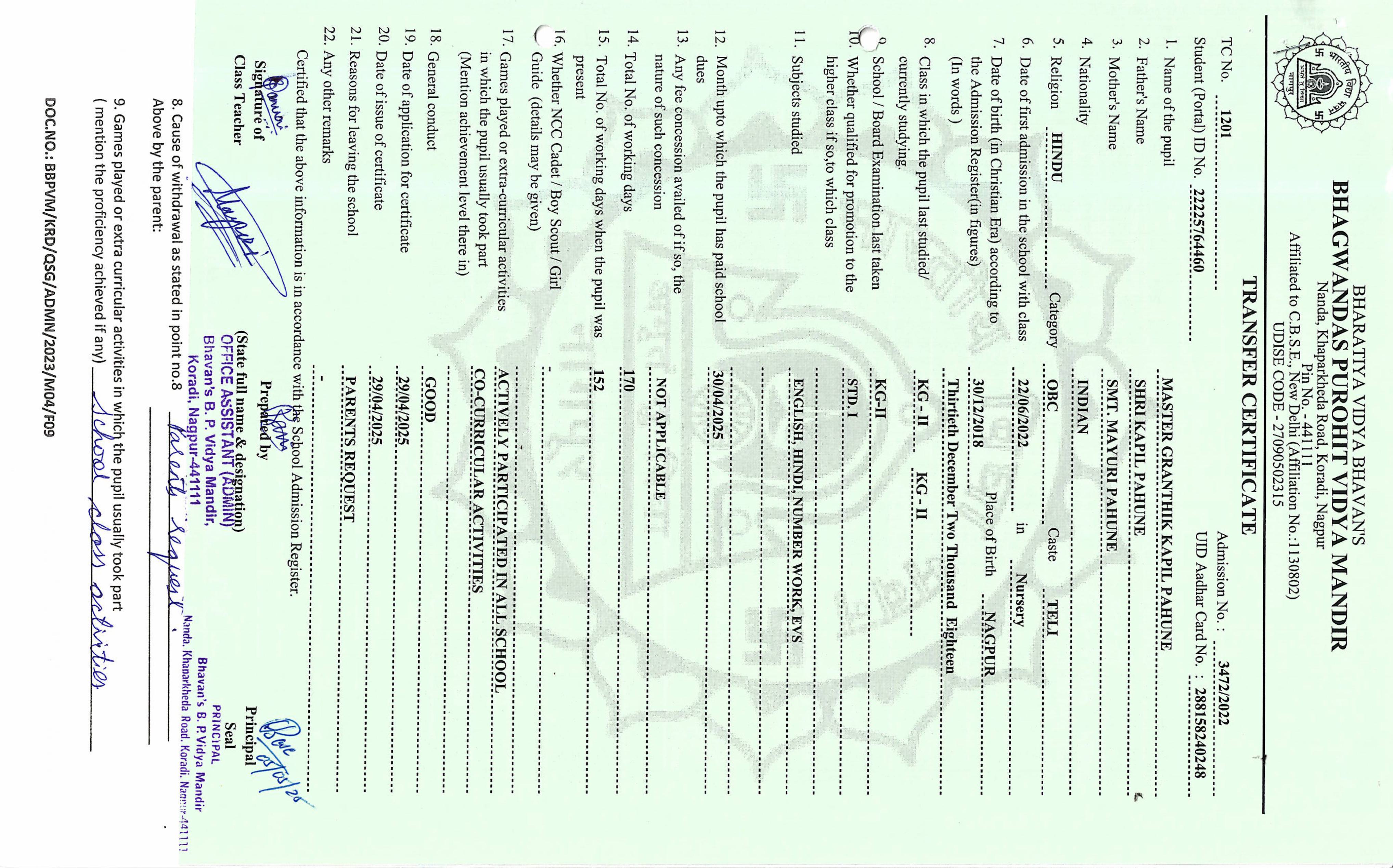 TC of students issued in the 2025